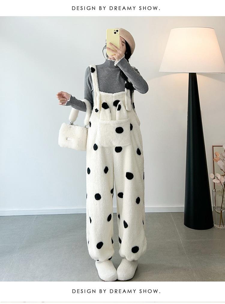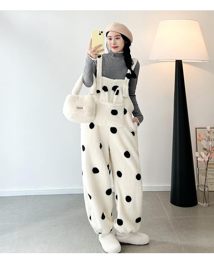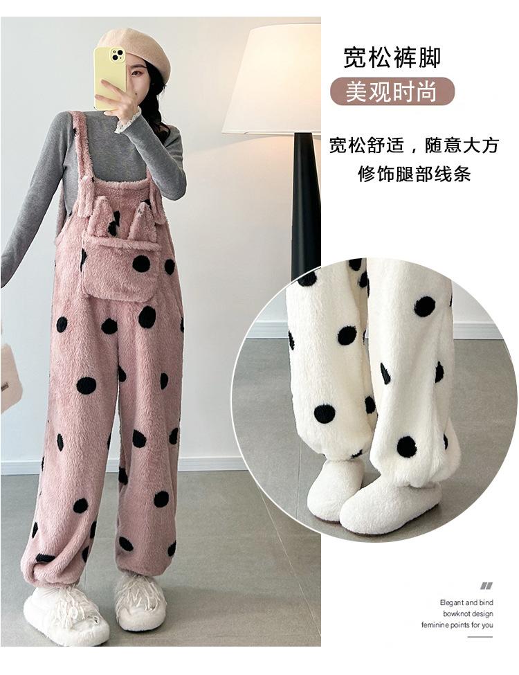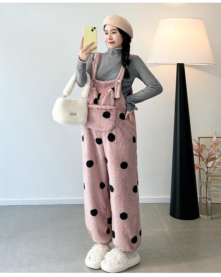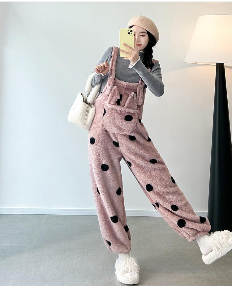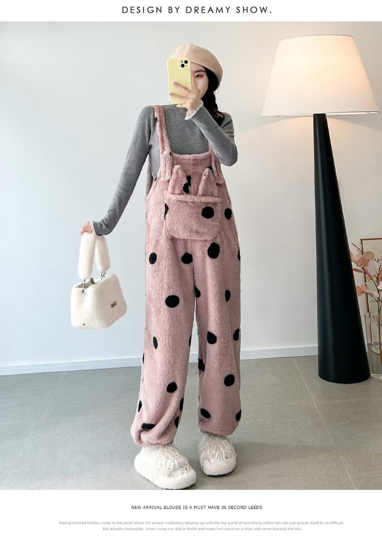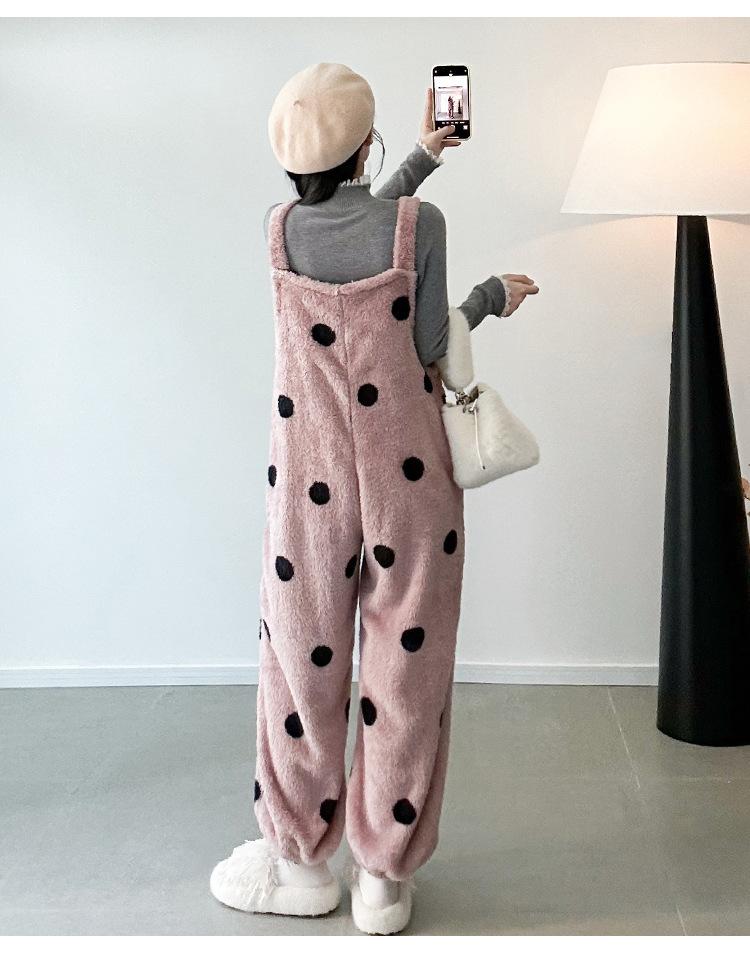 Conjunto de Maternidad Otoño/Invierno 2025 Casual de Lana de Cordero Maternidad Overol Holgado Camiseta Básica de Cuello Alto Conjunto de Maternidad