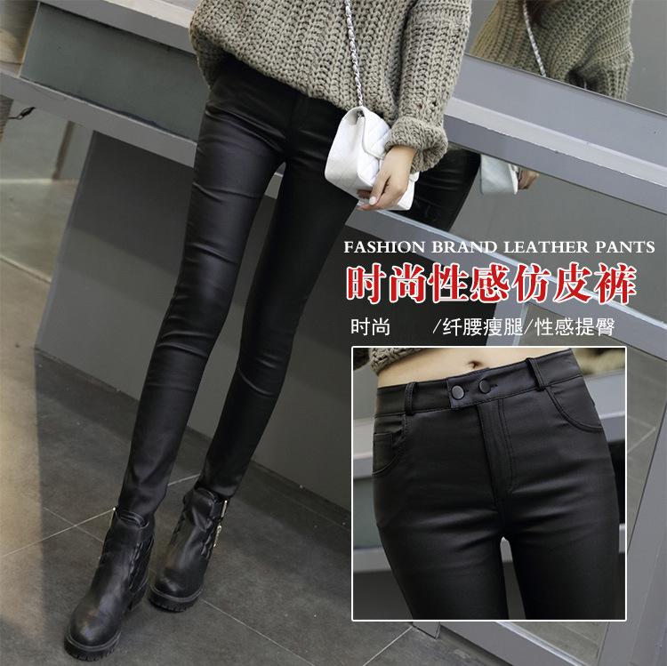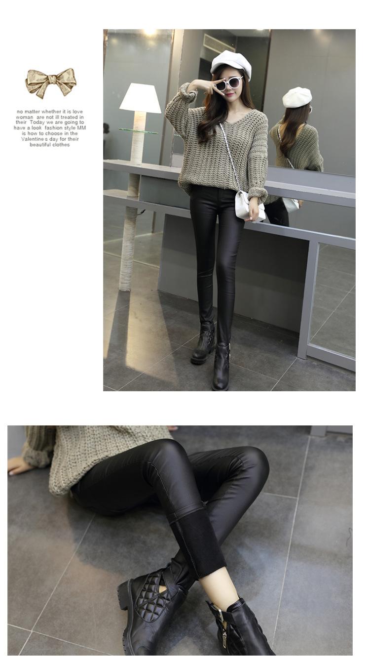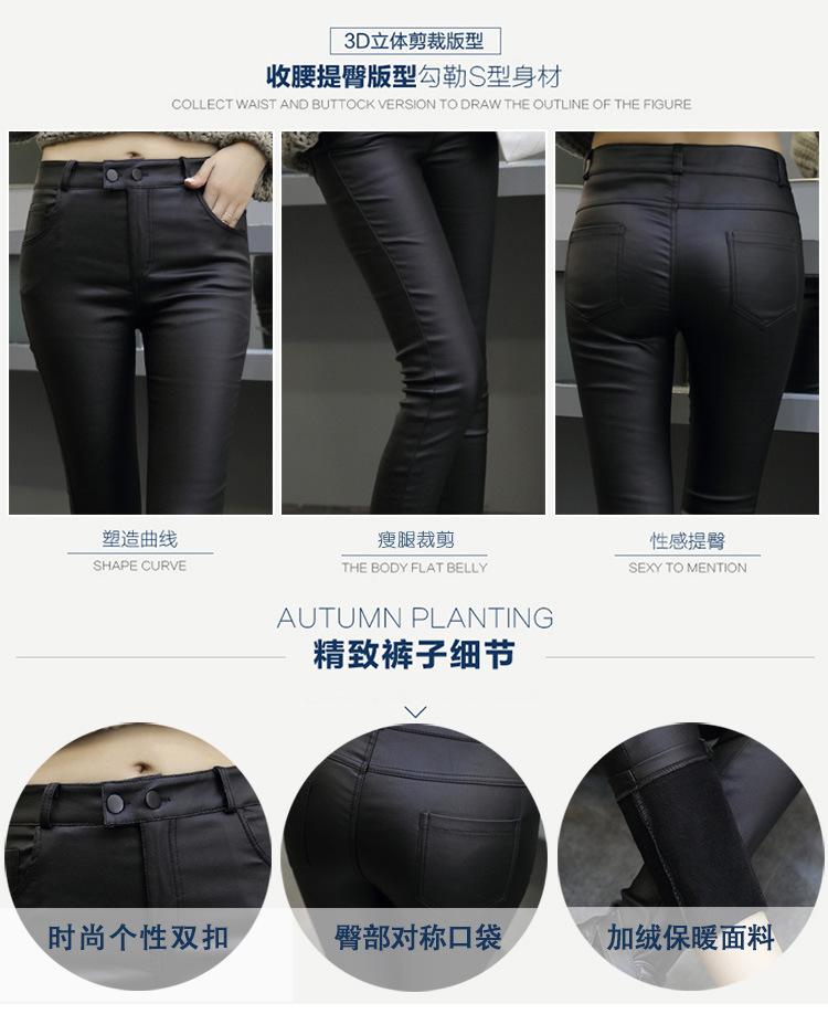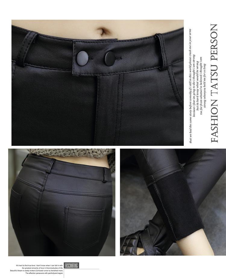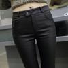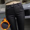 Pantalones de Cuero para Mujer Cintura Alta Primavera y Otoño Delgados Forrados de Polar Negro Mate Leggings Ajustados Ropa Exterior para Mujer Pantalones Mate de Pie