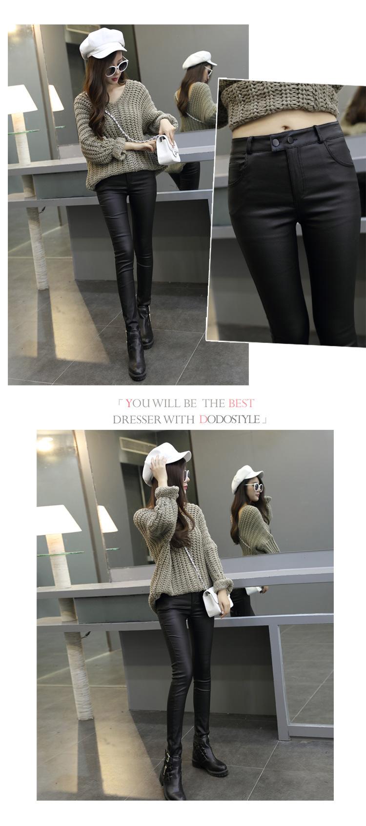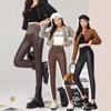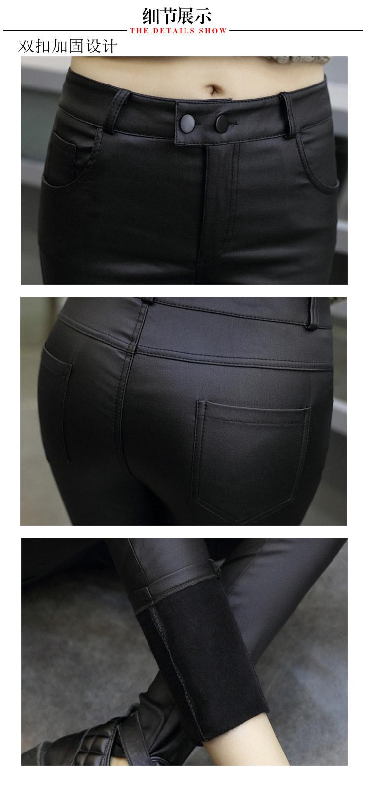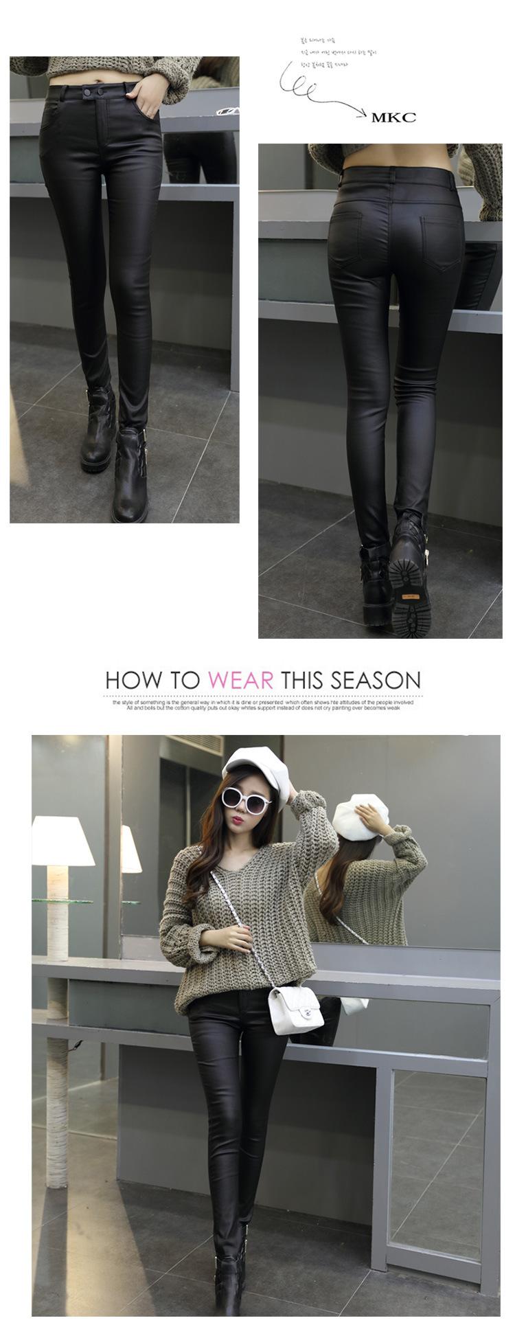 Pantalones de Cuero para Mujer Cintura Alta Primavera y Otoño Delgados Forrados de Polar Negro Mate Leggings Ajustados Ropa Exterior para Mujer Pantalones Mate de Pie
