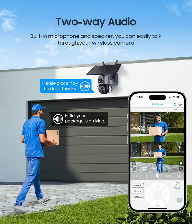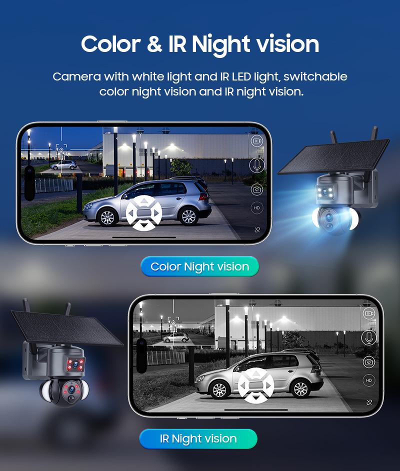 Cámara Solar de 10W AOV Monitor Inalámbrico Exterior Impermeable Visión Nocturna a Color 6MP HD Cámara 4G