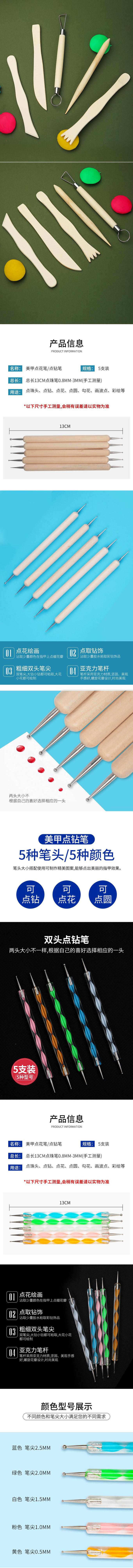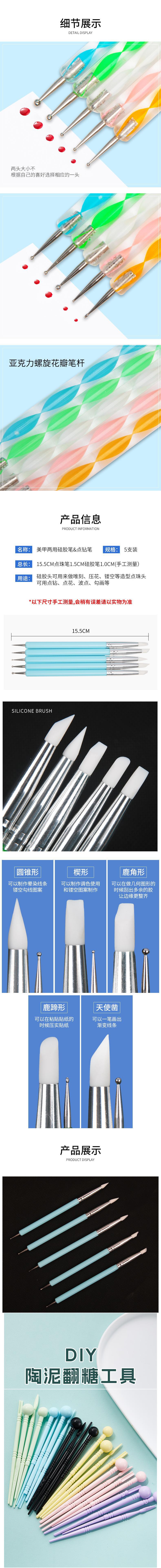 5 pcs Spiral Type Colorful Rhinestone Dotting Pen Round Head Nylon Brush Set