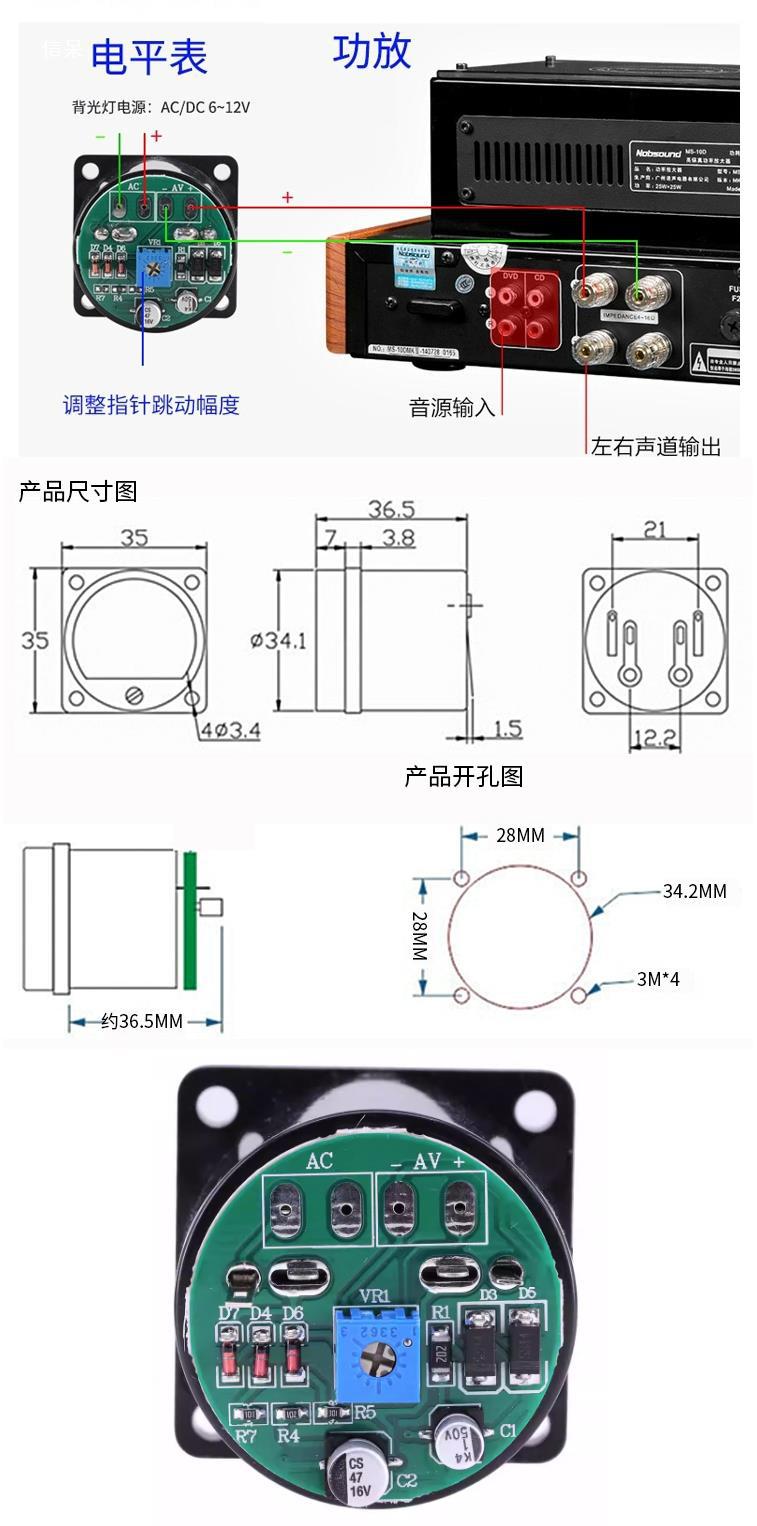 Cabezal de medidor VU de máquina gallo amplificador de potencia de alta precisión medidor DB Tubo electrónico máquina gallo nivel medidor de nivel de retroiluminación de correa de presión sonora