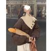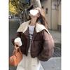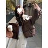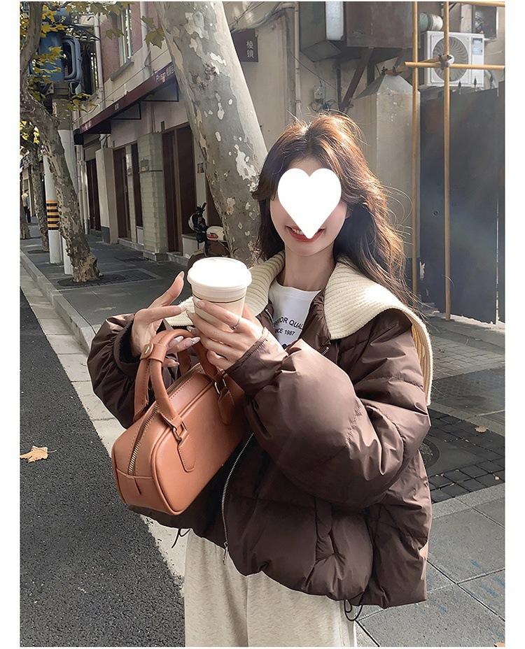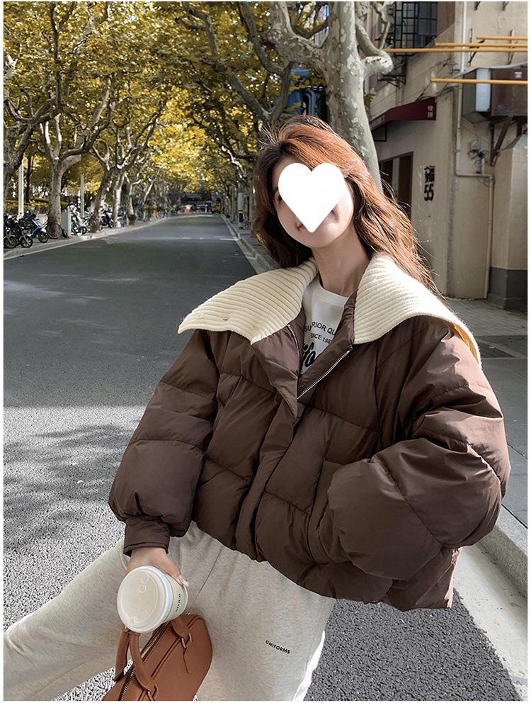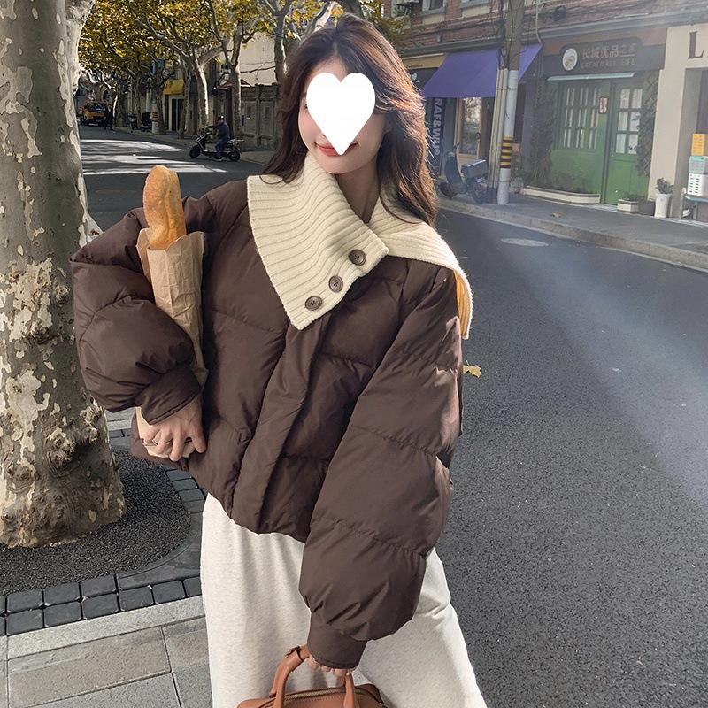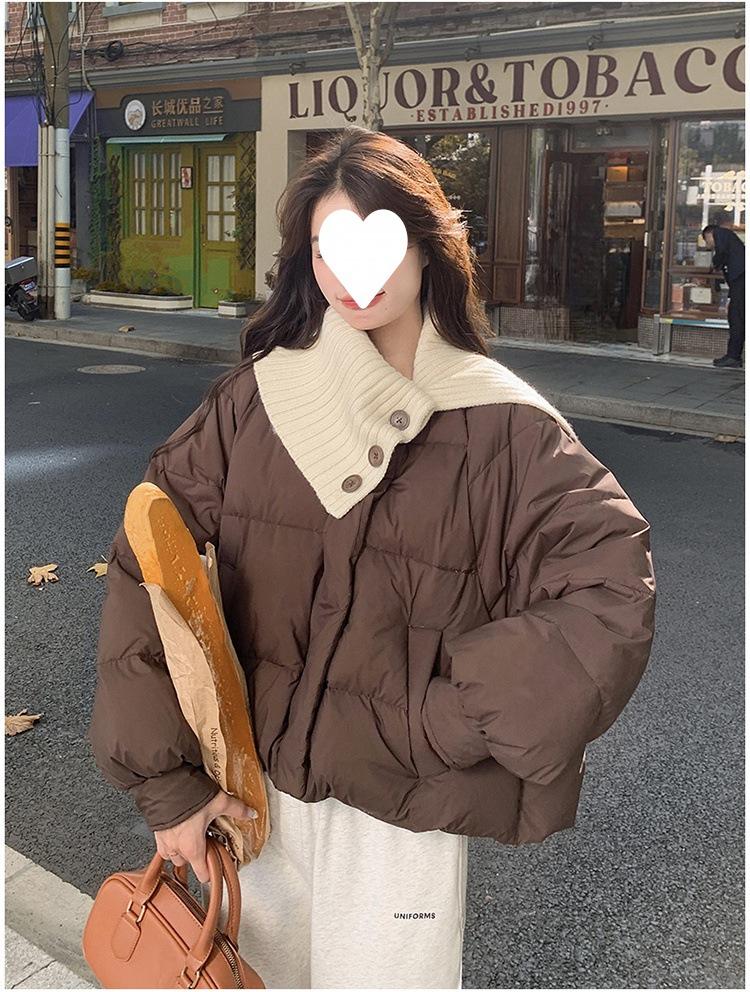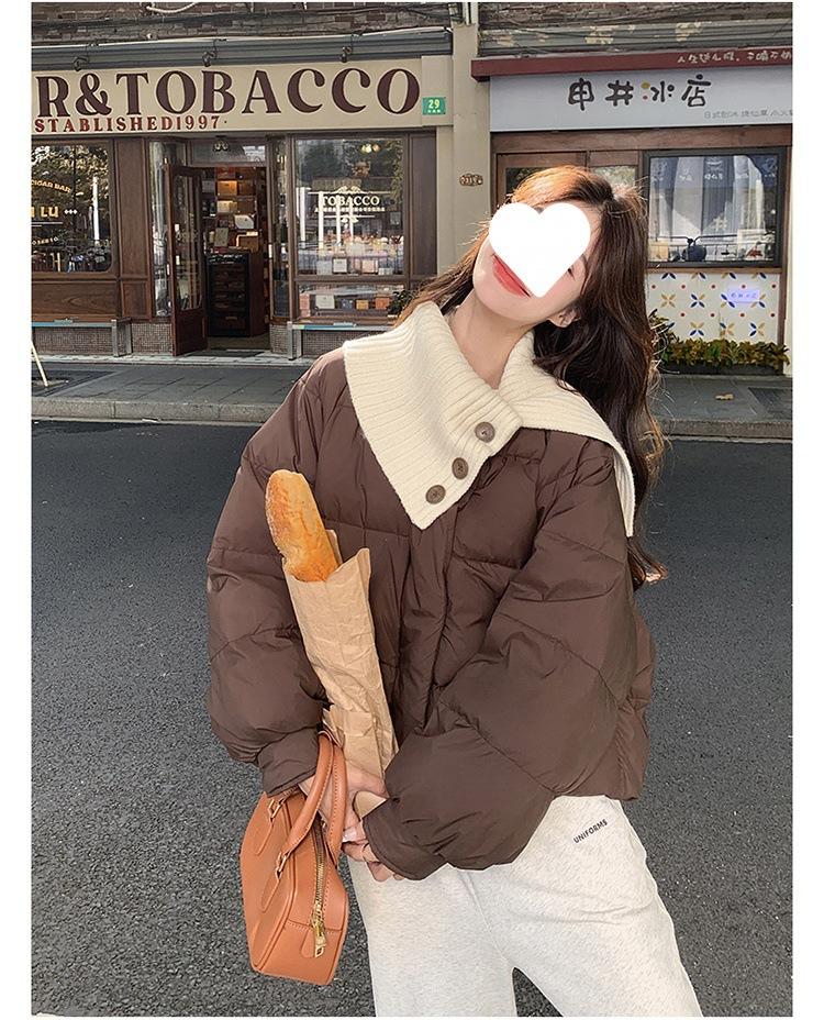 Abrigo acolchado de algodón con cuello de punto de diseño marrón para mujer corto 2023 Invierno nuevo pequeño abrigo de moda de alta gama