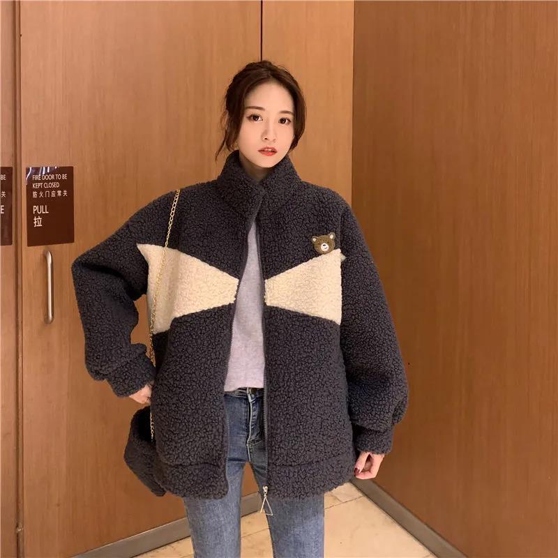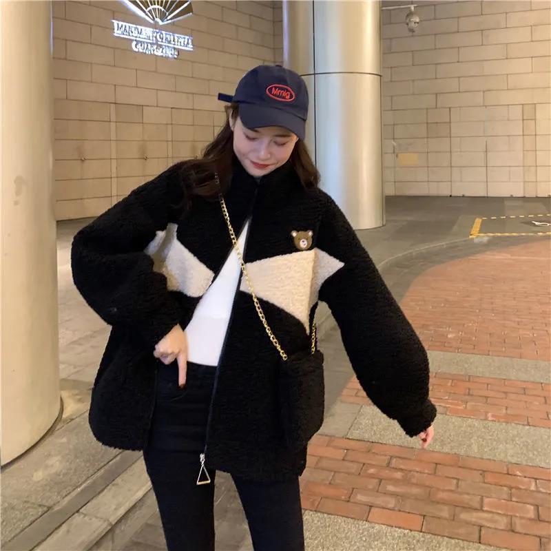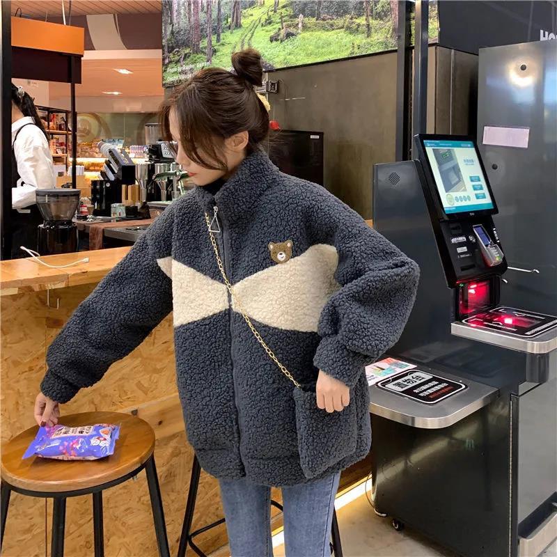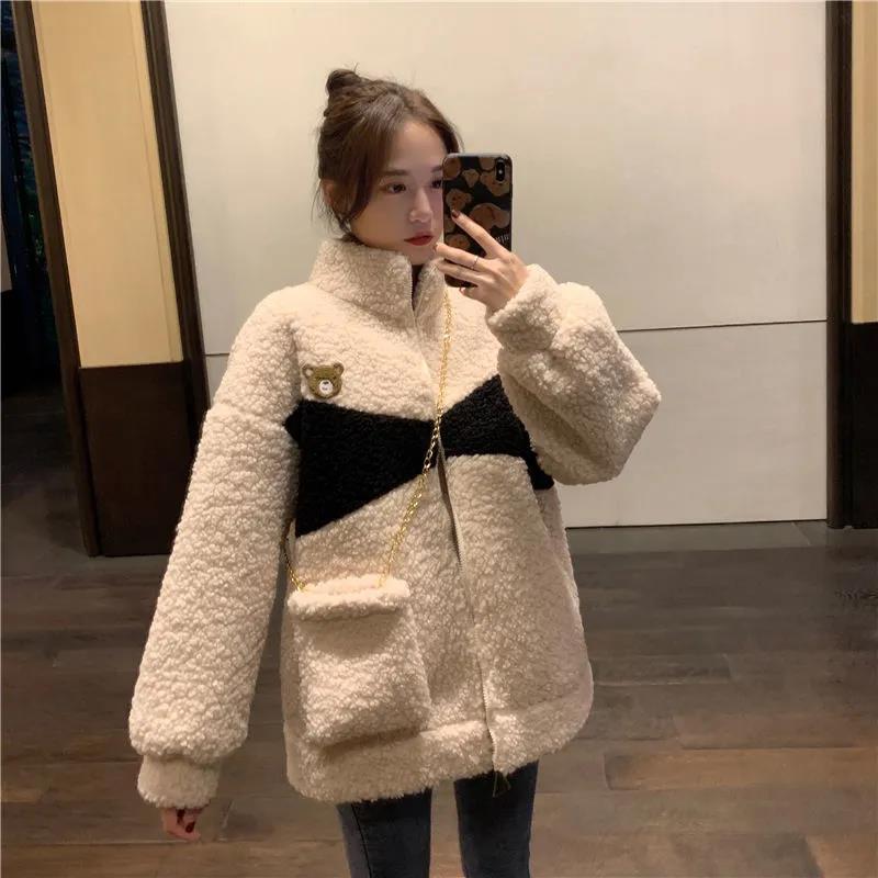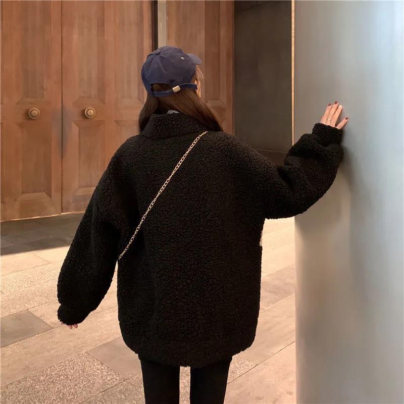 Abrigo de cachemira sintética para mujer moderno ins otoño e invierno Nuevo estilo coreano holgado talla grande estilo perezoso suéter grueso con forro polar