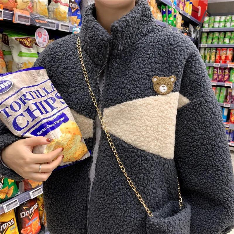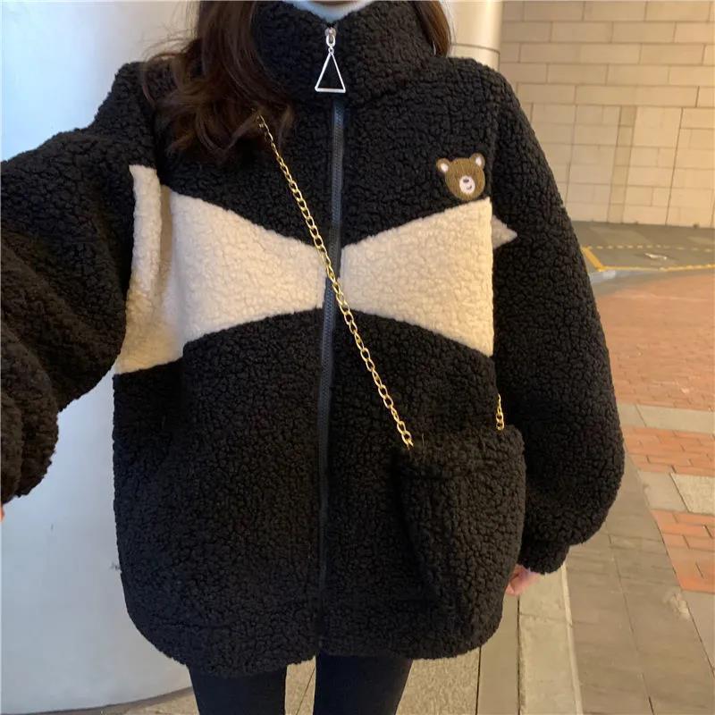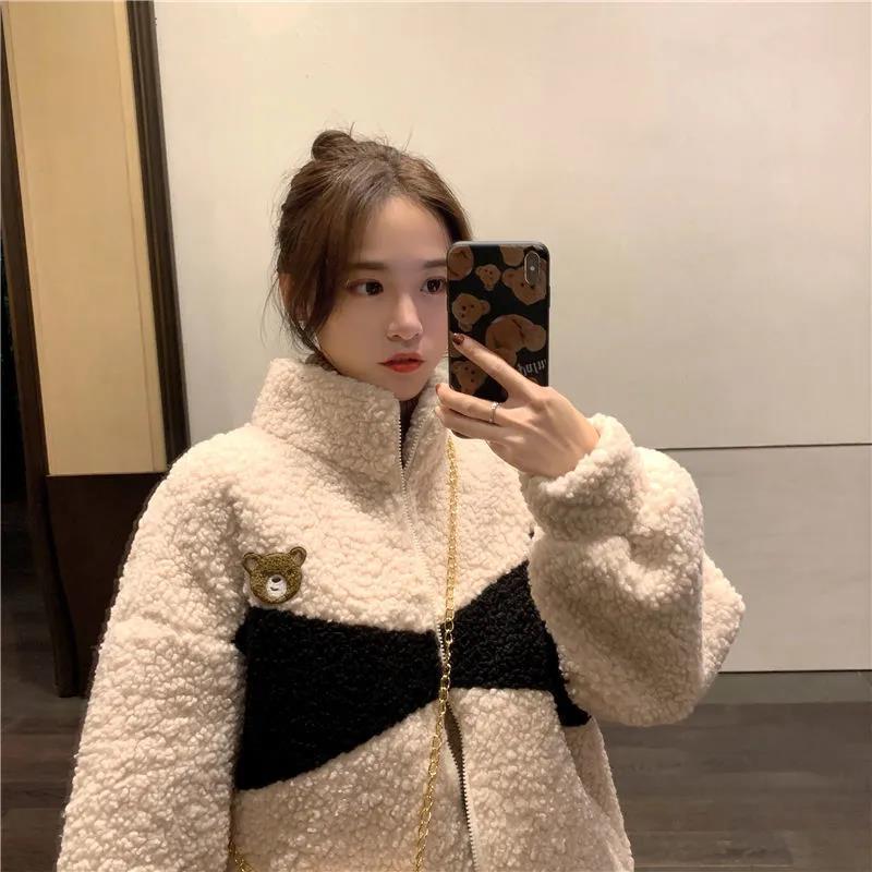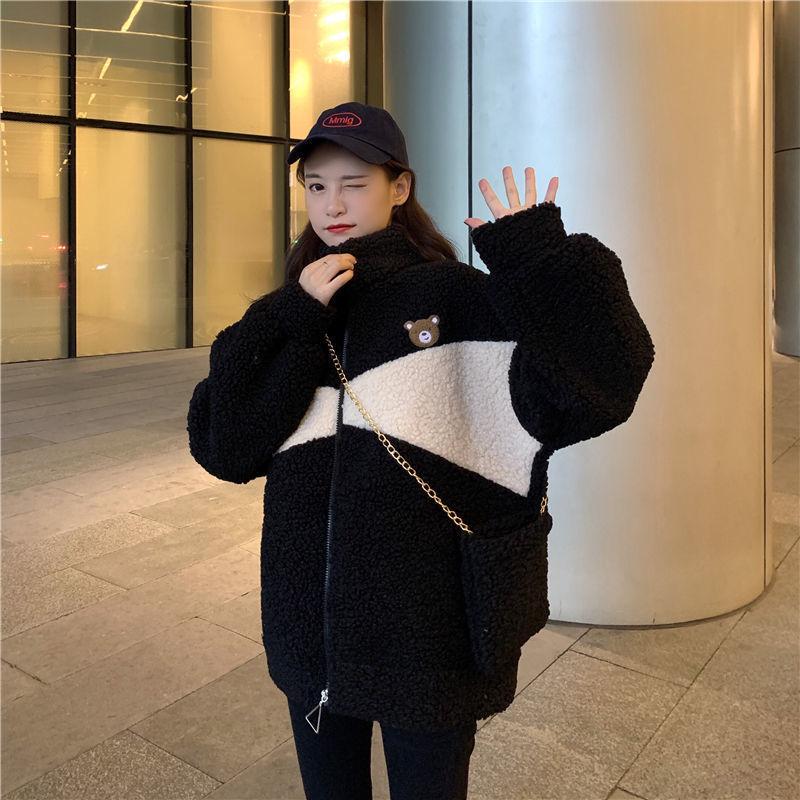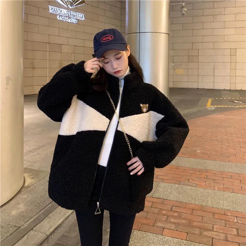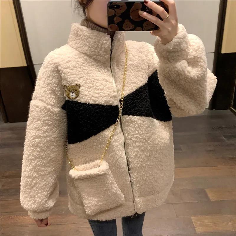 Abrigo de cachemira sintética para mujer moderno ins otoño e invierno Nuevo estilo coreano holgado talla grande estilo perezoso suéter grueso con forro polar