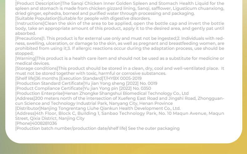 Nanjing Tongrentang-Sanqi Chicken Gizzard Membrane Spleen and Stomach Health Care Liquid, Nanjing Tongrentang ...