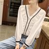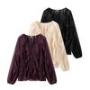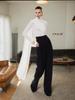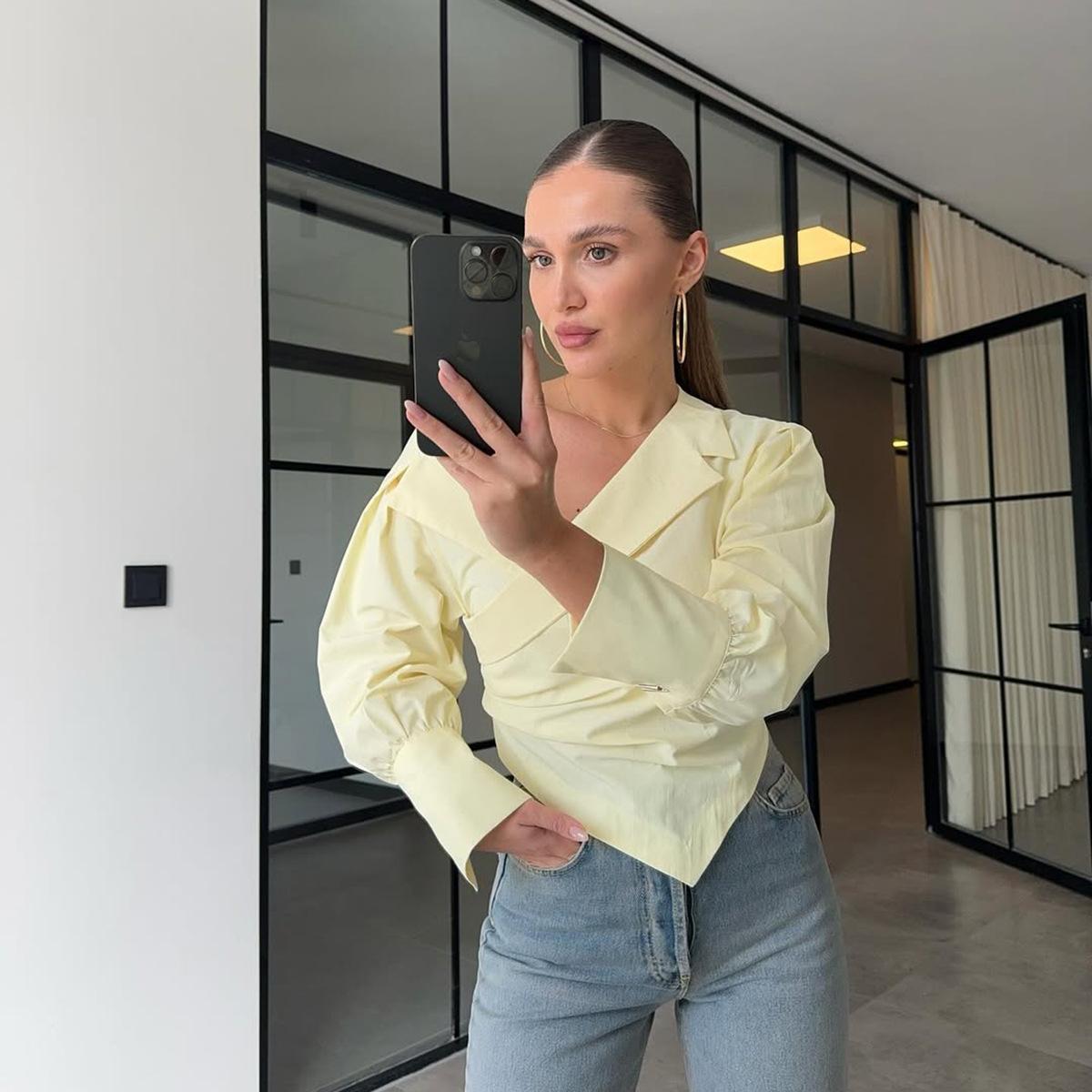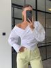 Camisa de Manga Larga con Diseño de Cintura, Puño Linterna, Solapa y Hombros Descubiertos de Verano 2025 de Lujo Ligero de Alta Gama Europeo y Americano de Color Sólido