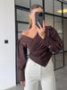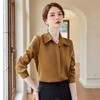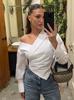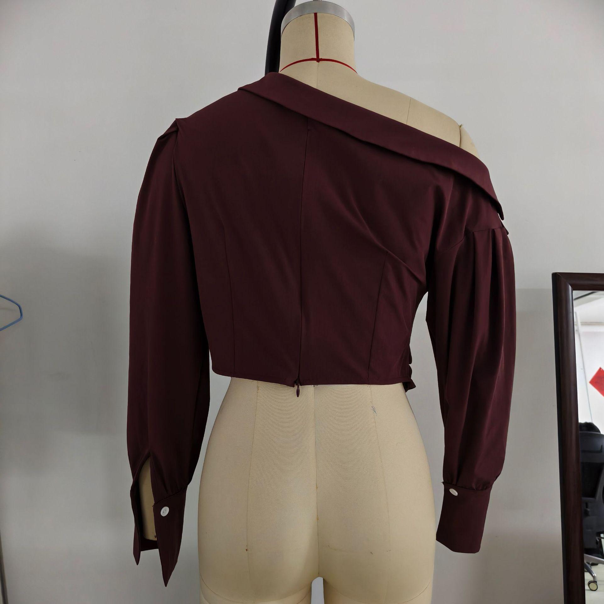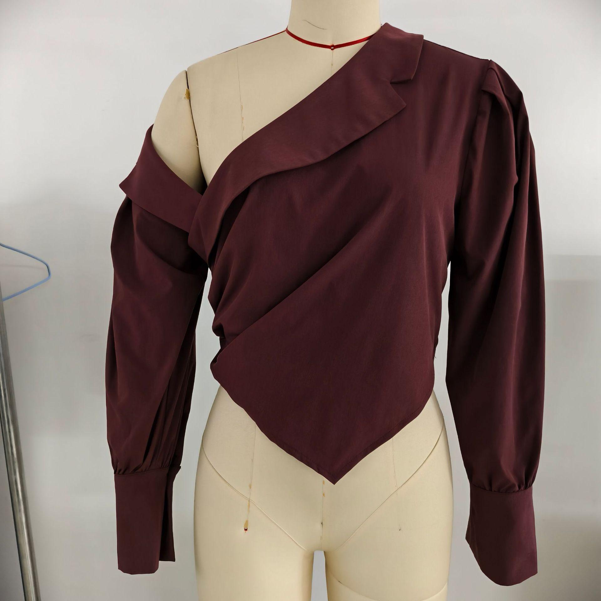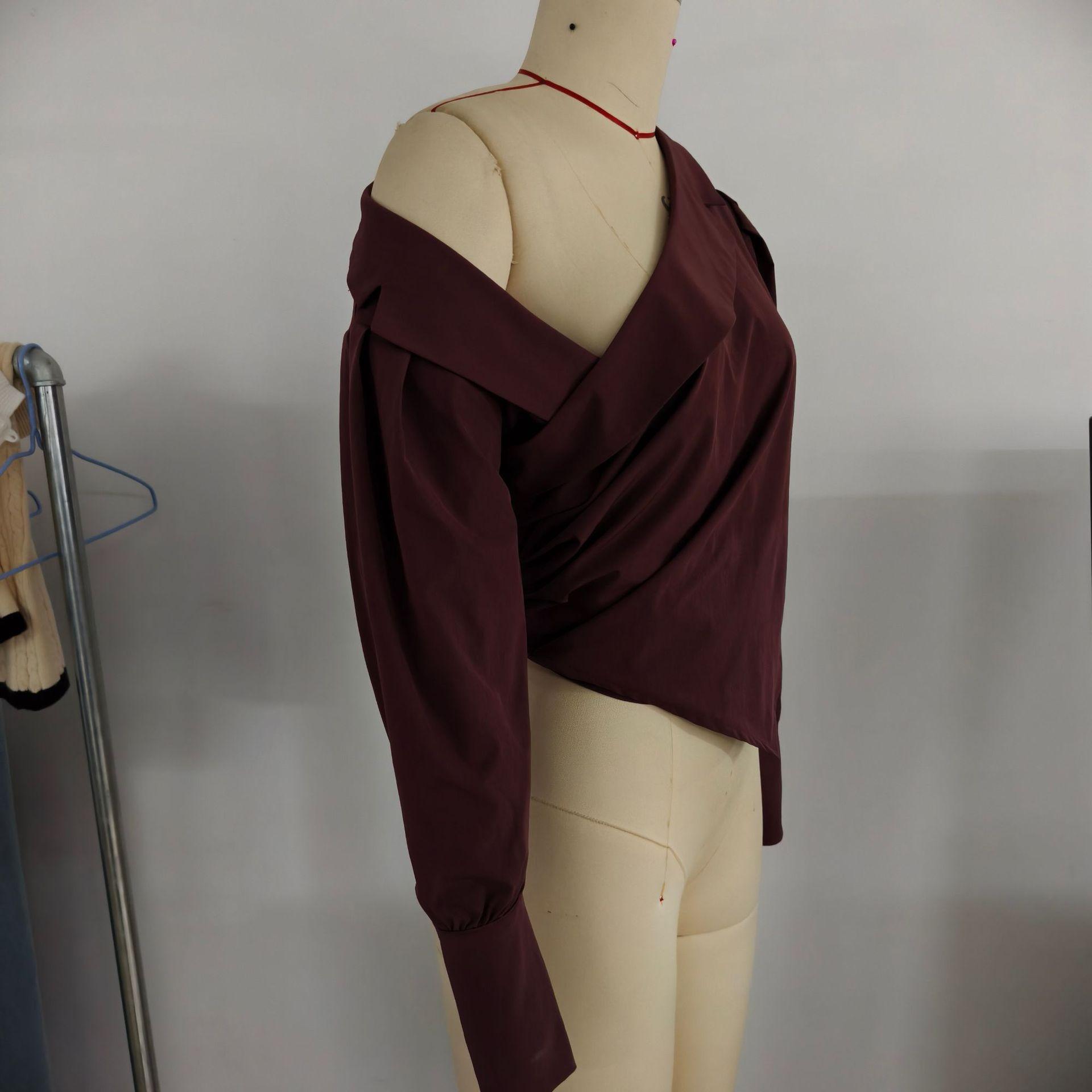 Camisa de manga larga 2025 europea y americana de alta gama, lujo ligero, verano, color sólido, hombros descubiertos, solapa, puño linterna, diseño ceñido a la cintura