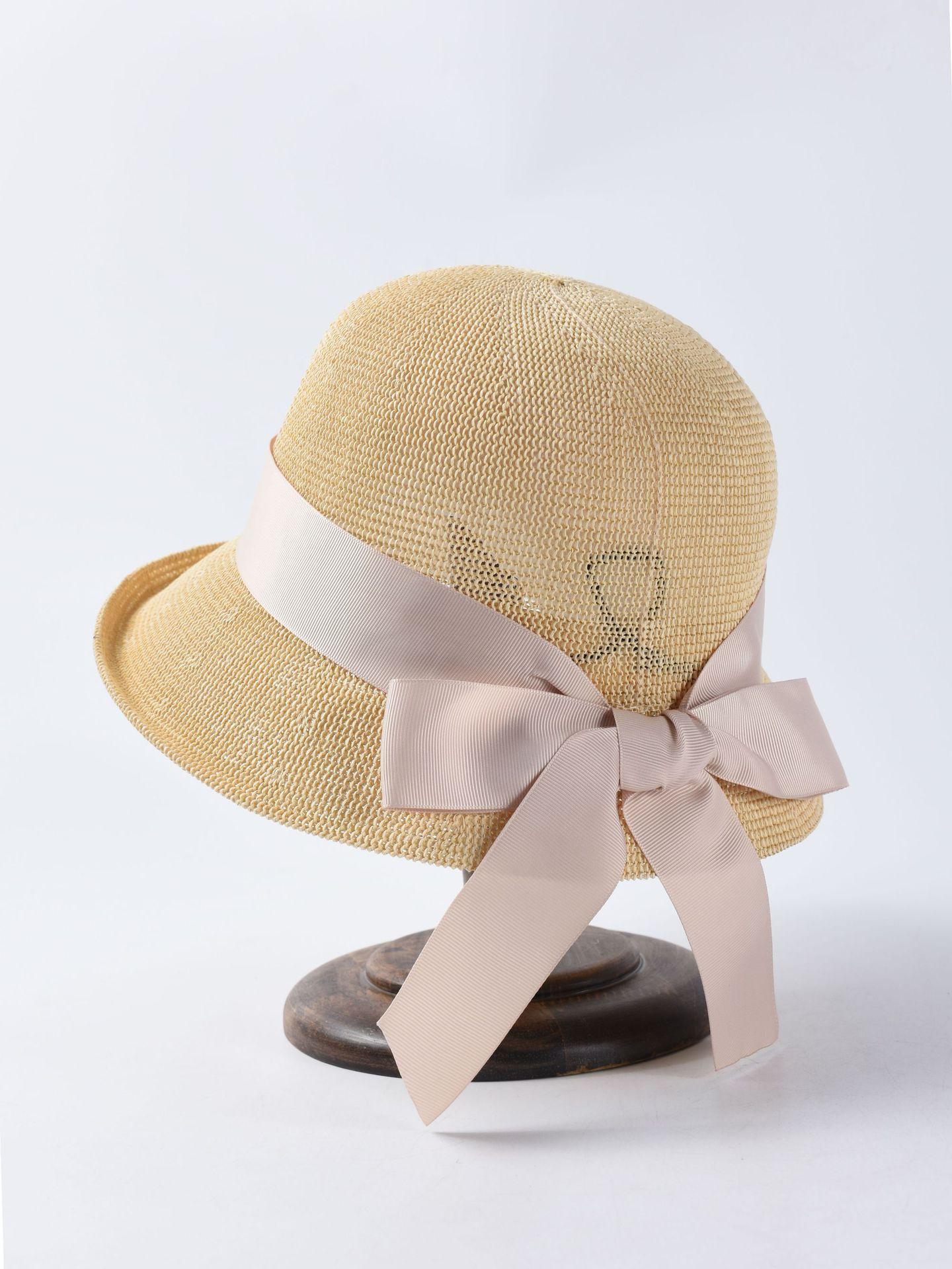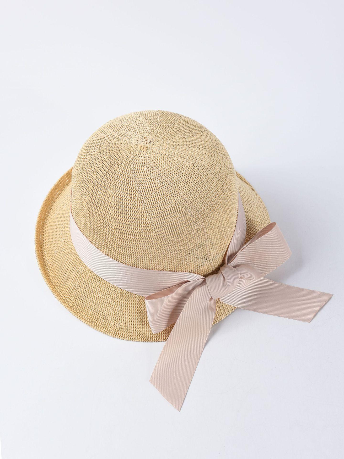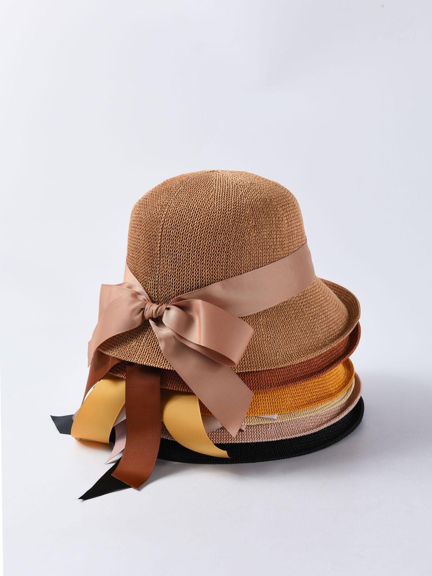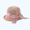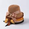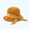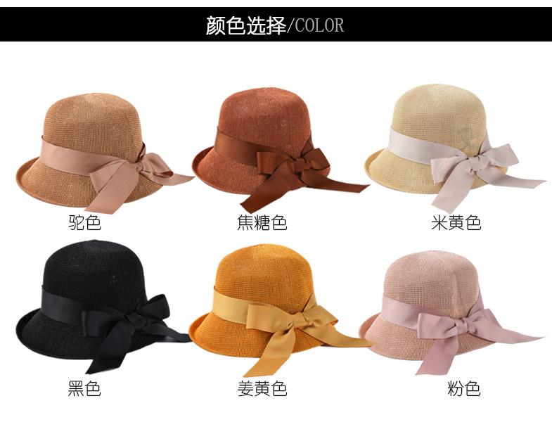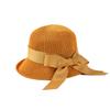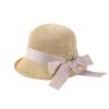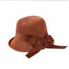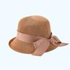 Sombrero de paja con lazo para mujer, sombrero de sol de verano transpirable, tejido de rizo, sombrero de sol de cúpula estilo coreano