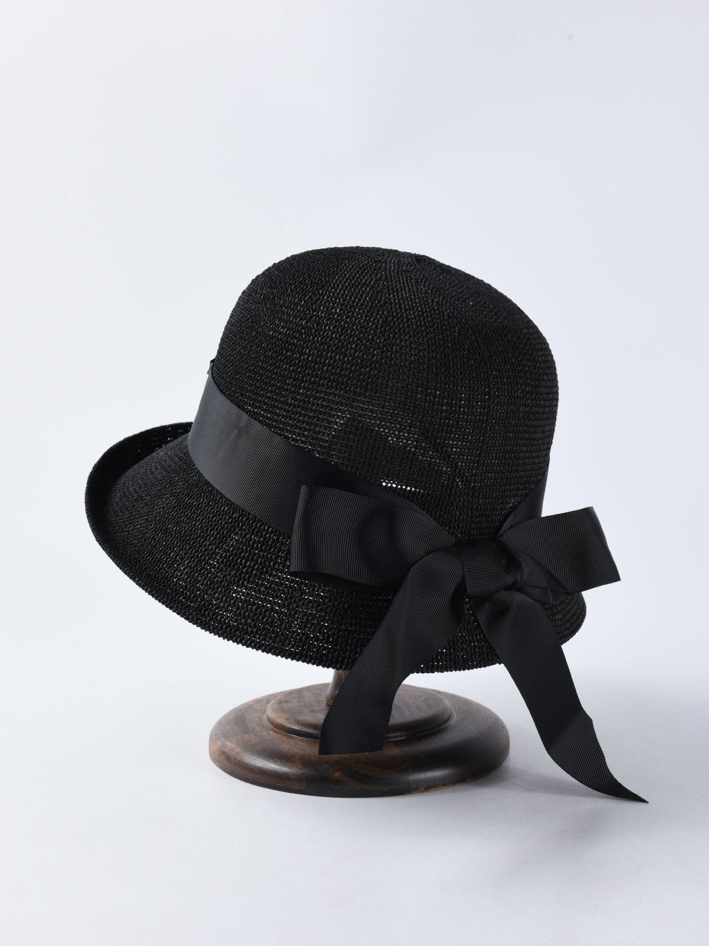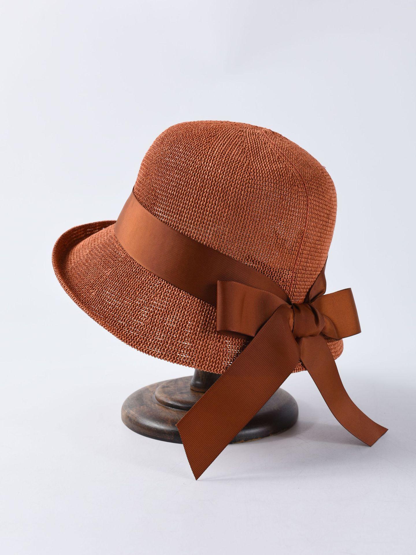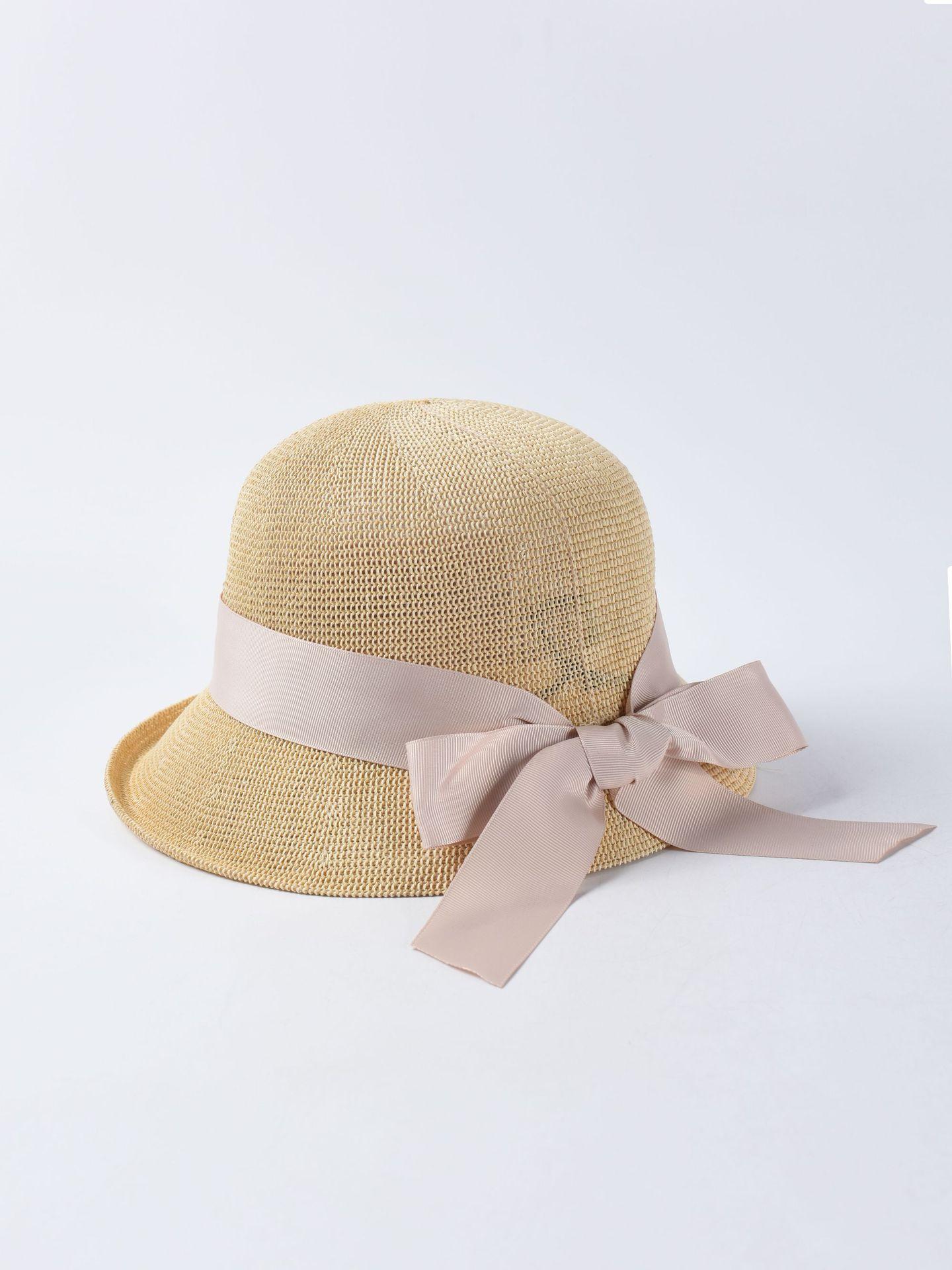 Sombrero de paja con lazo para mujer, sombrero de sol de verano transpirable, tejido de rizo, sombrero de sol de cúpula estilo coreano