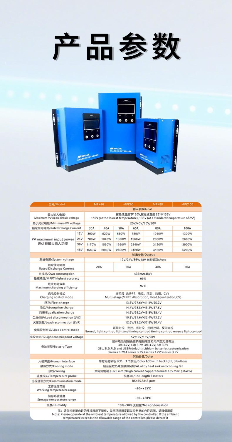 Controlador de carga solar MPPT transfronterizo 12V24V36V48V fotovoltaico identificación automática de voltaje 30-100A