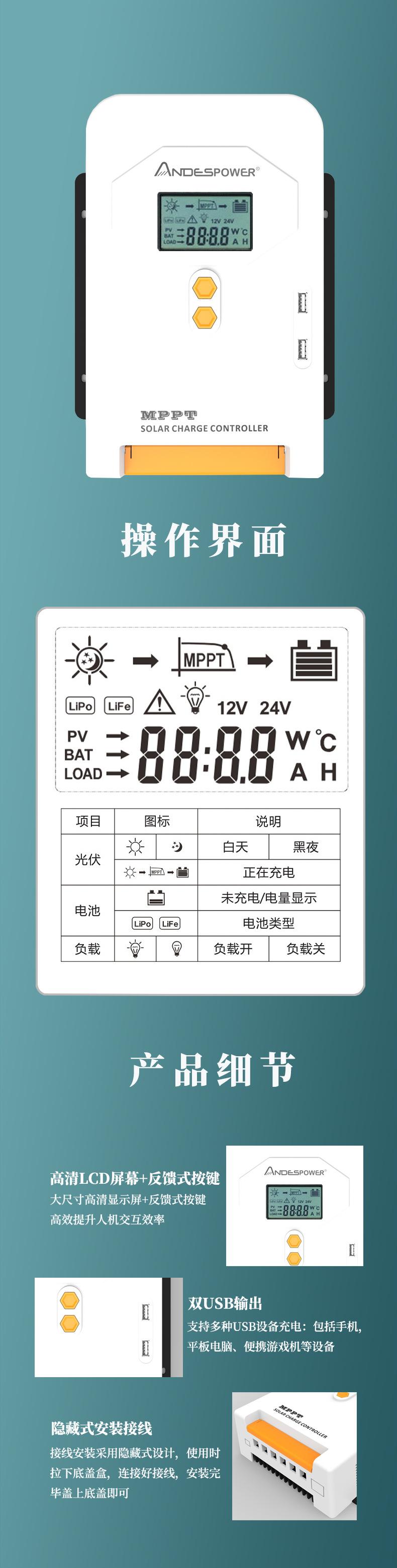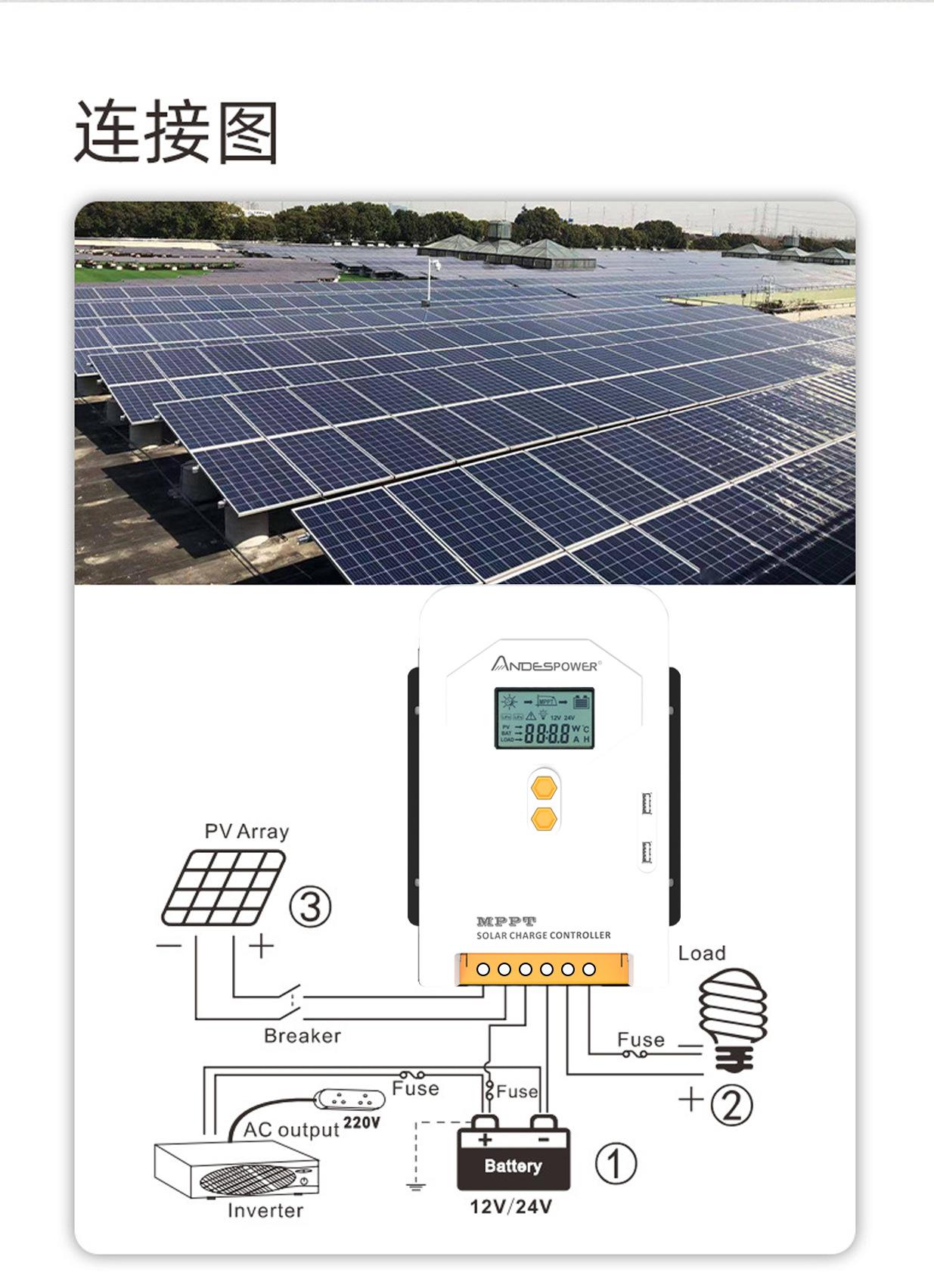 Controlador de Energía Solar MPPT Carga Fotovoltaica 12V/24V Identificación Automática Carga Inteligente Doméstica