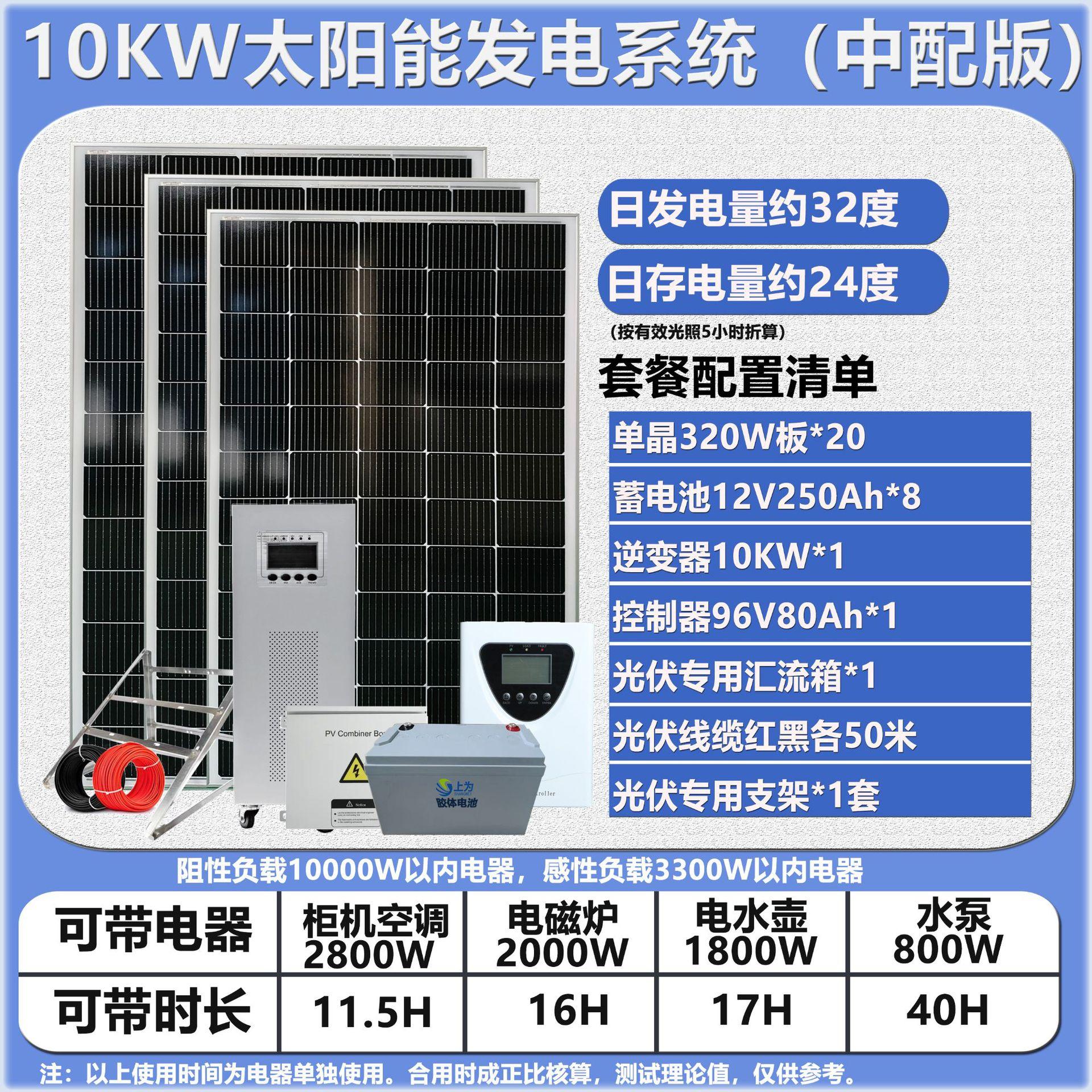 Sistema Solar Inversor Fuera de Red 10KW Suministro de Energía para Exterior 220V Almacenamiento de Energía Fotovoltaico Juego Completo para Hogar Villa Azotea