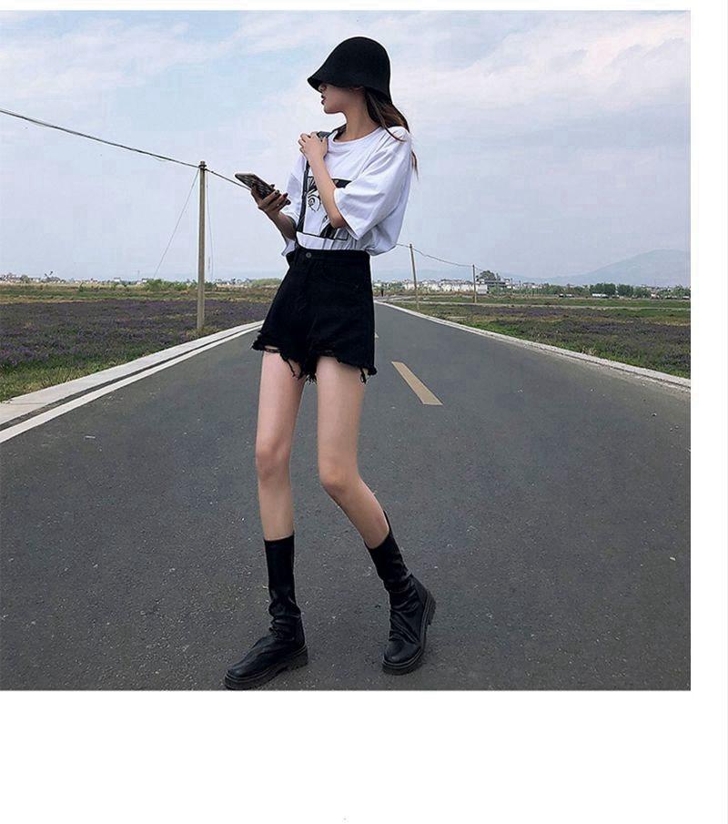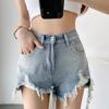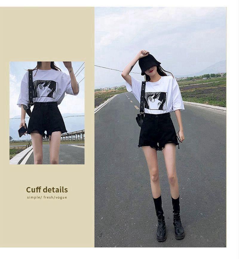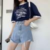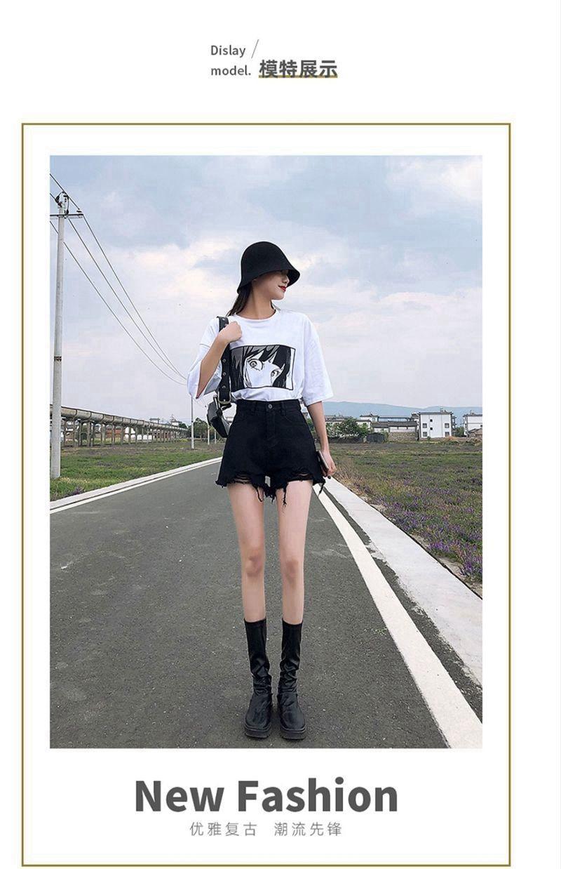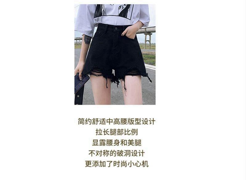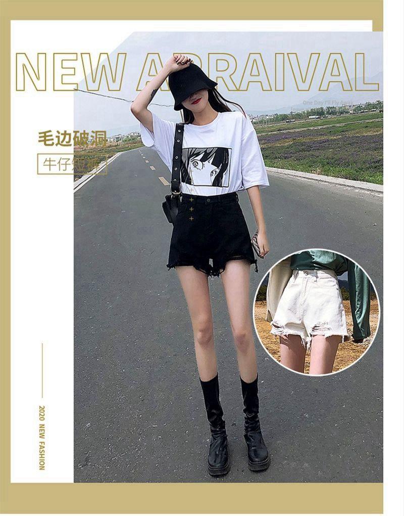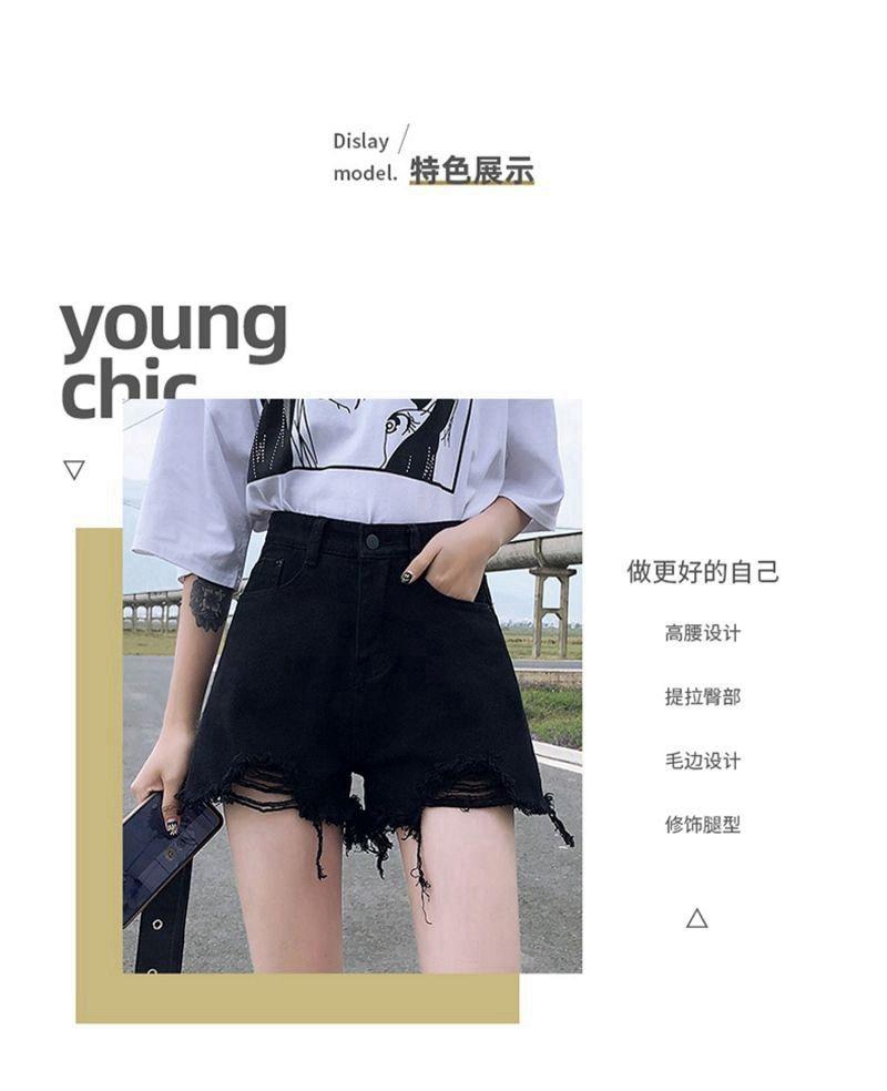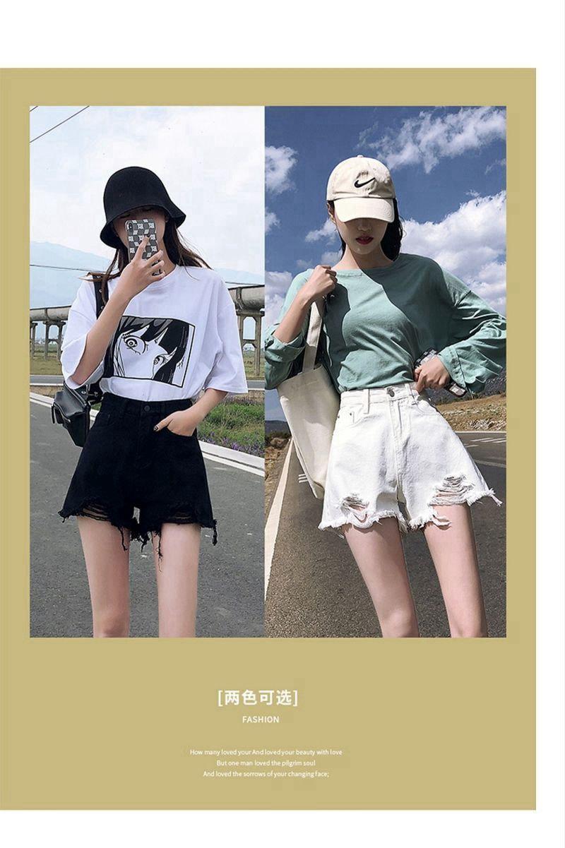 Verano 2022 Nuevos Shorts de Mezclilla Rotos de Cintura Alta Estudiantes Mujeres Pierna Ancha Sueltos Forma A Pantalones Cortos Ins Trendy