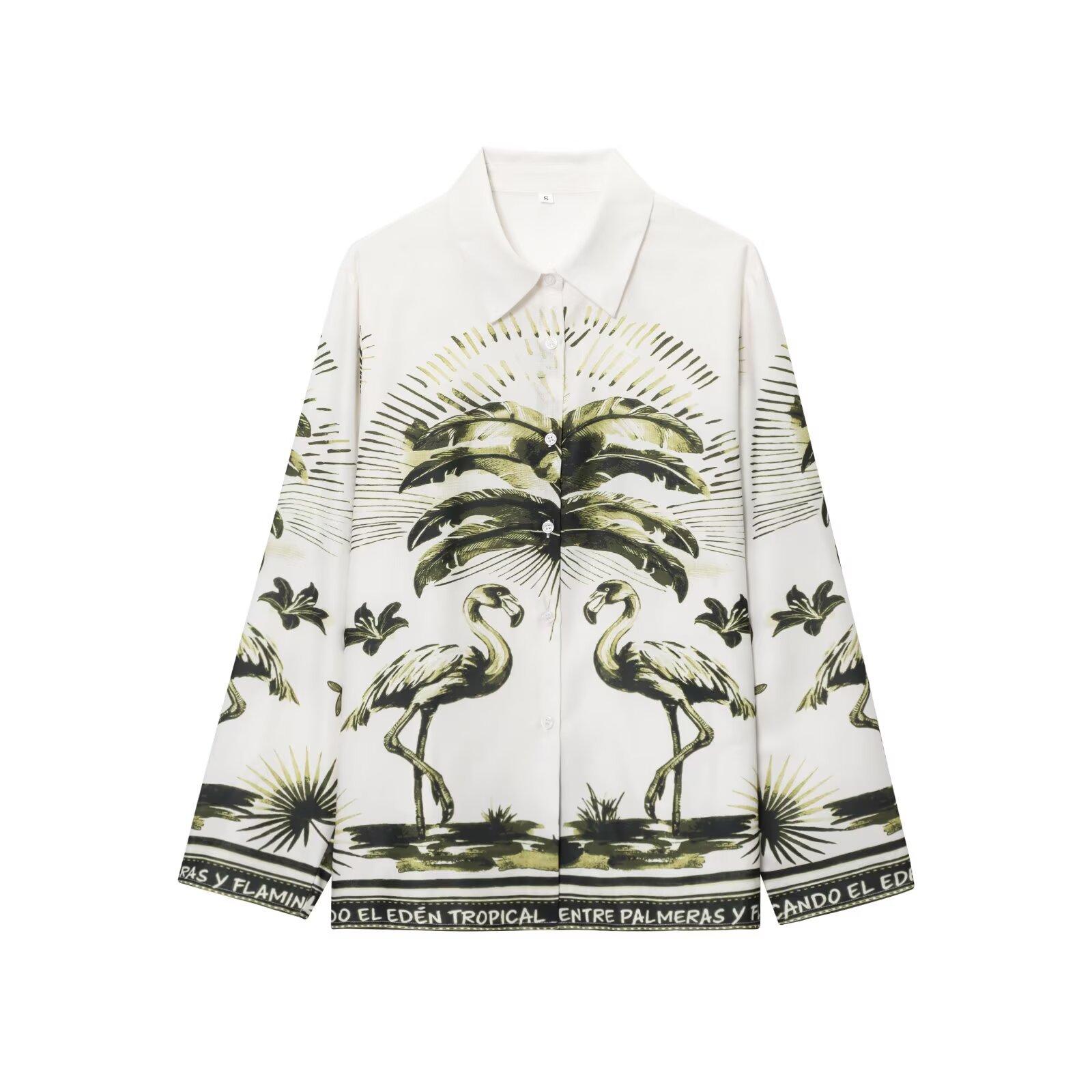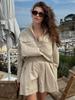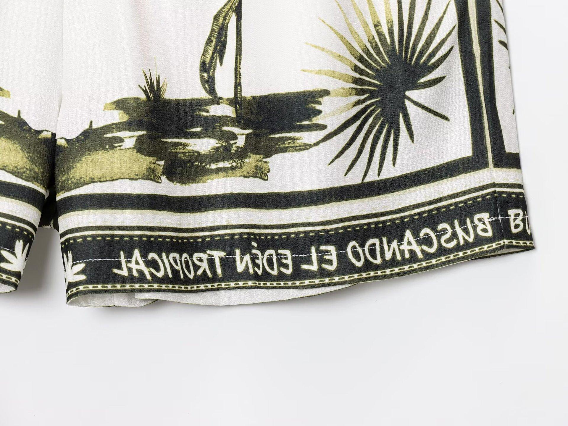 Ropa Europea y Americana Transfronteriza 2025 Nueva Moda de Verano Camisa Versátil de Manga Larga + Shorts Casuales de Cintura Media