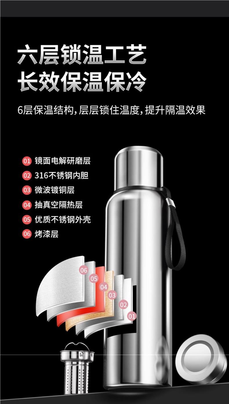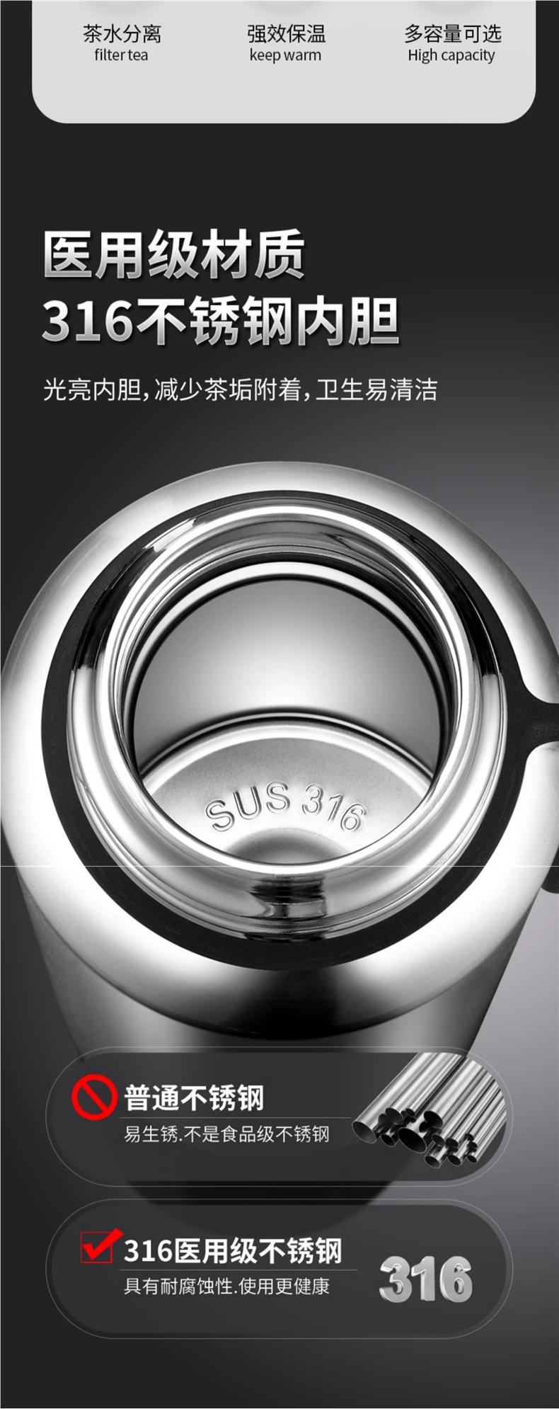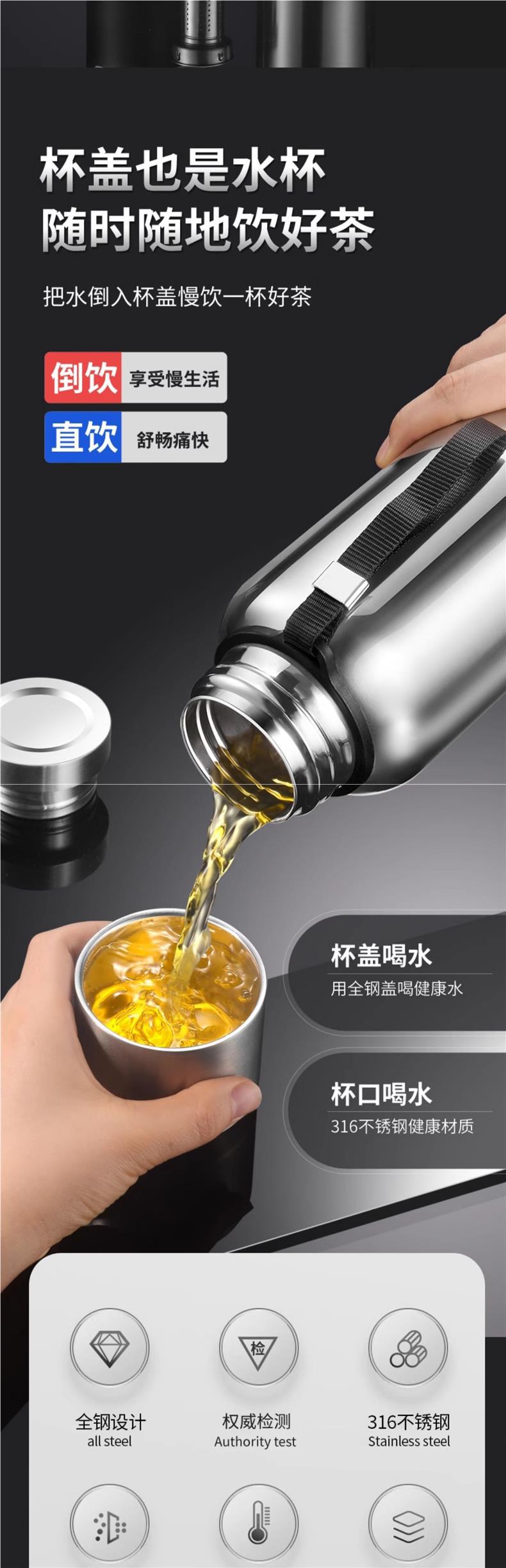 Termo de acero inoxidable 316 para hombre, olla totalmente de acero, taza fría de gran capacidad, portátil para exteriores, taza de té con separación de agua