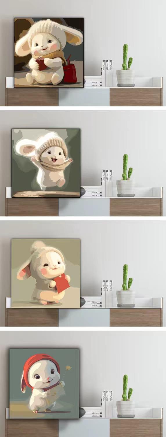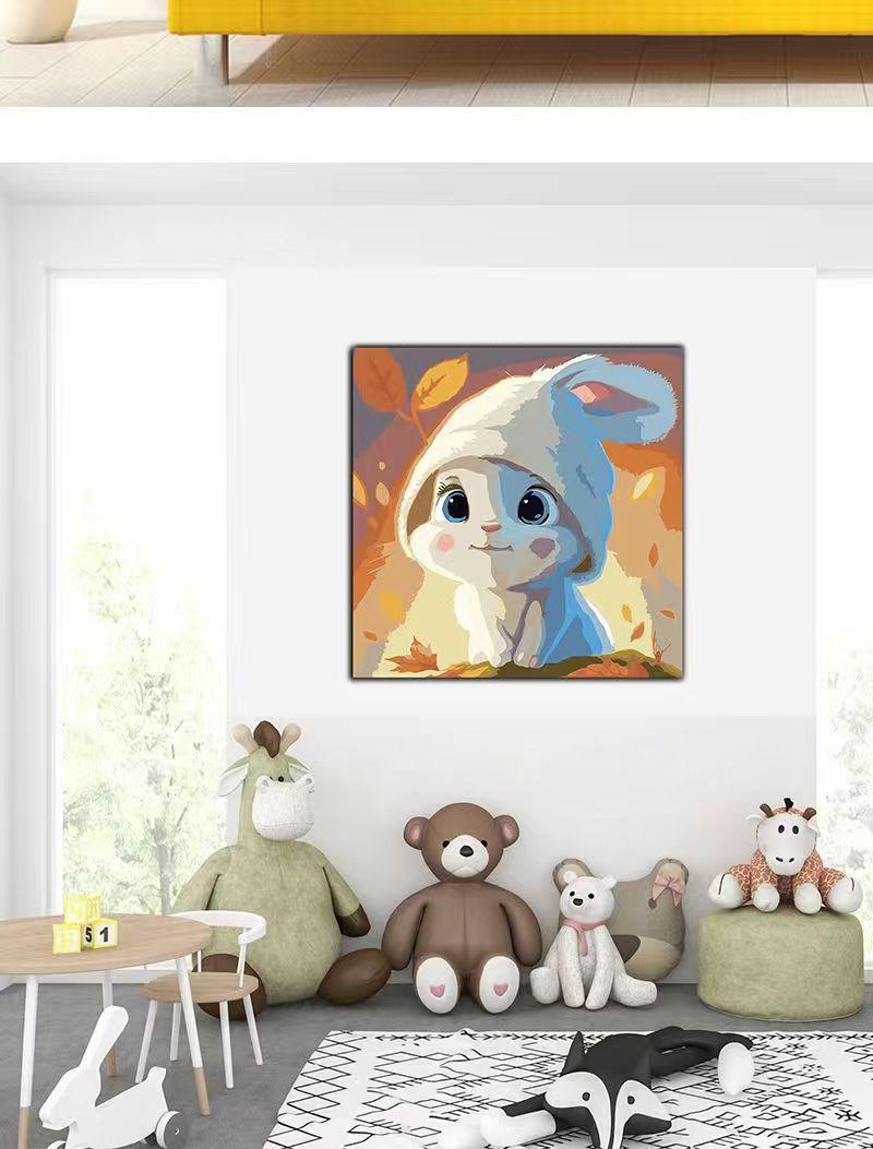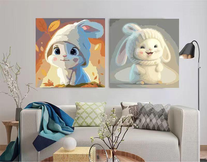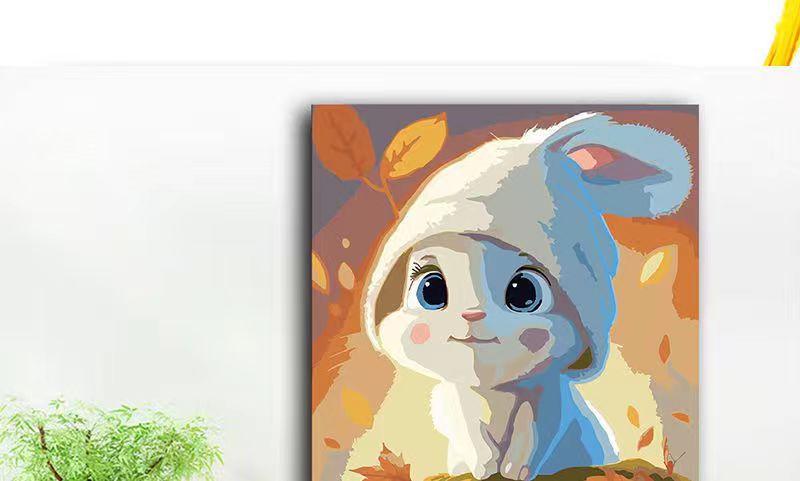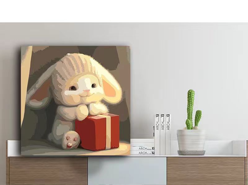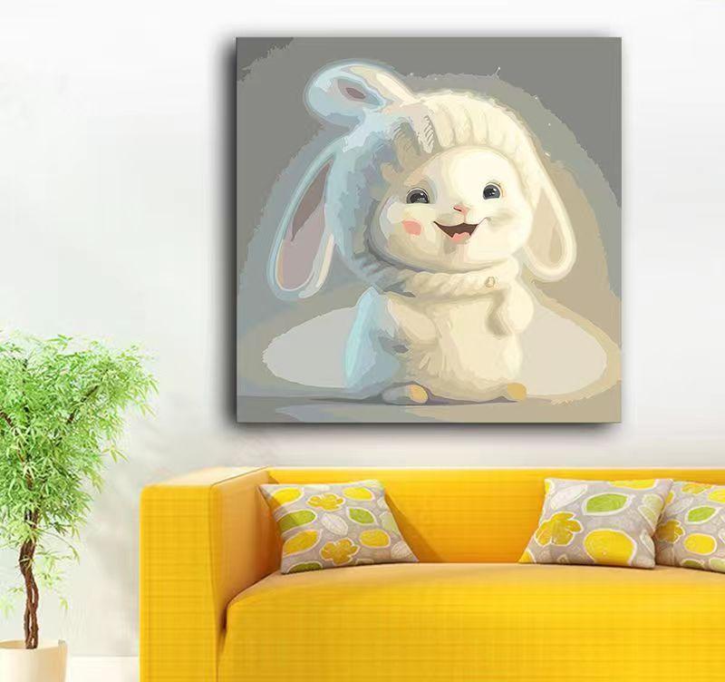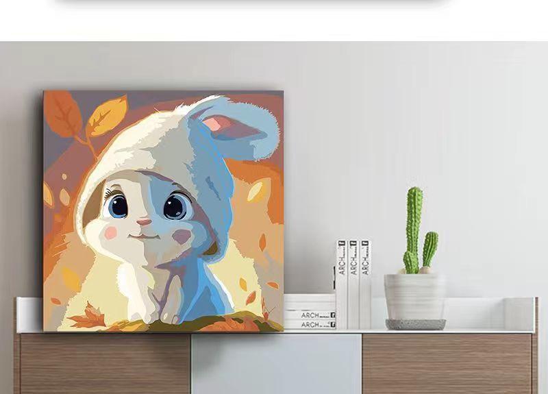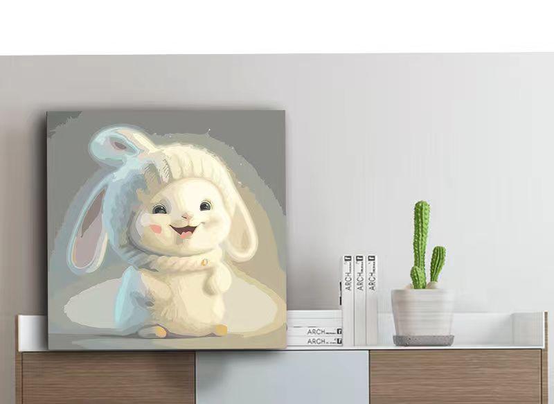 Pintura al óleo digital suave y linda de conejo para colorear DIY pintura infantil simple curativa hecha a mano hermosa animación de dibujos animados pintura para colgar