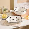 Molde para Hornear de Doble Asa Estilo Crema con Bandeja Horno Microondas para Hornear Tazón de Arroz Plato para Desayuno Casero Plato de Cerámica para Horno
