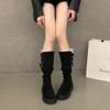 2025 Otoño/Invierno Nuevas Botas de Mujer Gamuza Sobre la Rodilla Botas Largas Tacón Bajo Suela Plana Más Algodón Cálidas Slip-on Botas de Mujer al Mayoreo