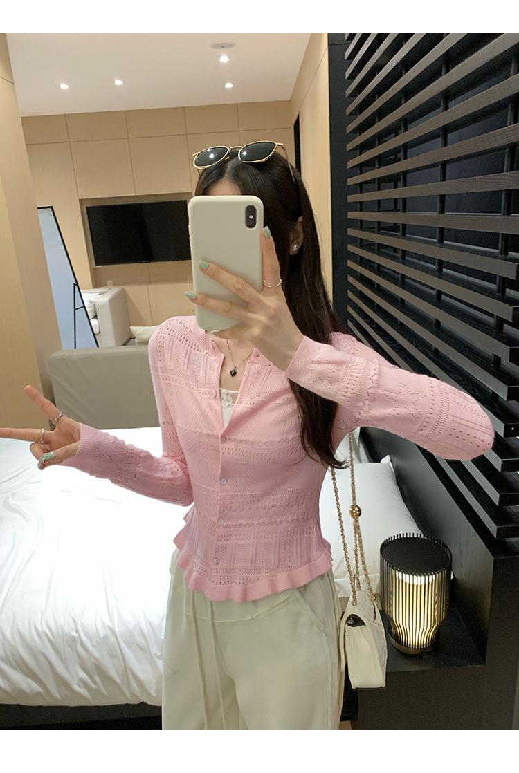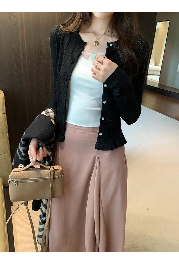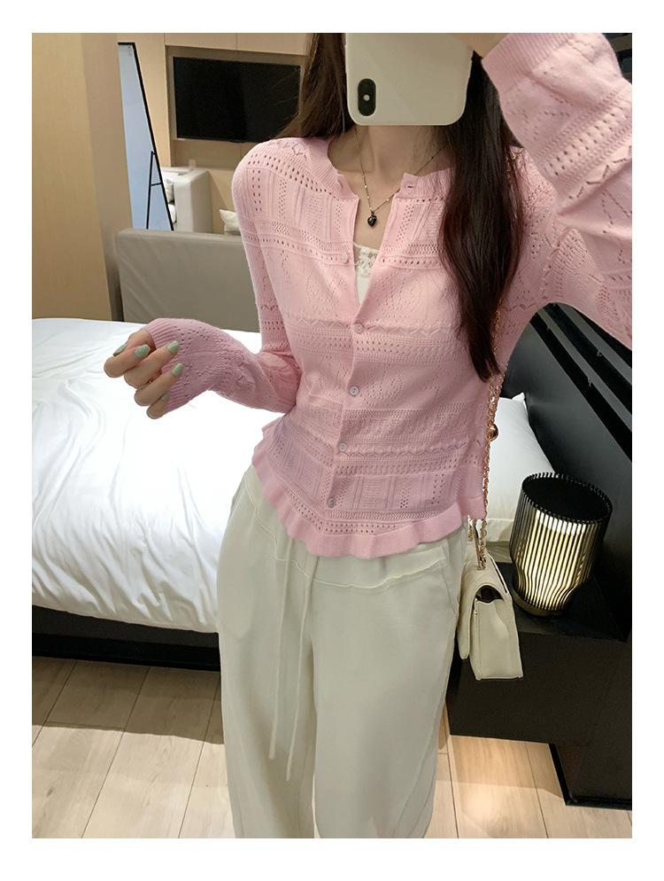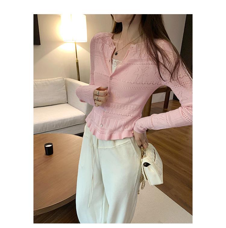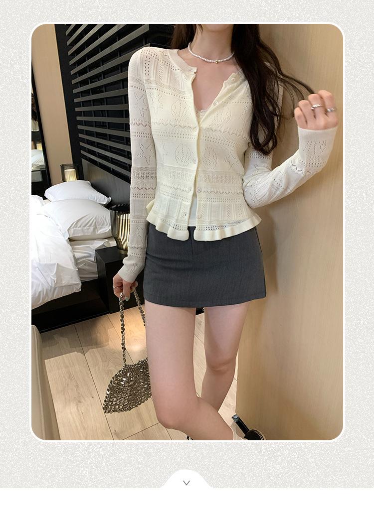 Cárdigan de Punto de Lana de Manga Larga Hueco Francés Abrigo para Mujer Estilo Coreano Otoño 2025 Nuevo Top Adelgazante