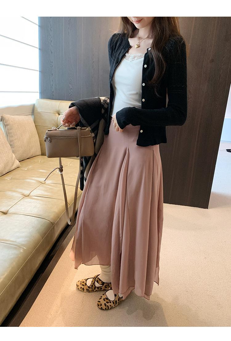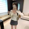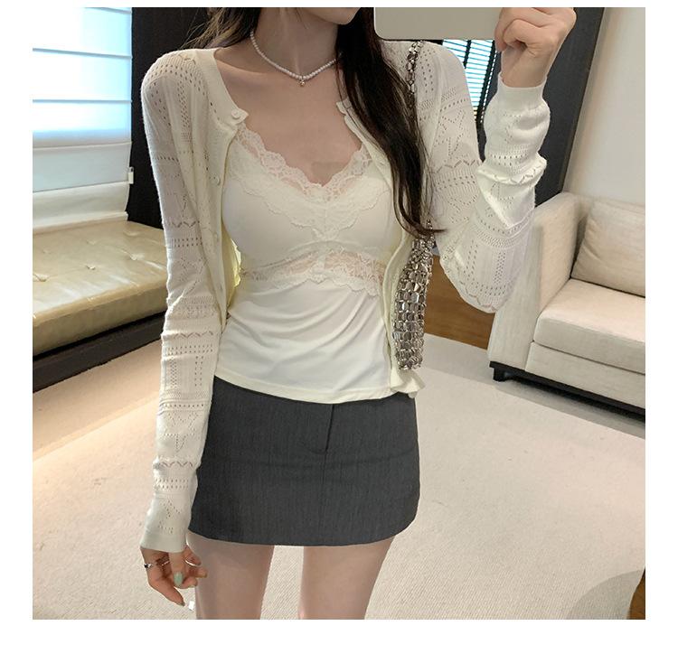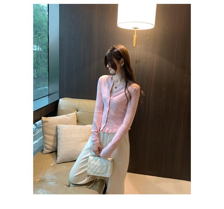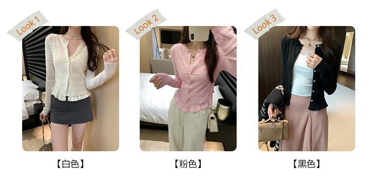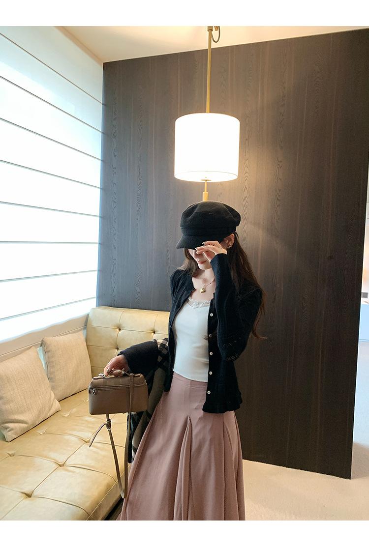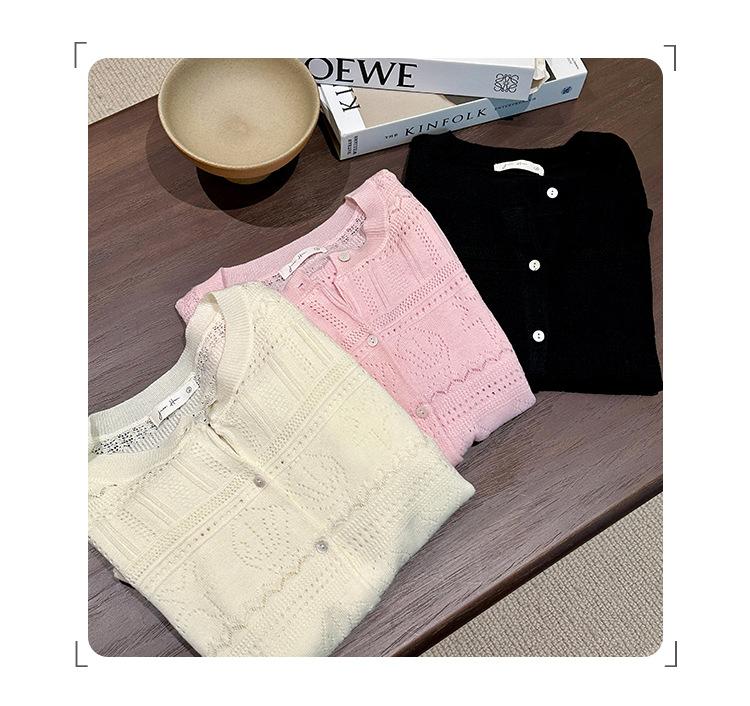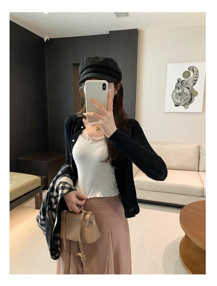 Cárdigan de Punto de Lana de Manga Larga Hueco Francés Abrigo para Mujer Estilo Coreano Otoño 2025 Nuevo Top Adelgazante