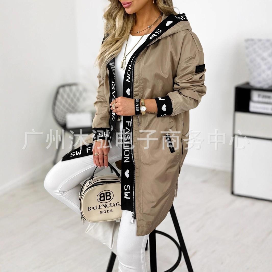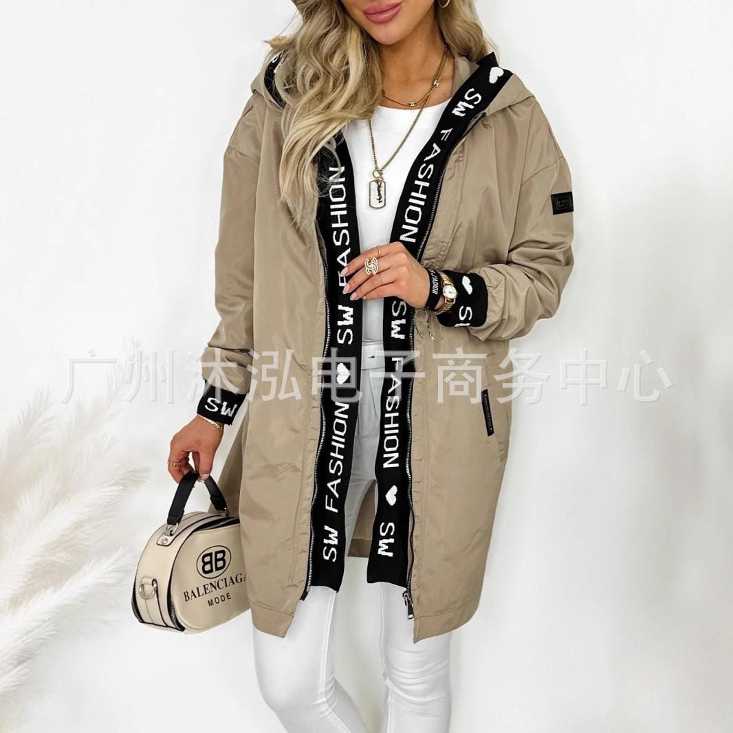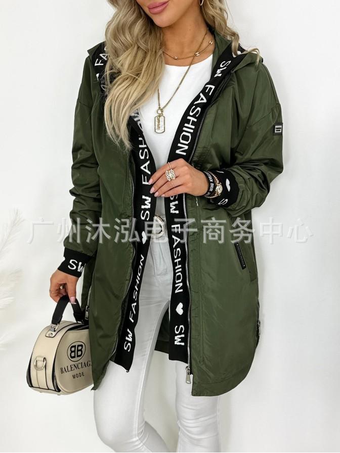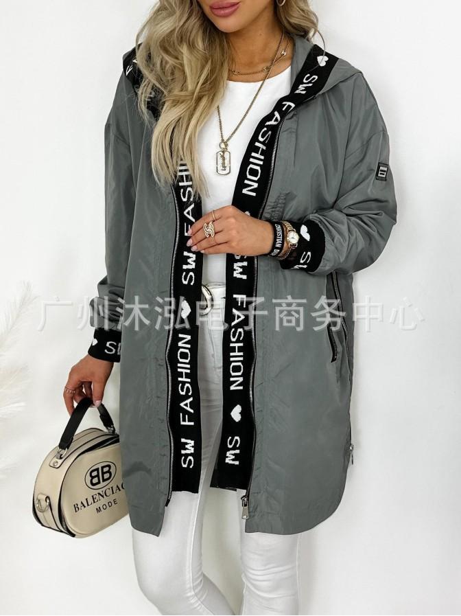 2025 Invierno Nuevo Amazon Transfronterizo Europeo y Americano Casual Cordón Bolsillo con Cremallera Chaqueta con Letras Ropa de Mujer
