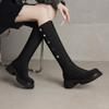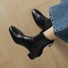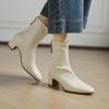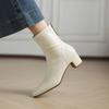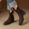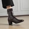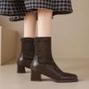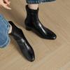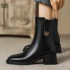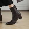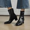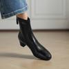 Botas de cuero para mujer de otoño e invierno, color sólido, tacón medio, talla grande, botas para mujer, nuevas versátiles, cremallera trasera, suela de goma, media pantorrilla, botas Martin