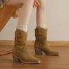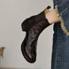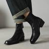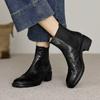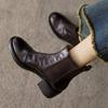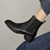 Botas Martin de piel auténtica de otoño e invierno, color sólido, talla grande, para mujer, tacón medio, punta redonda, versátiles, de piel de vaca, hasta media pantorrilla, botas nuevas para mujer