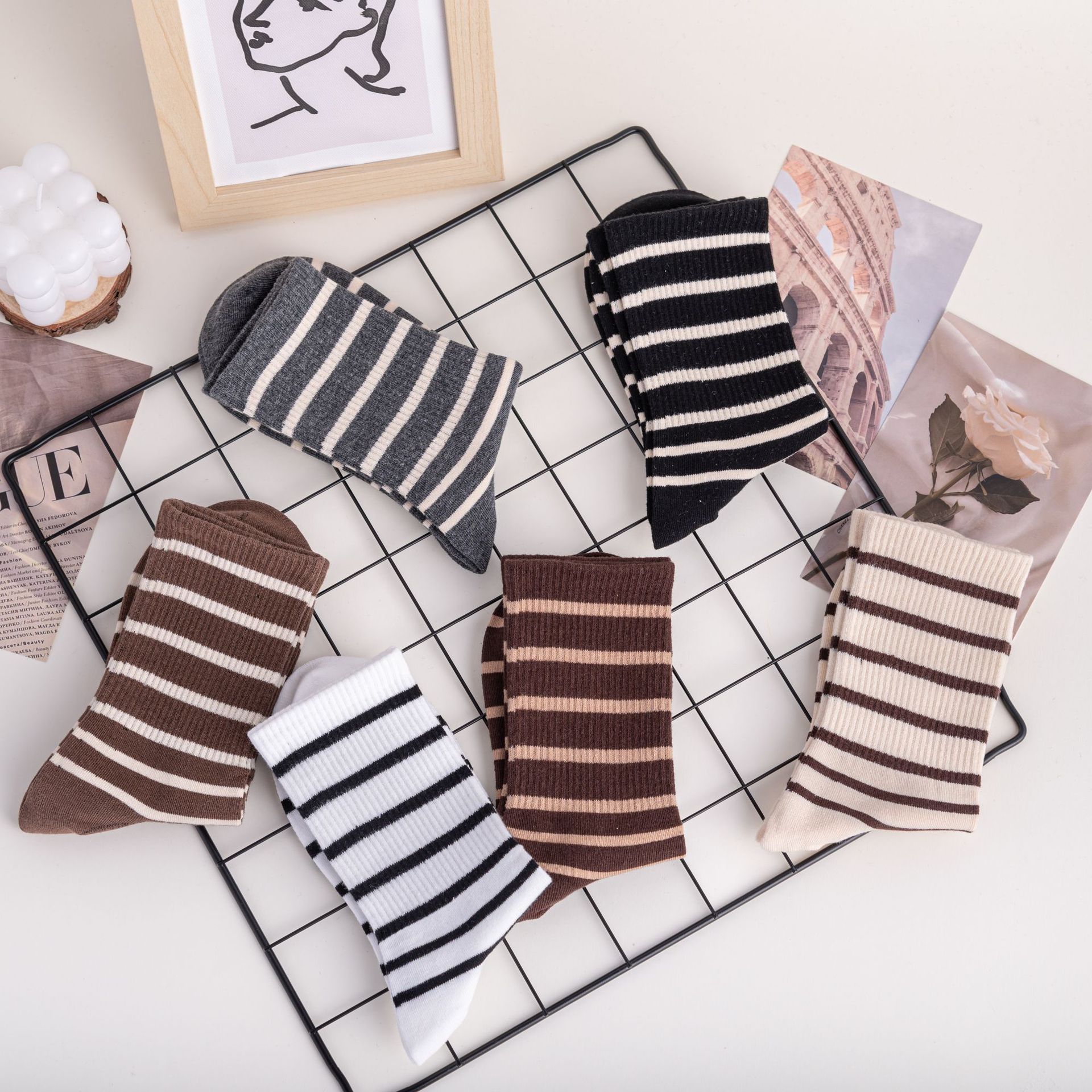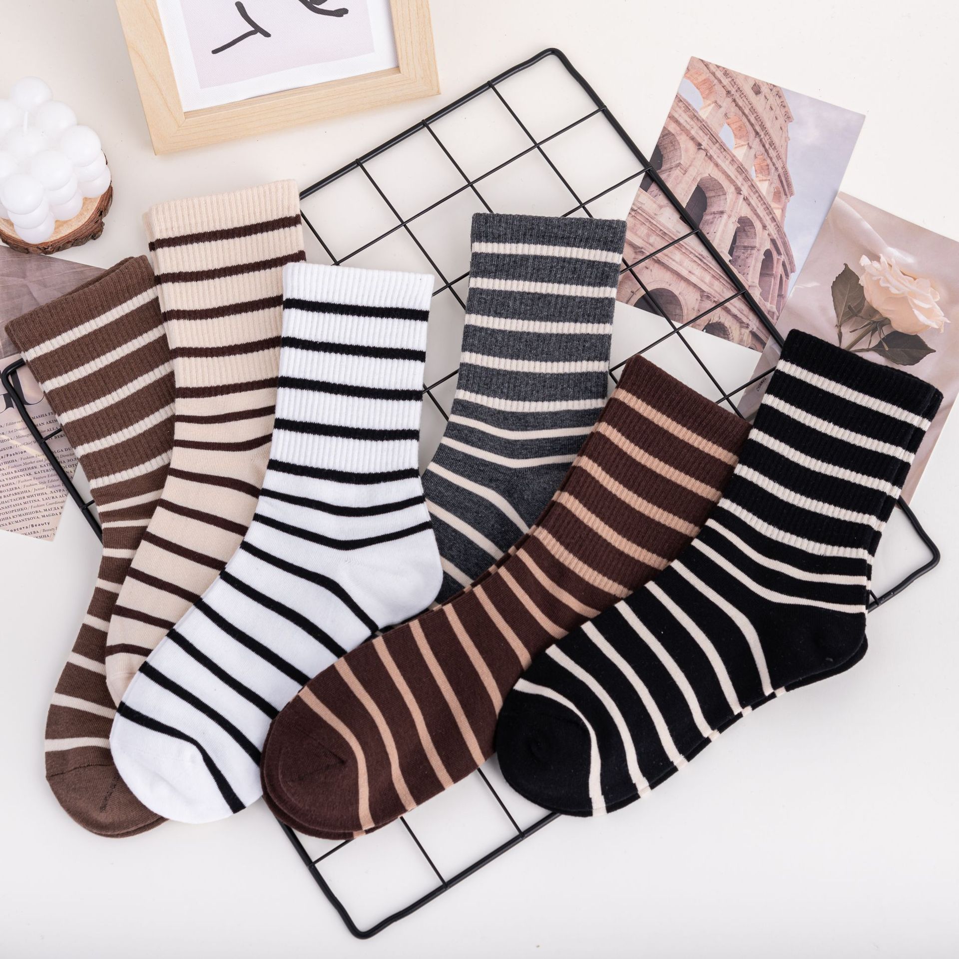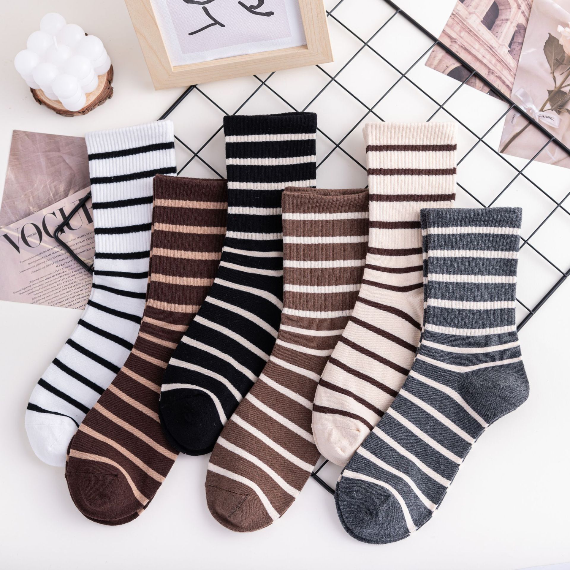 Calcetines de moda de estilo popular de celebridad de Internet para mujer, calcetines hasta la pantorrilla simples y versátiles de estilo deportivo académico, calcetines hasta la rodilla, envío directo de una pieza