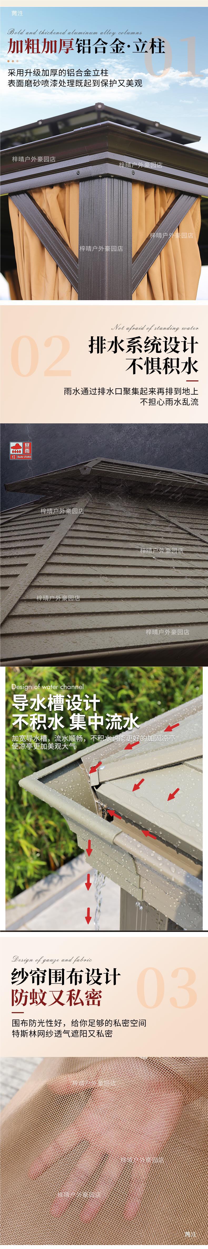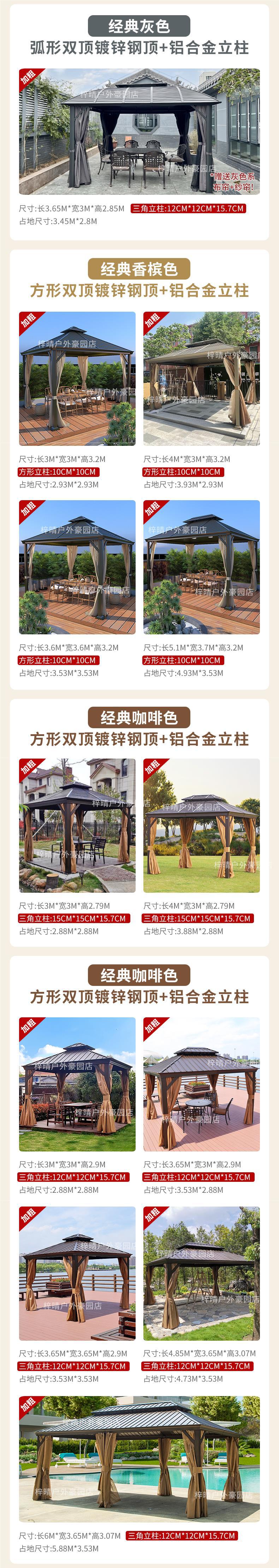 Pabellón Exterior Patio Aleación de Aluminio Carpa Casa Terraza Solárium Pabellón de Cuatro Esquinas Toldo de Techo para Jardín Exterior