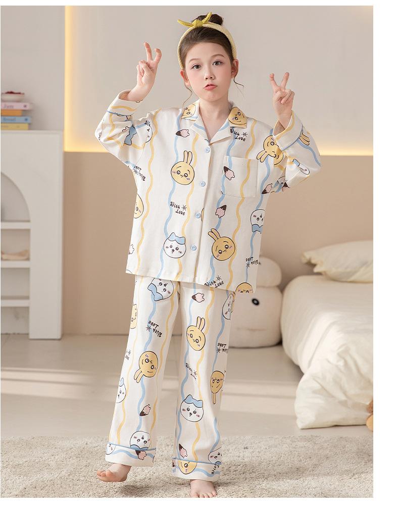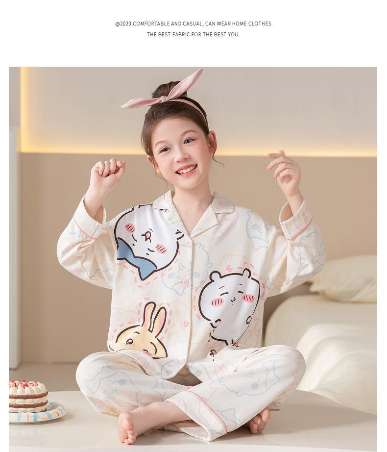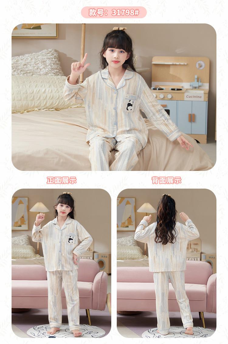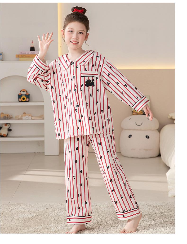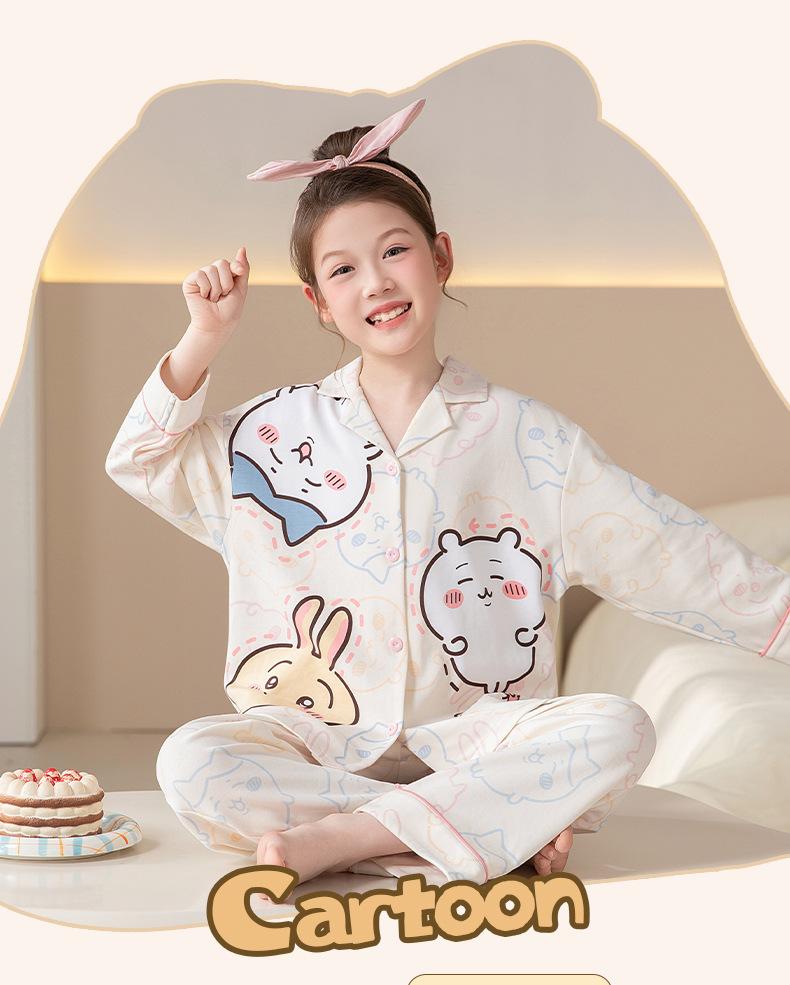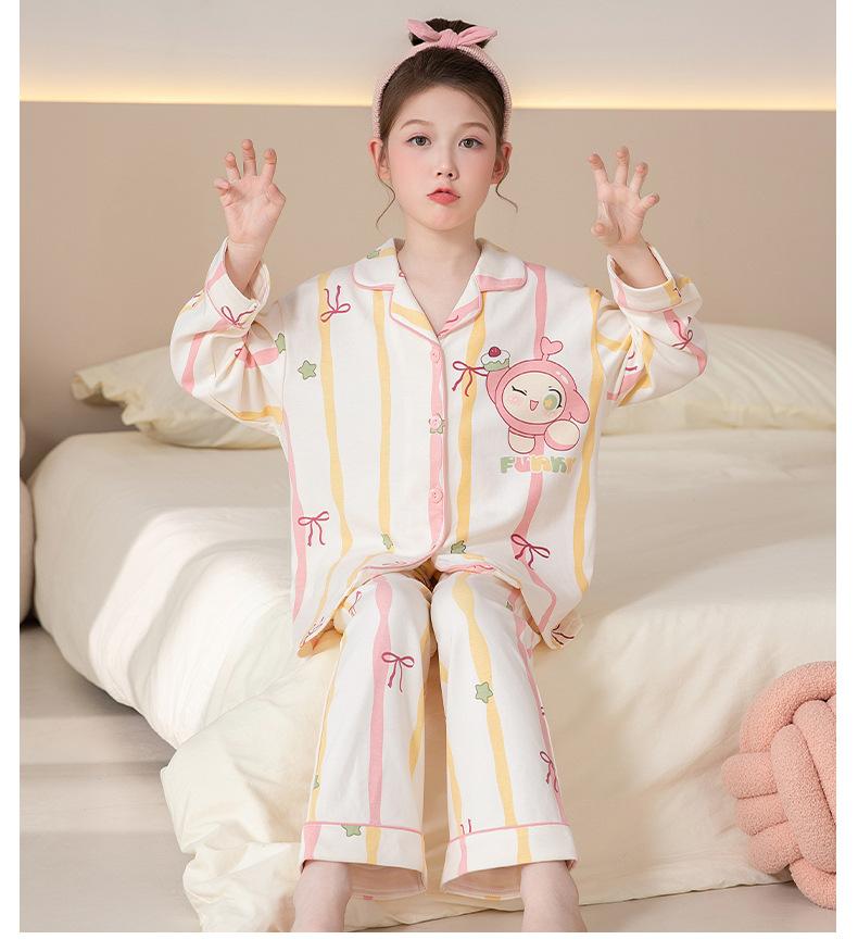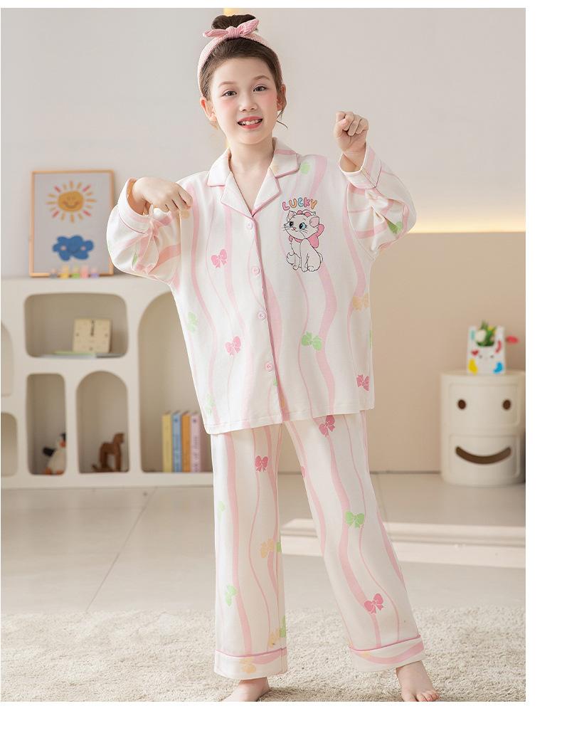 Pijamas de Algodón Puro de Manga Larga para Niñas, Estilo Delgado para Primavera y Otoño 2025, Ropa de Casa Elegante y Linda para Niñas Grandes