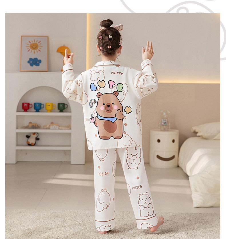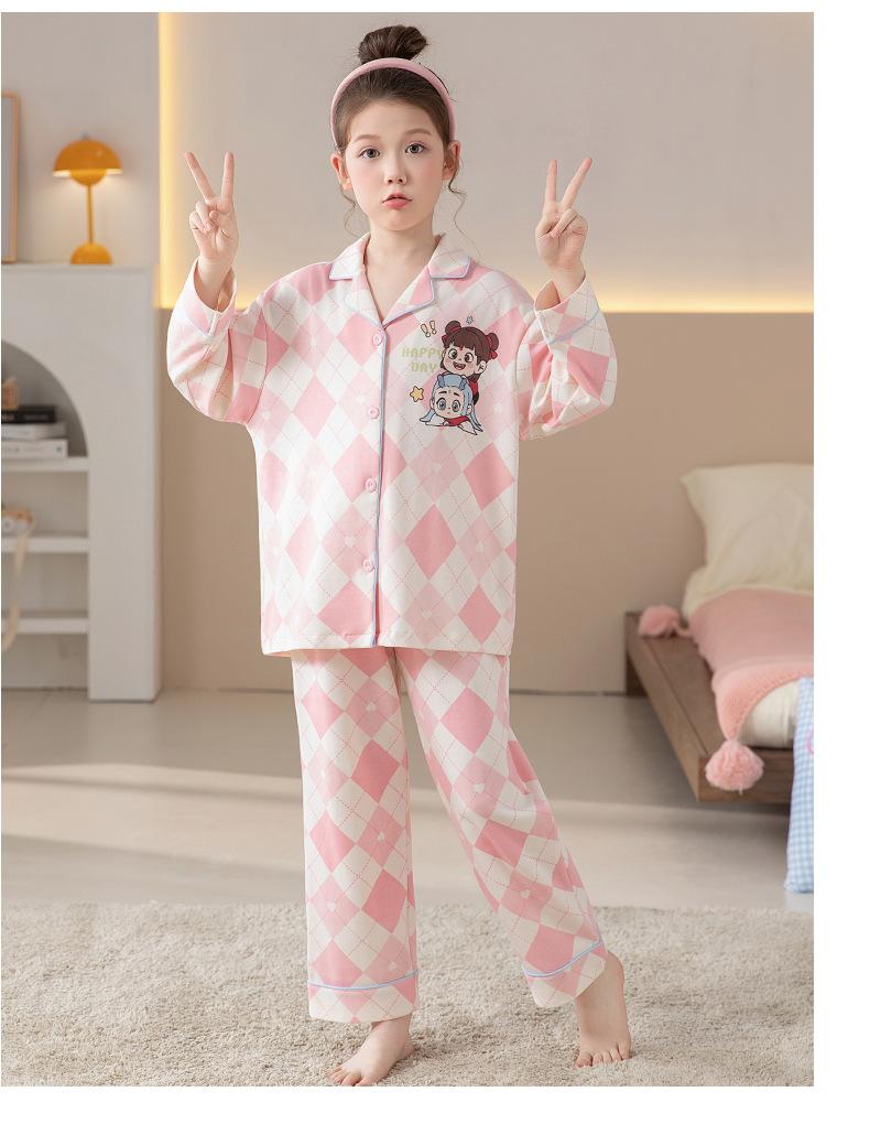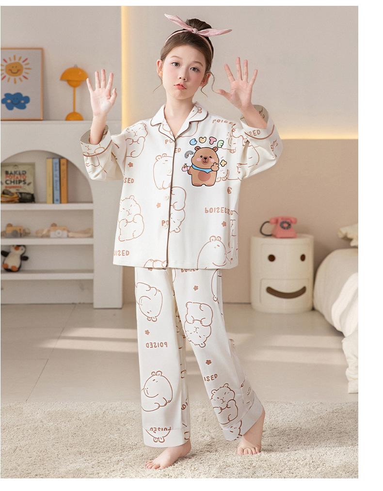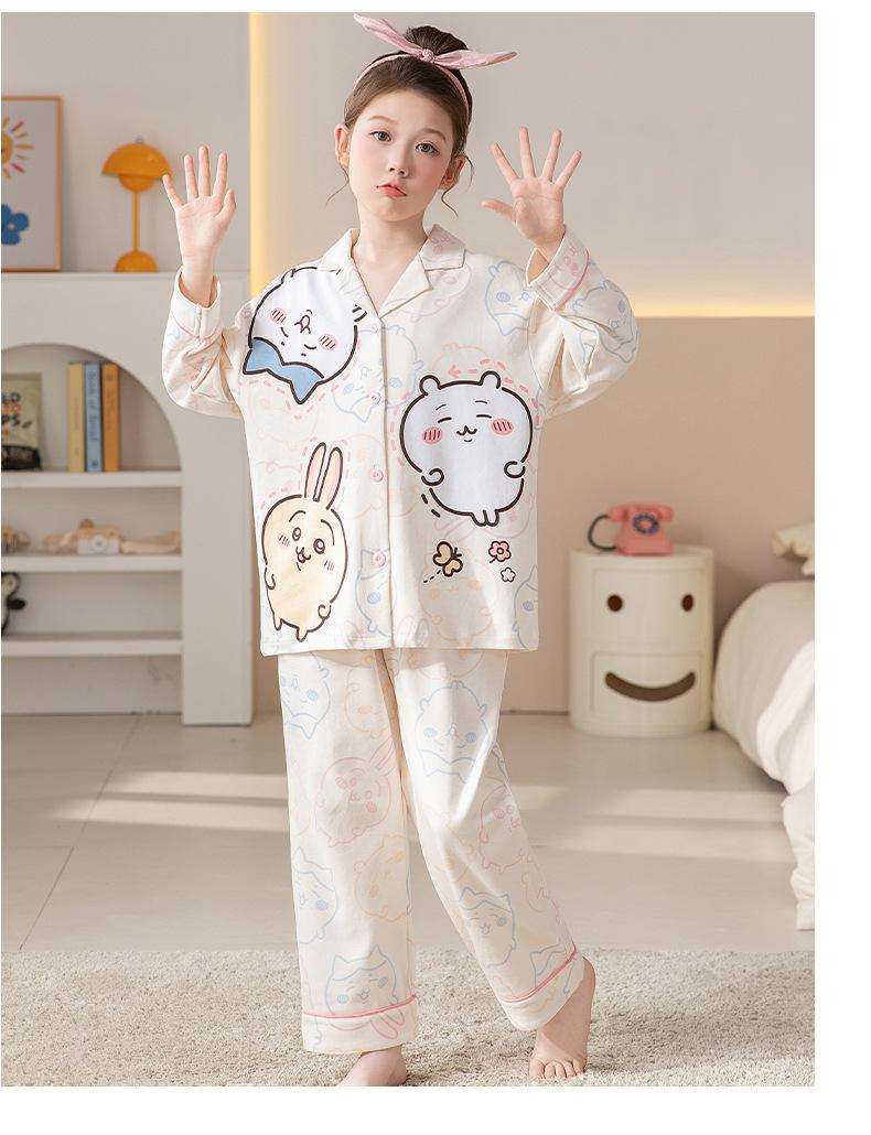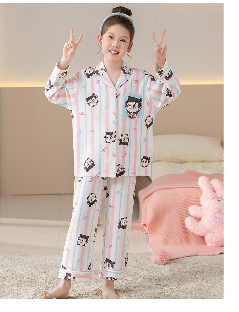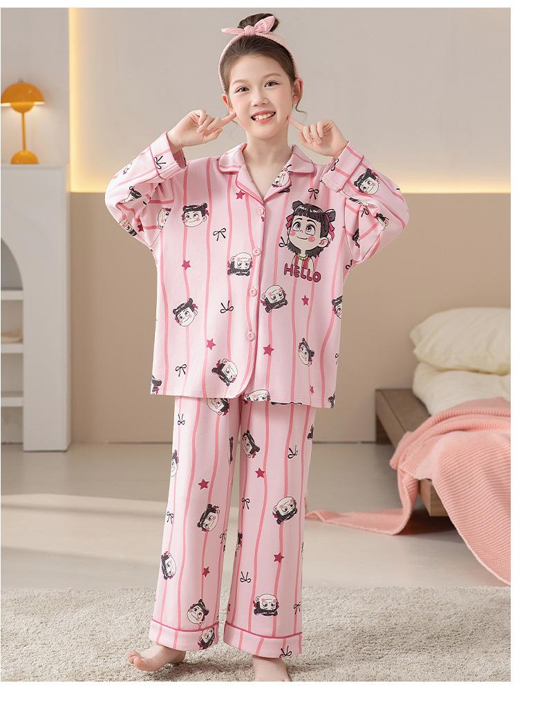 Pijamas de Algodón Puro de Manga Larga para Niñas, Estilo Delgado para Primavera y Otoño 2025, Ropa de Casa Elegante y Linda para Niñas Grandes
