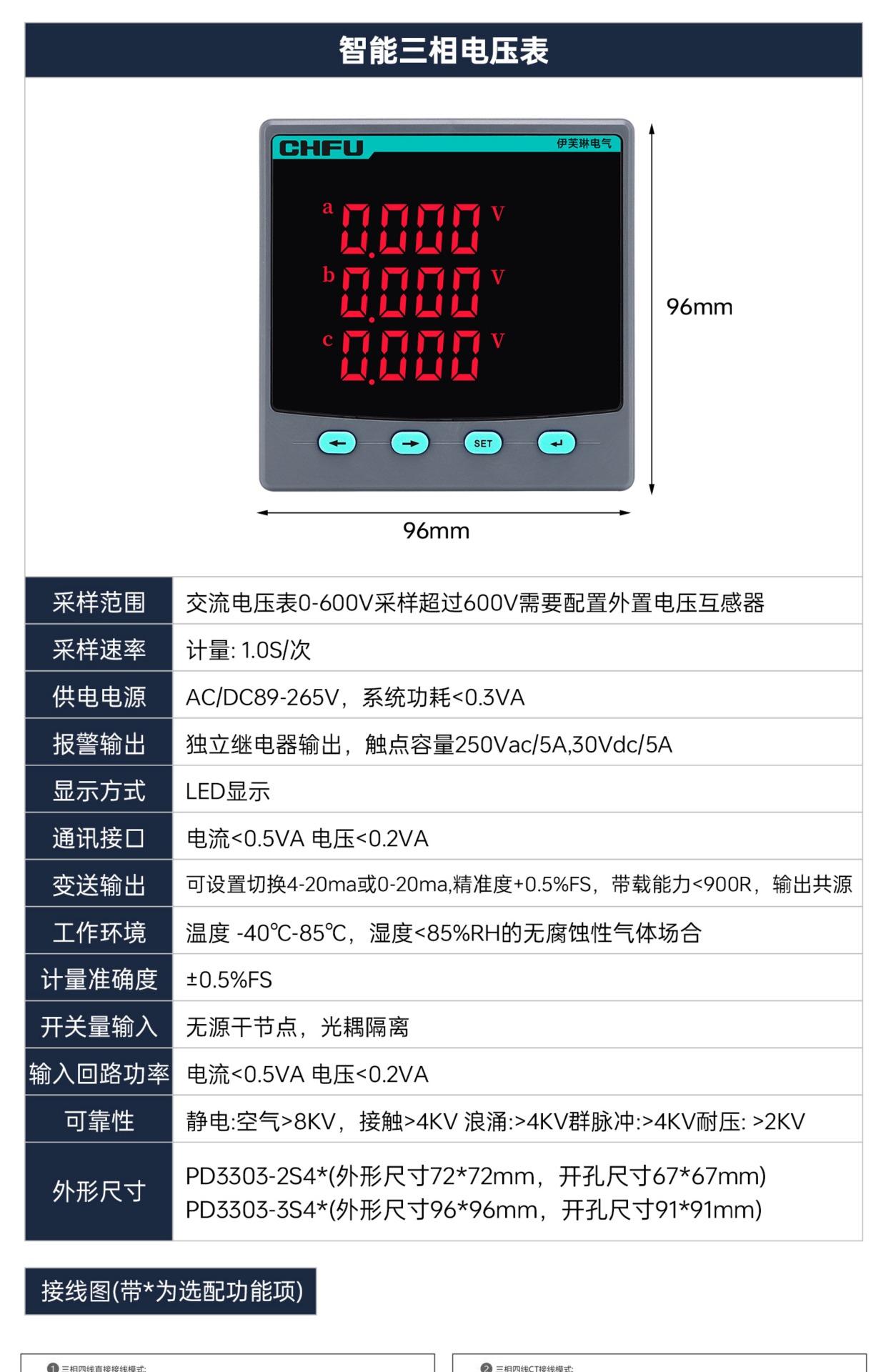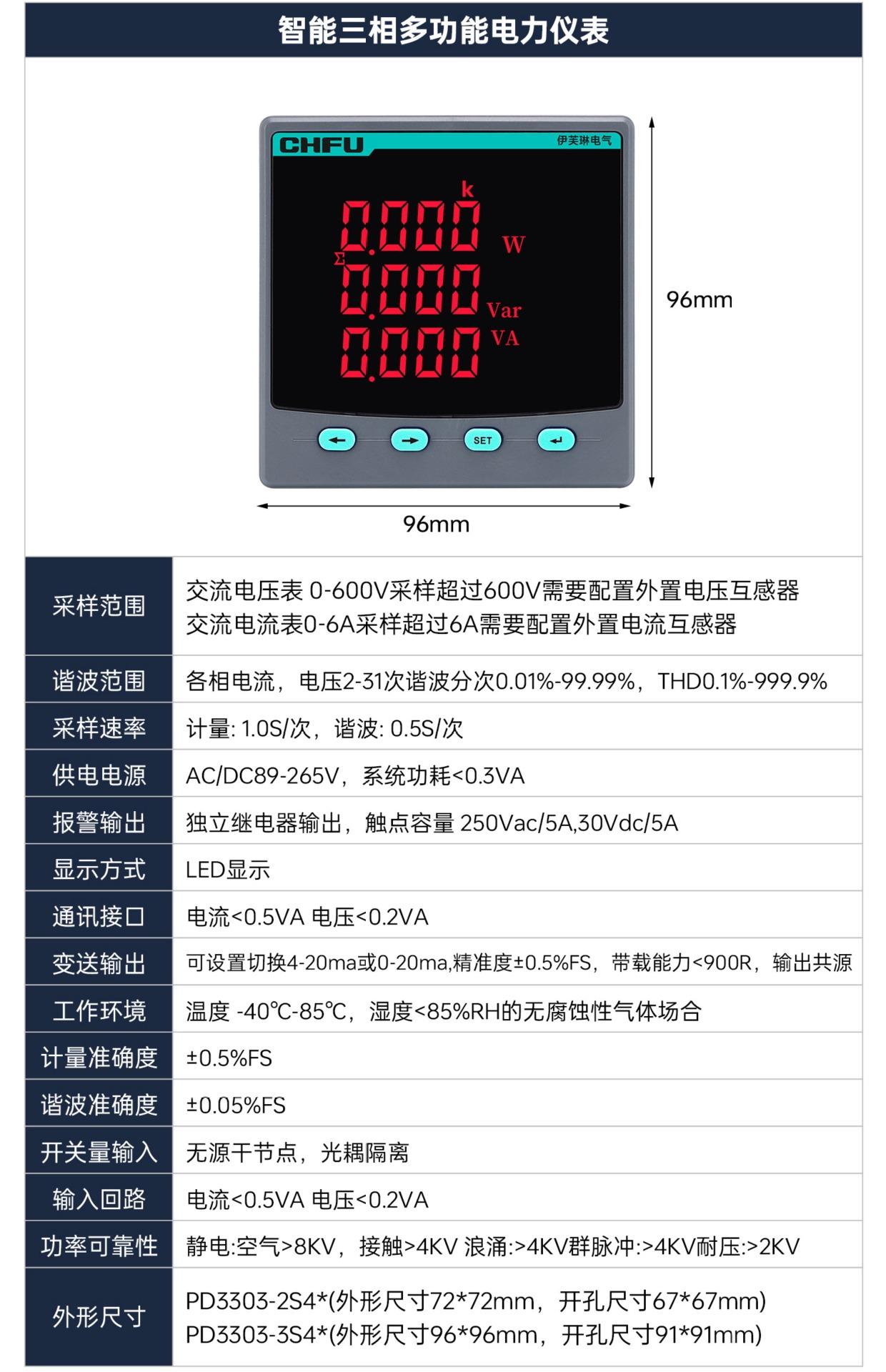 Three-phase digital display multifunction meter Panel 72*72/Opening 67*67, Three-phase digital display multif...