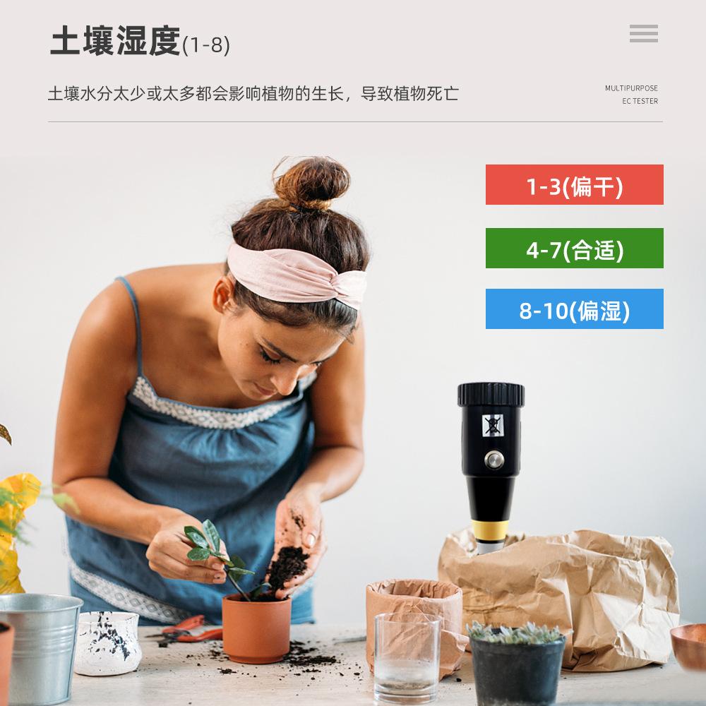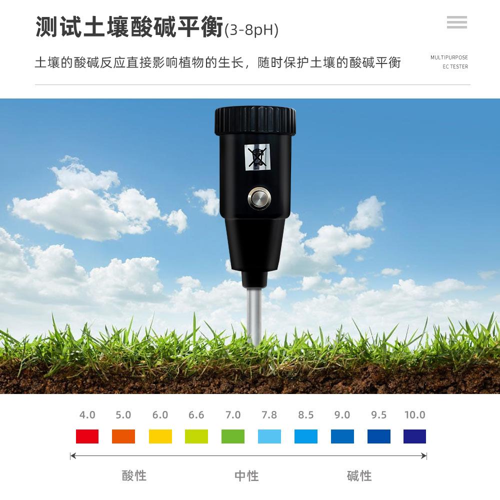 influencia. Se recomienda medir la humedad del suelo dentro del rango de 30%-60%, y el valor de pH es más preciso.
