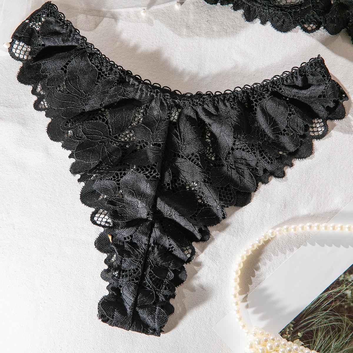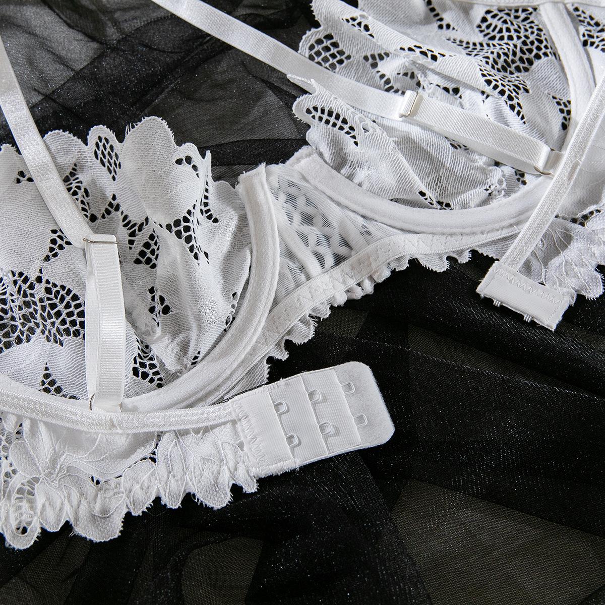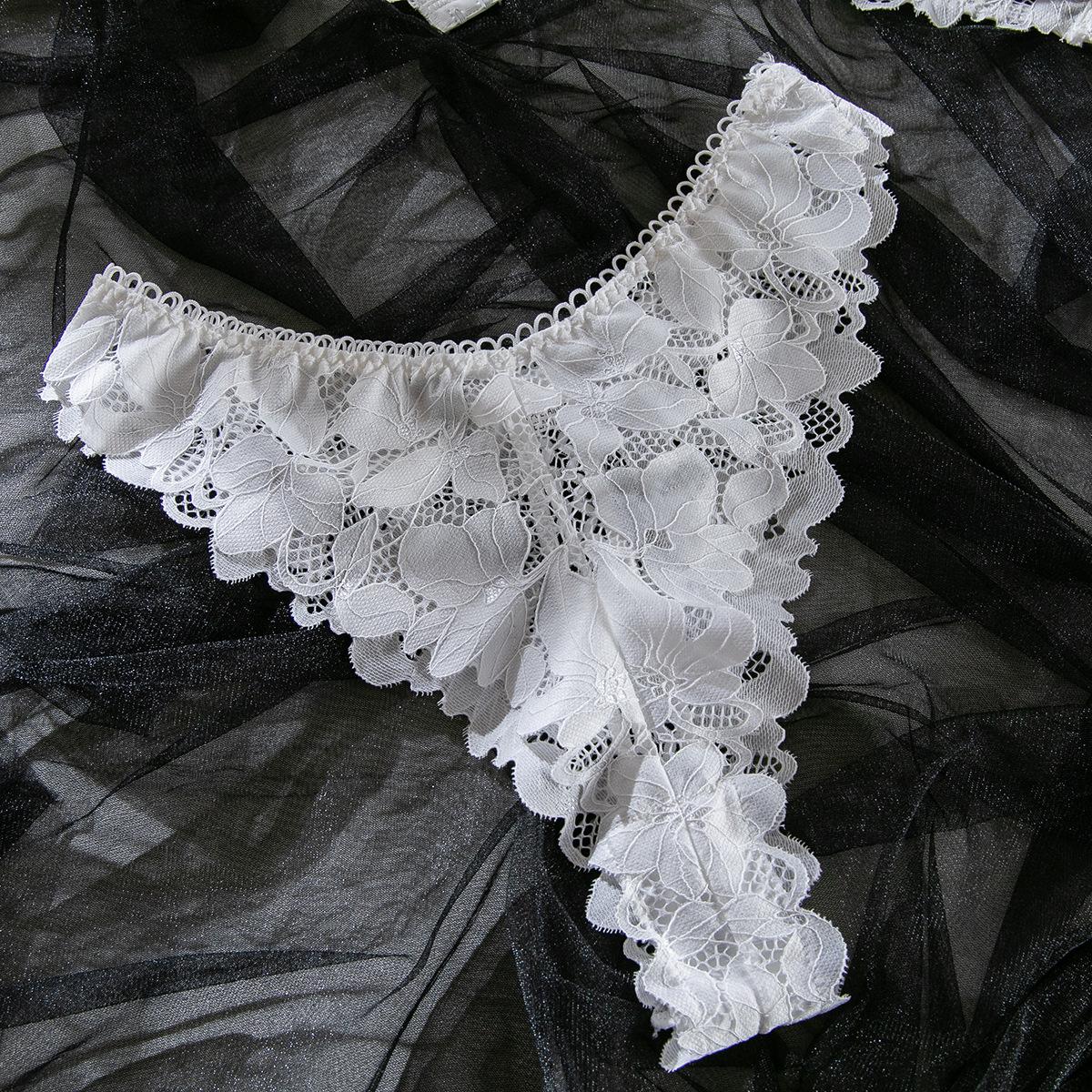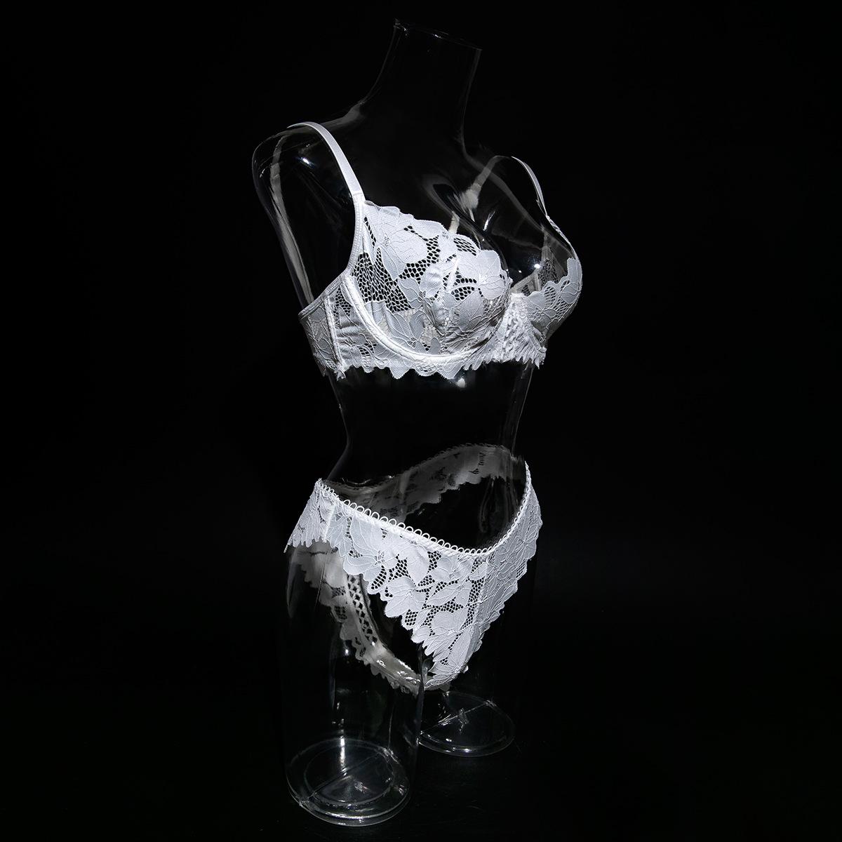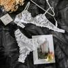 Nuevo Encaje Blanco Francés Hermoso Floral Hueco Push-Up con Varilla Calzones Femenino Traje de Dos Piezas