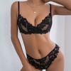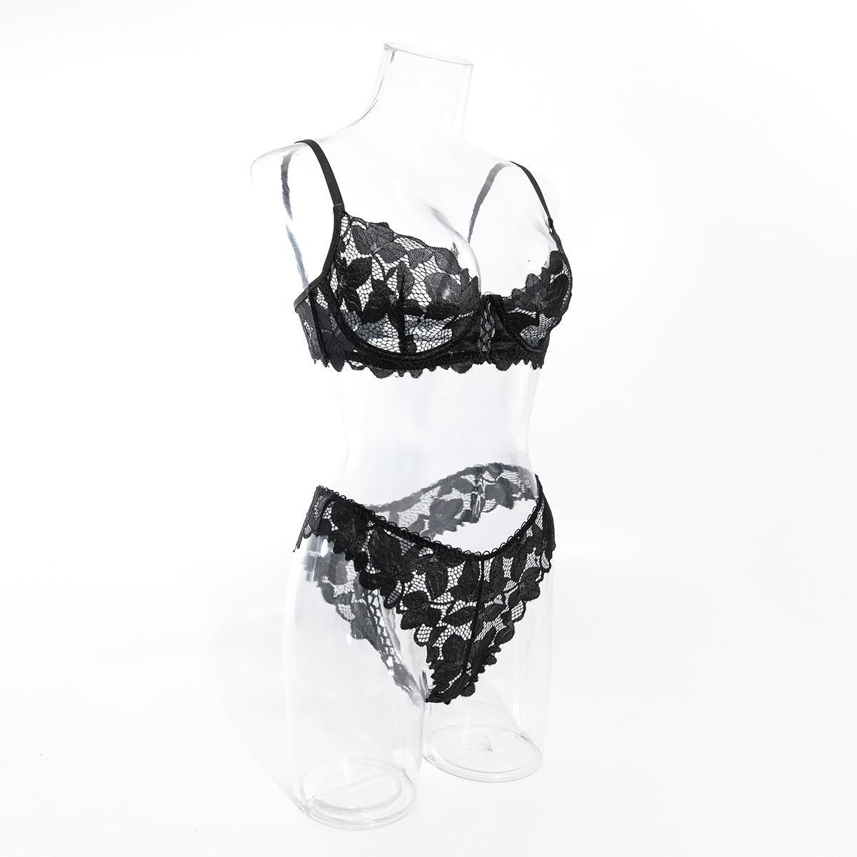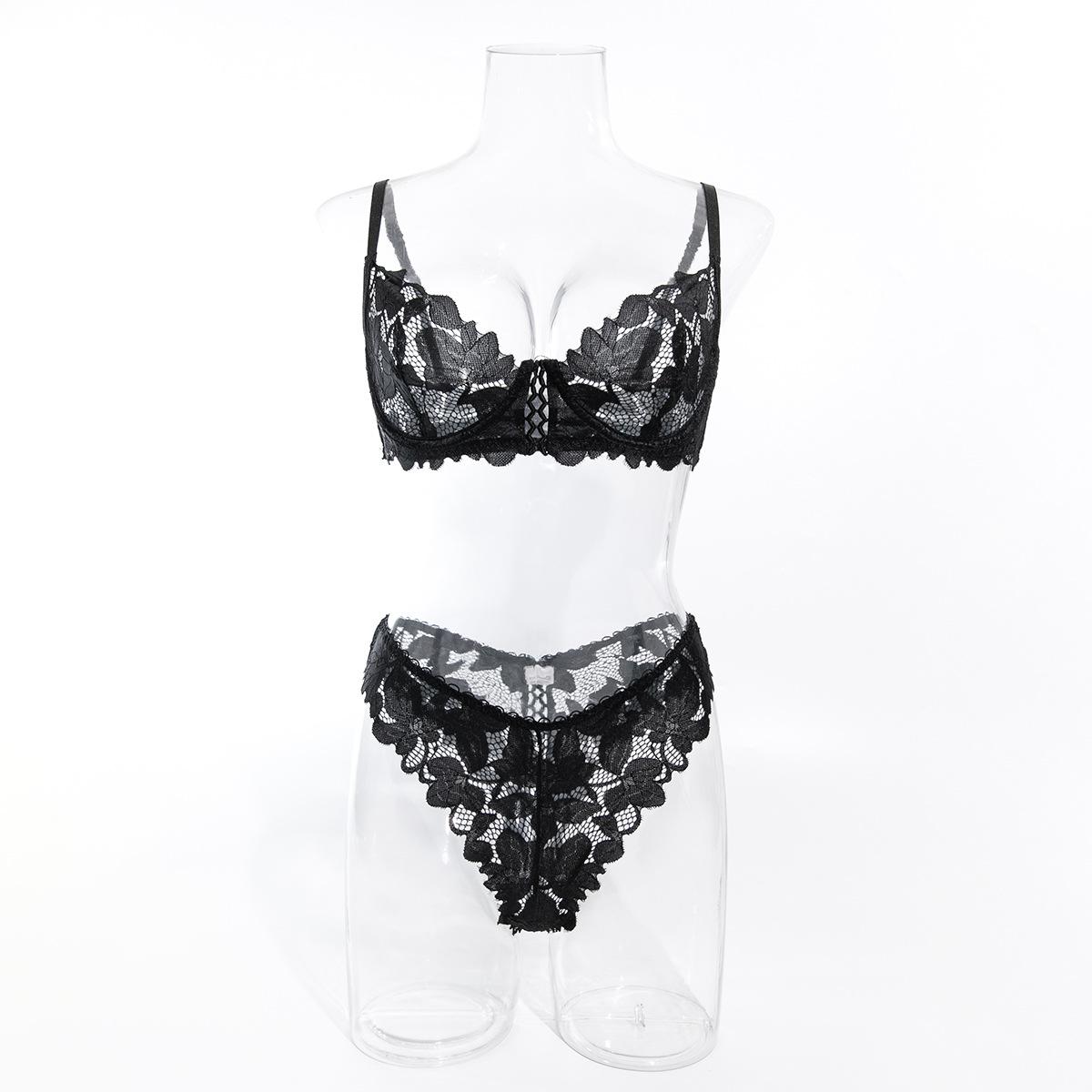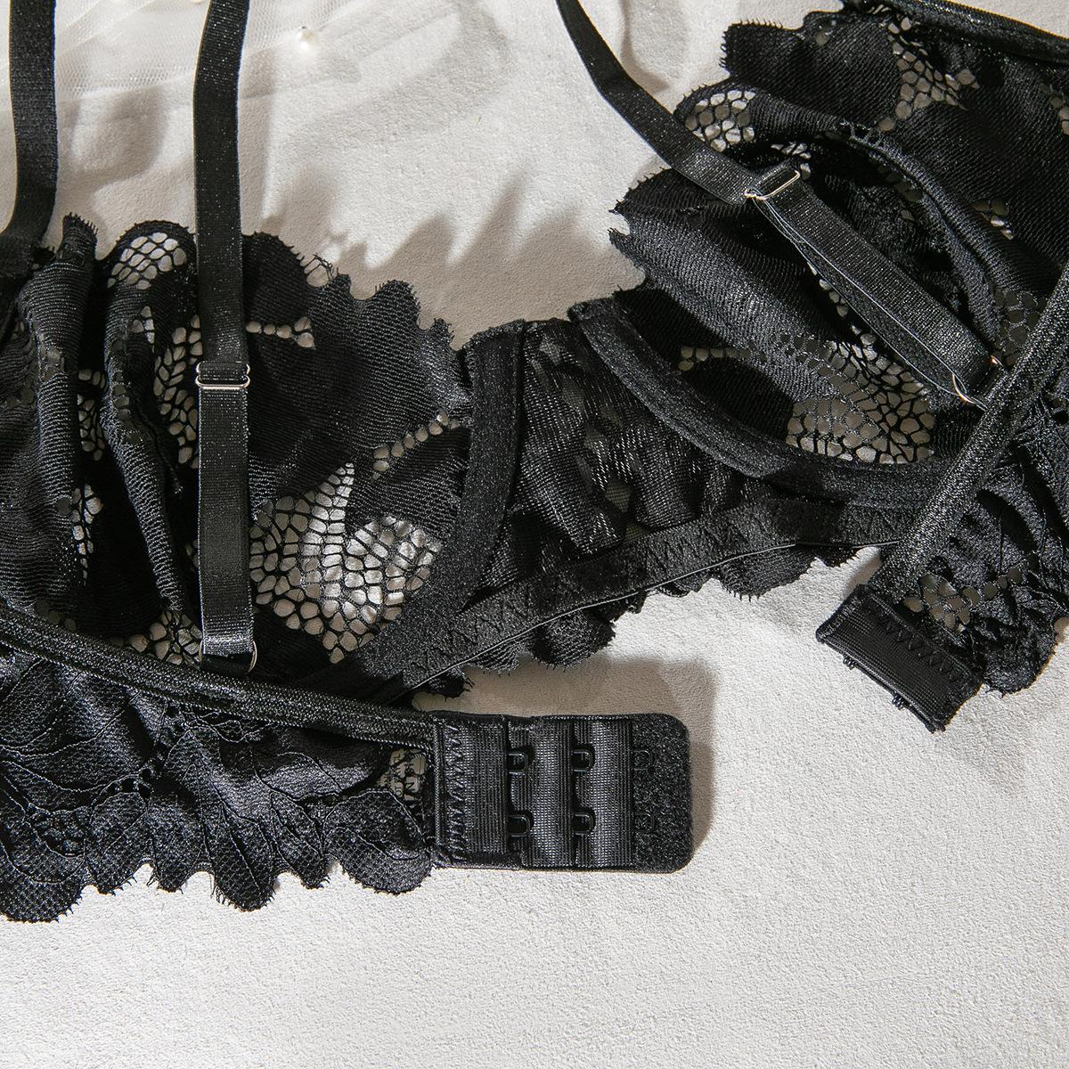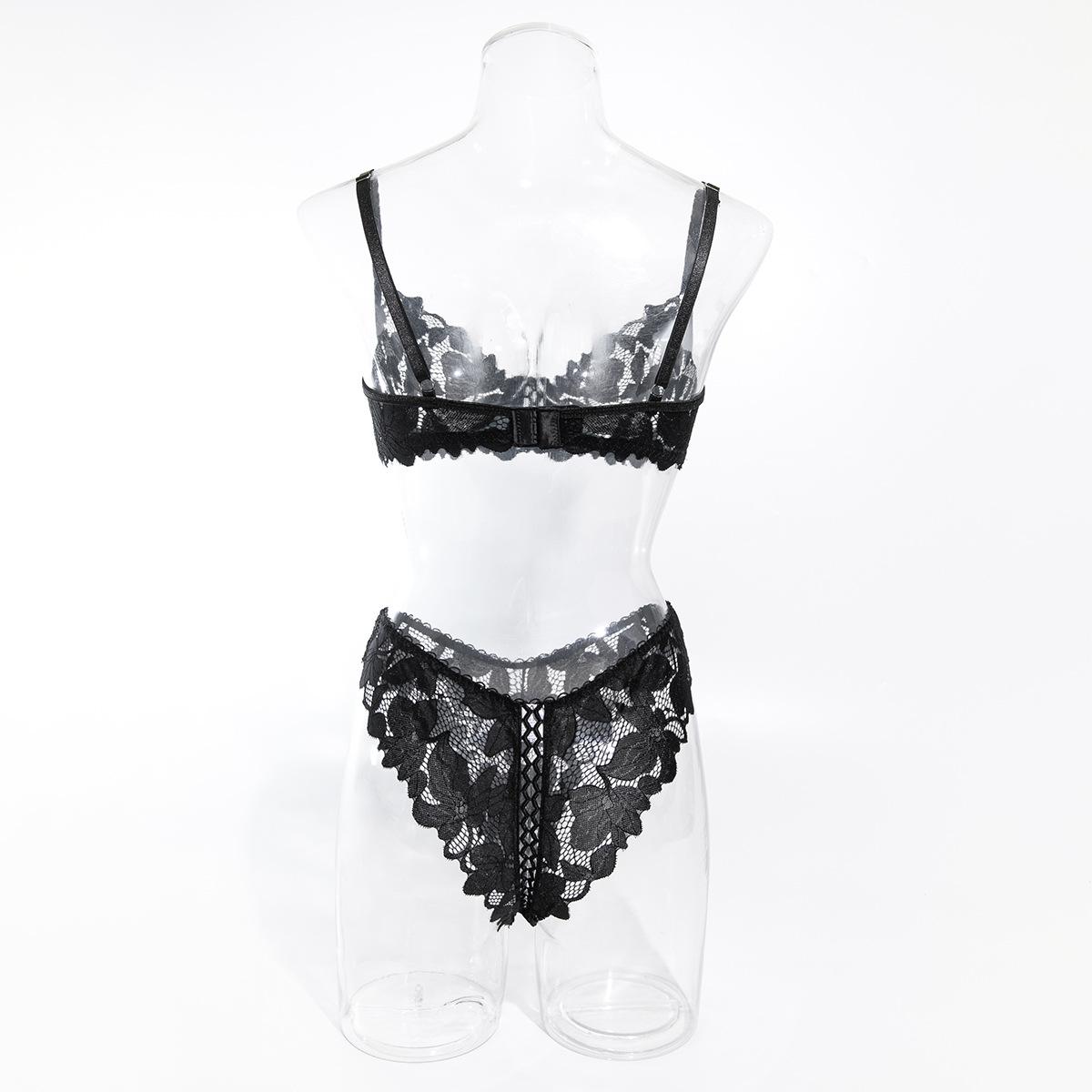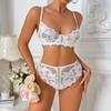 Nuevo Encaje Blanco Francés Hermoso Floral Hueco Push-Up con Varilla Calzones Femenino Traje de Dos Piezas