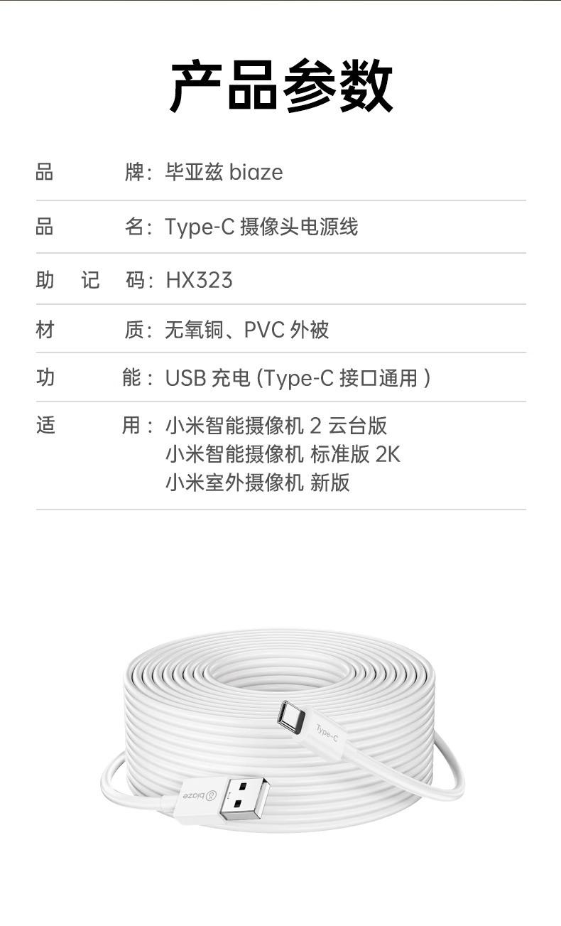Cable de datos USB a tipo C Biaz cable de carga cable de alimentación de monitoreo USB-C 5m 10m 20m