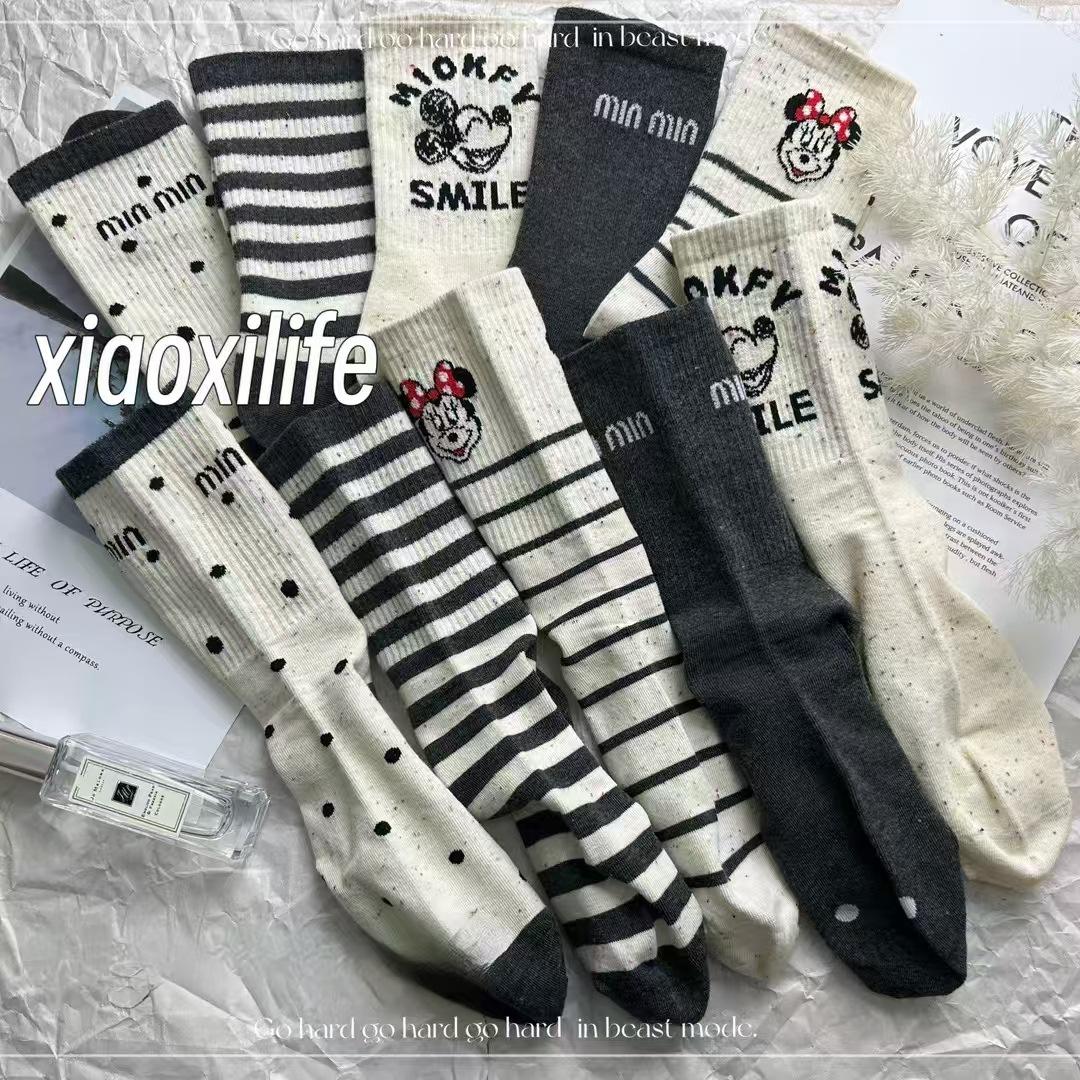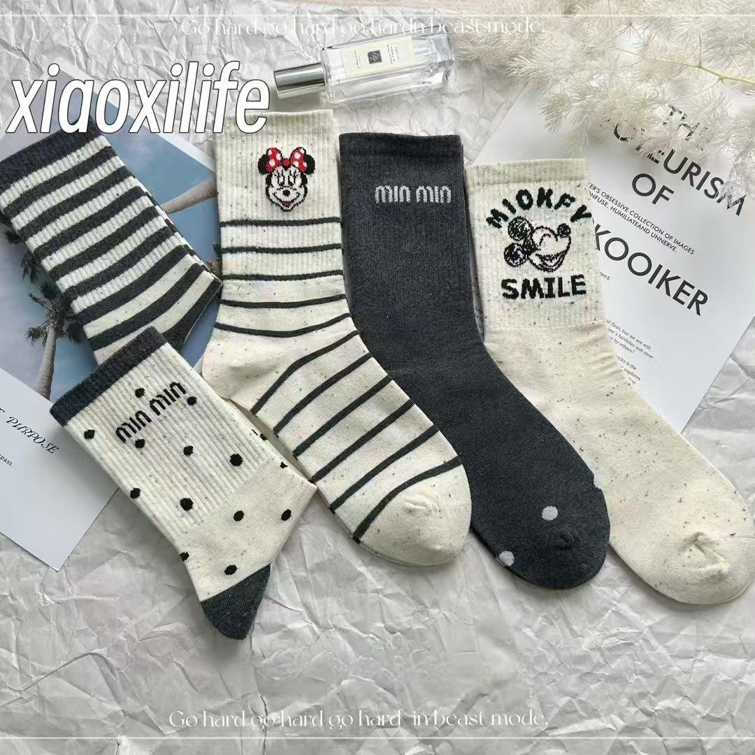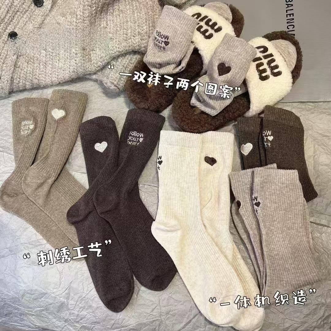 Calcetines Bordados AB Love para Niños de Tubo Medio Ins Nuevo Otoño e Invierno con Letras de Hilo de Algodón Calcetines Elegantes que Combinan con Todo