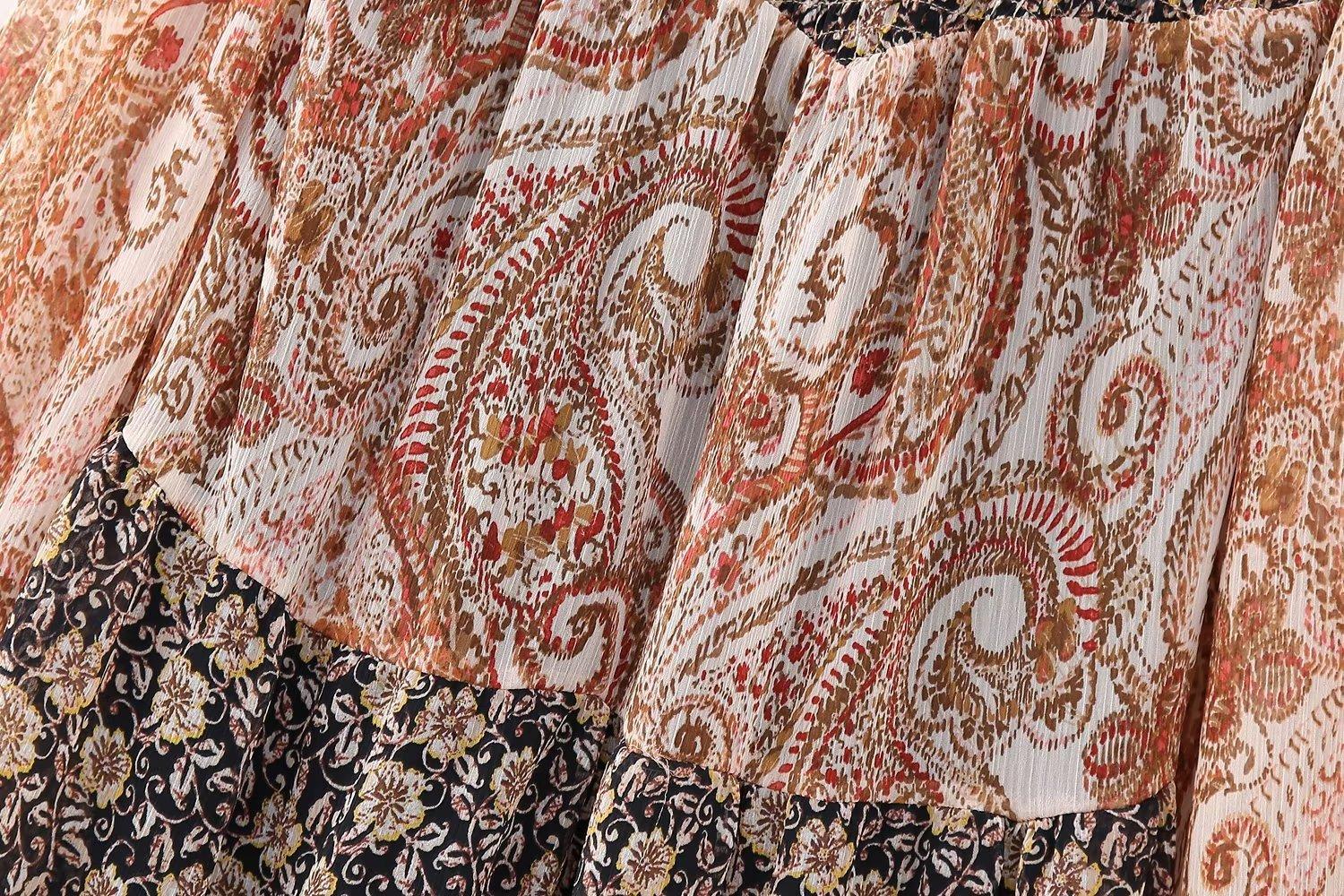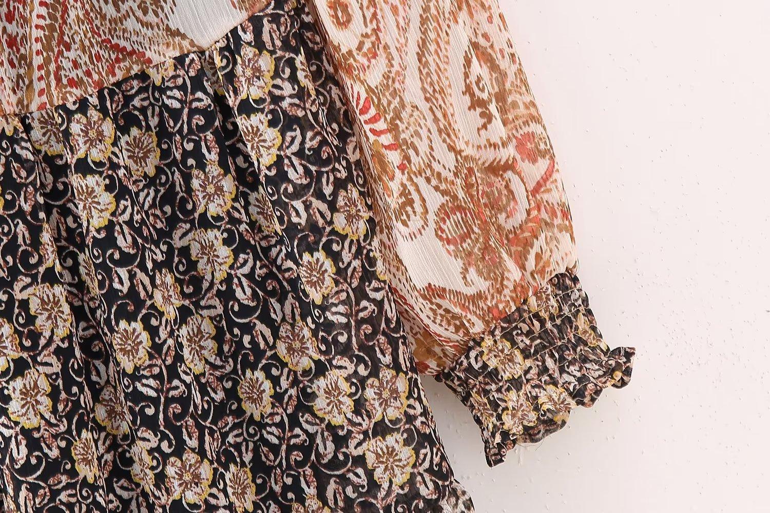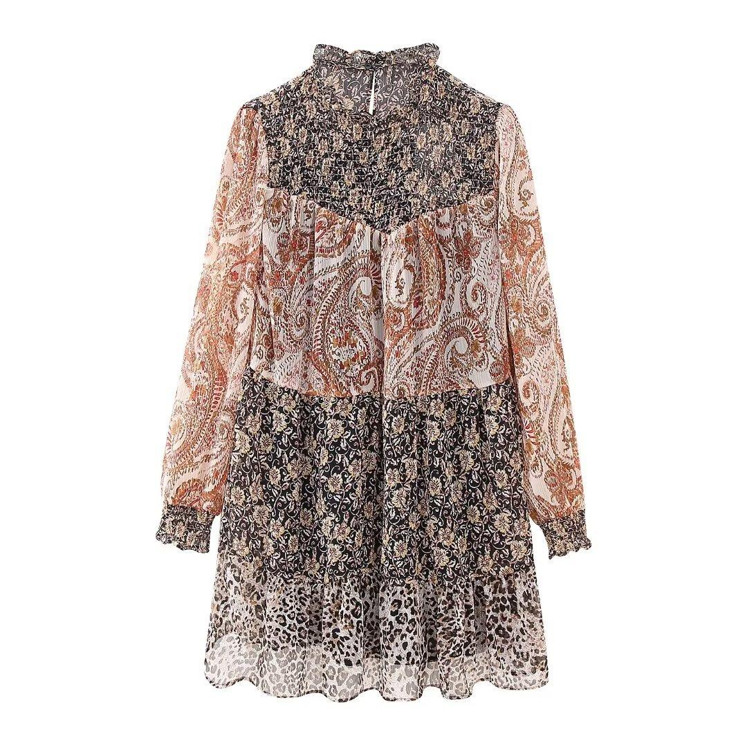 Venta al por mayor 2023 otoño nuevo estilo europeo y americano para mujer manga larga costuras estampado vestido corto tipo camisa
