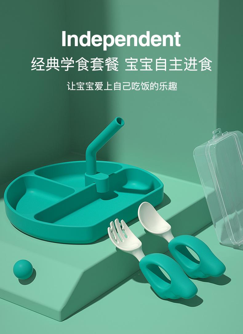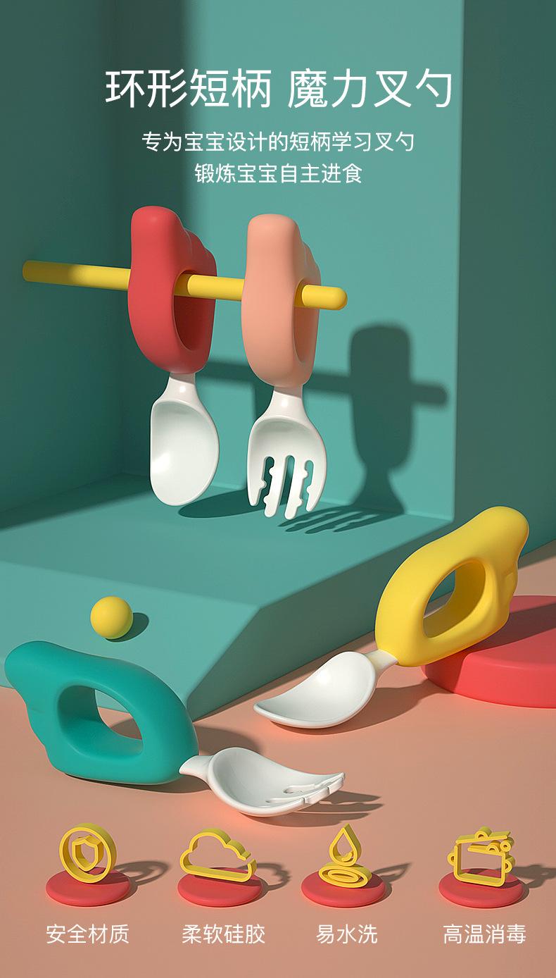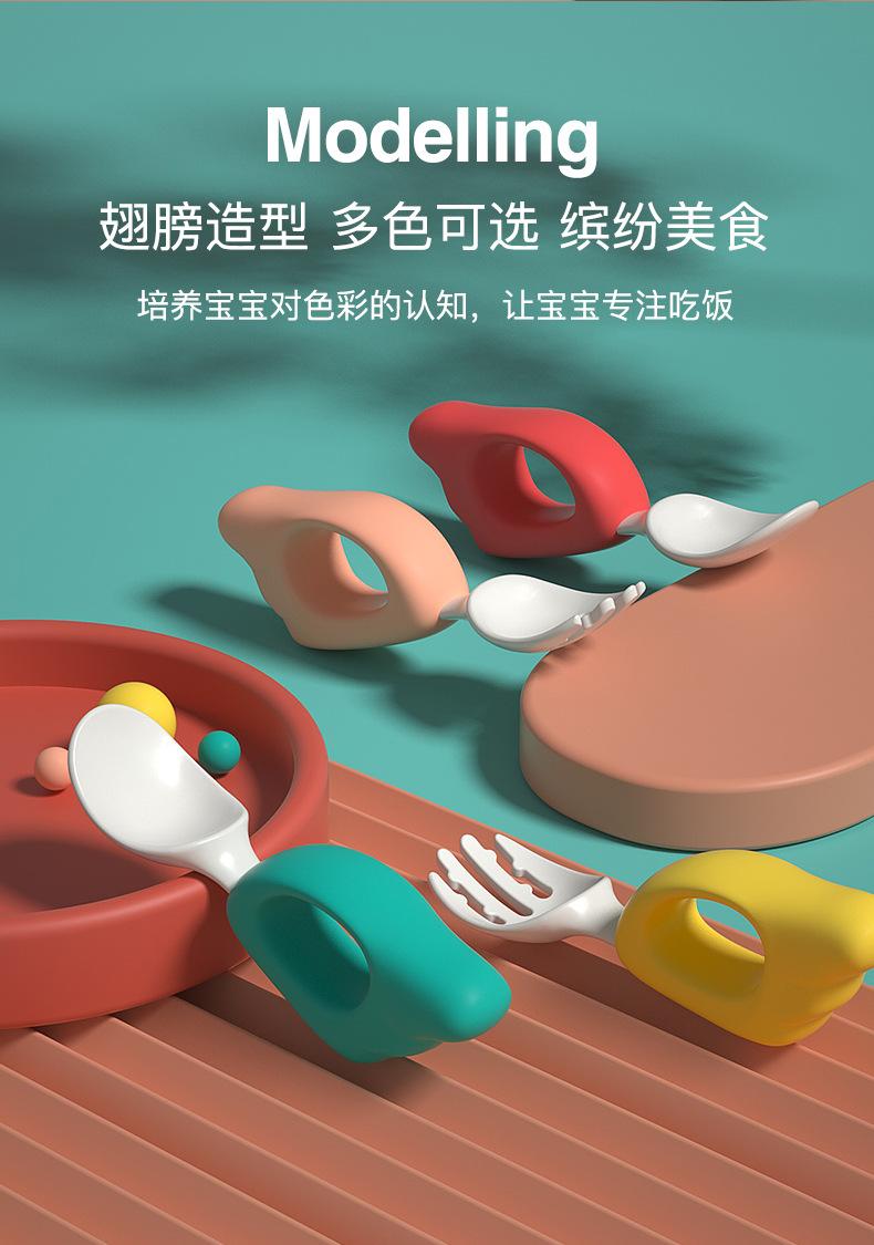 Una generación de cuchara tenedor para bebé aprendiendo a comer entrenamiento para comer independientemente traje de bebé para comer vajilla complementaria