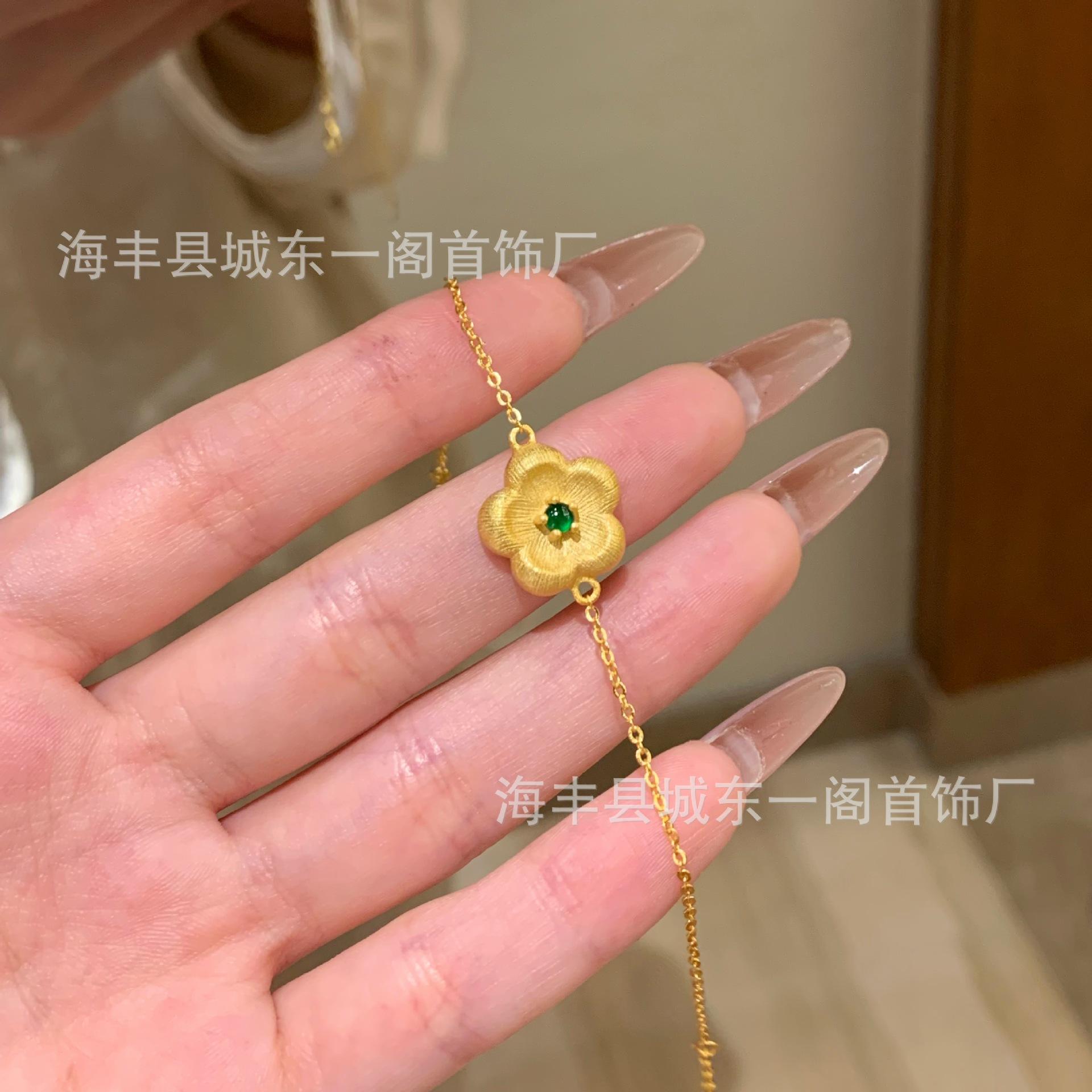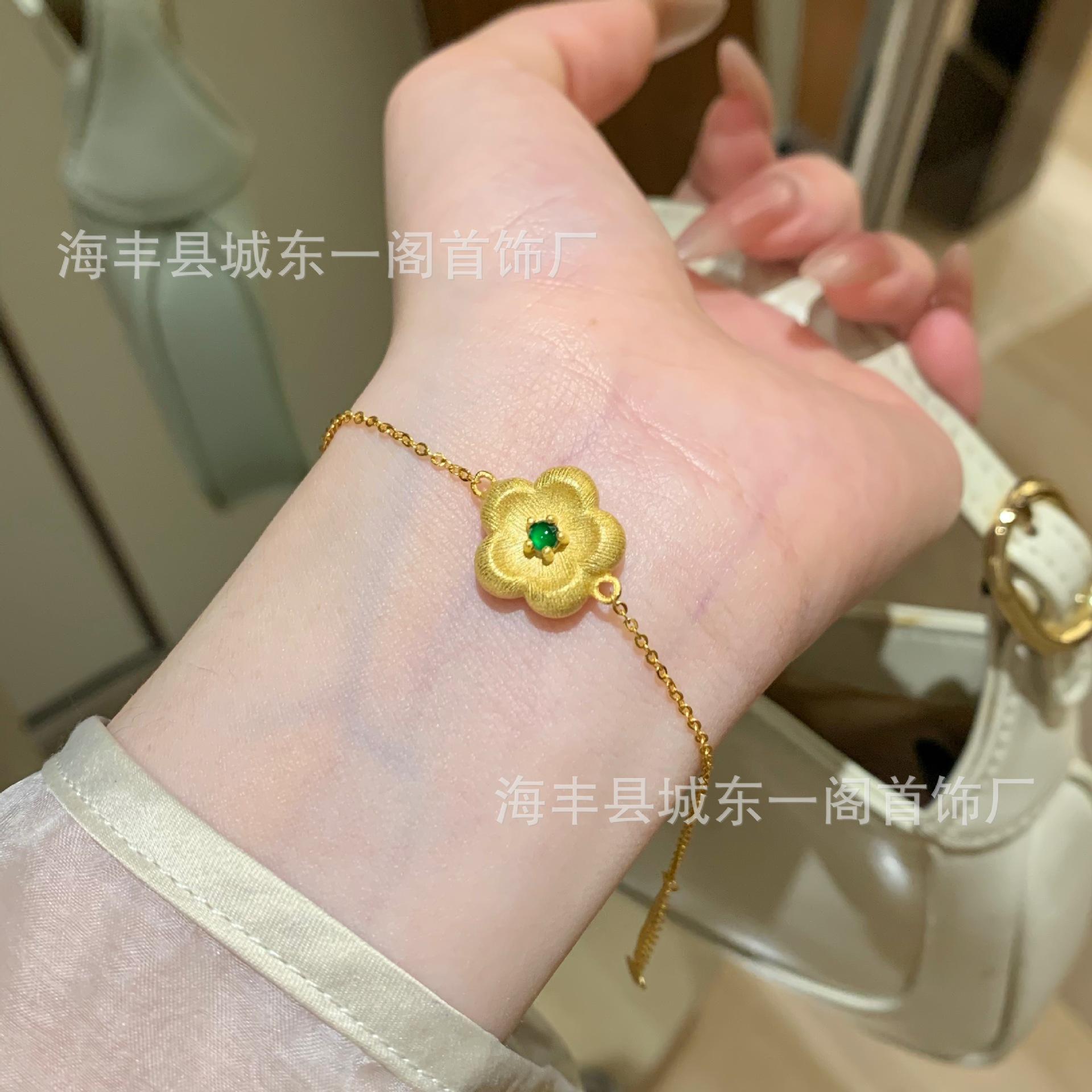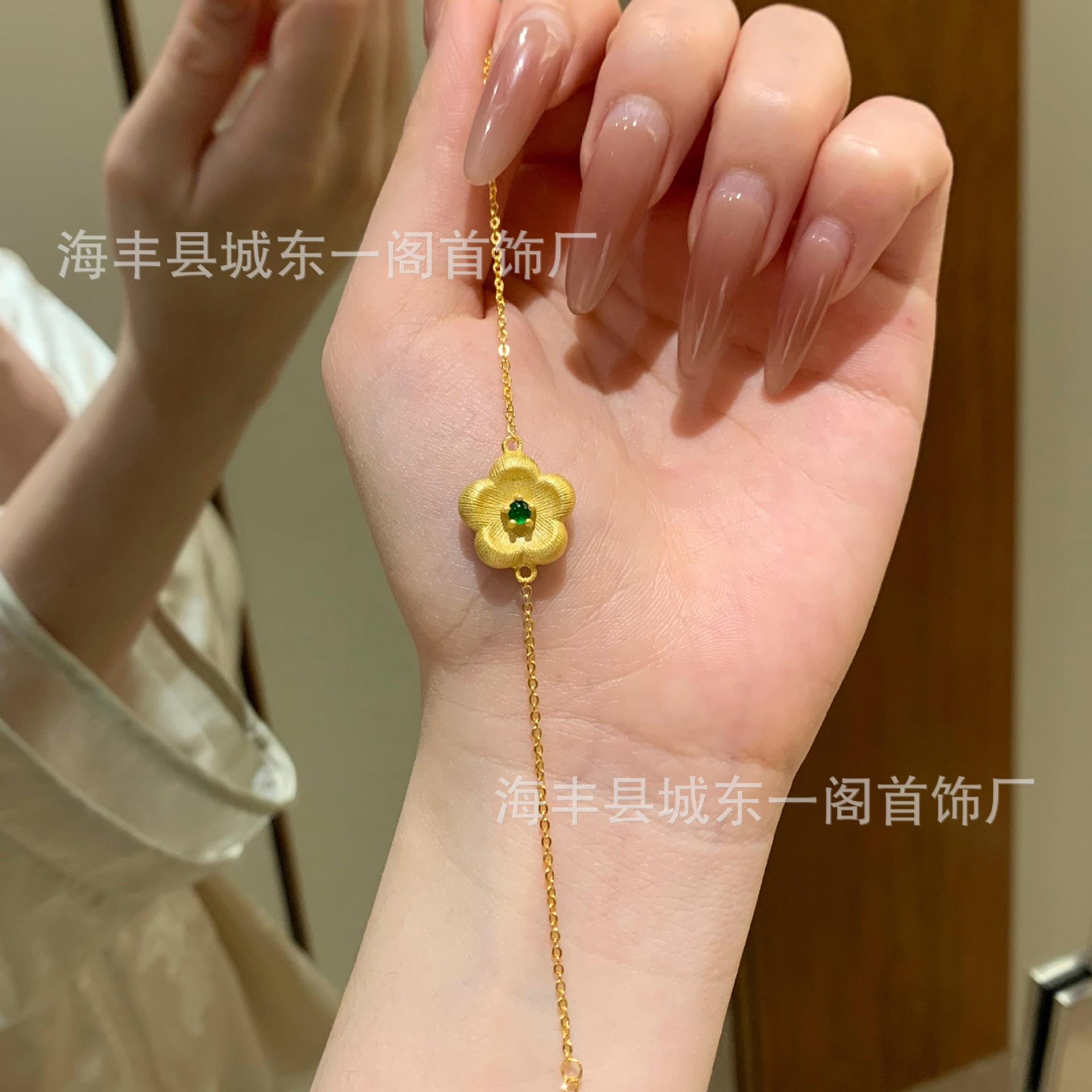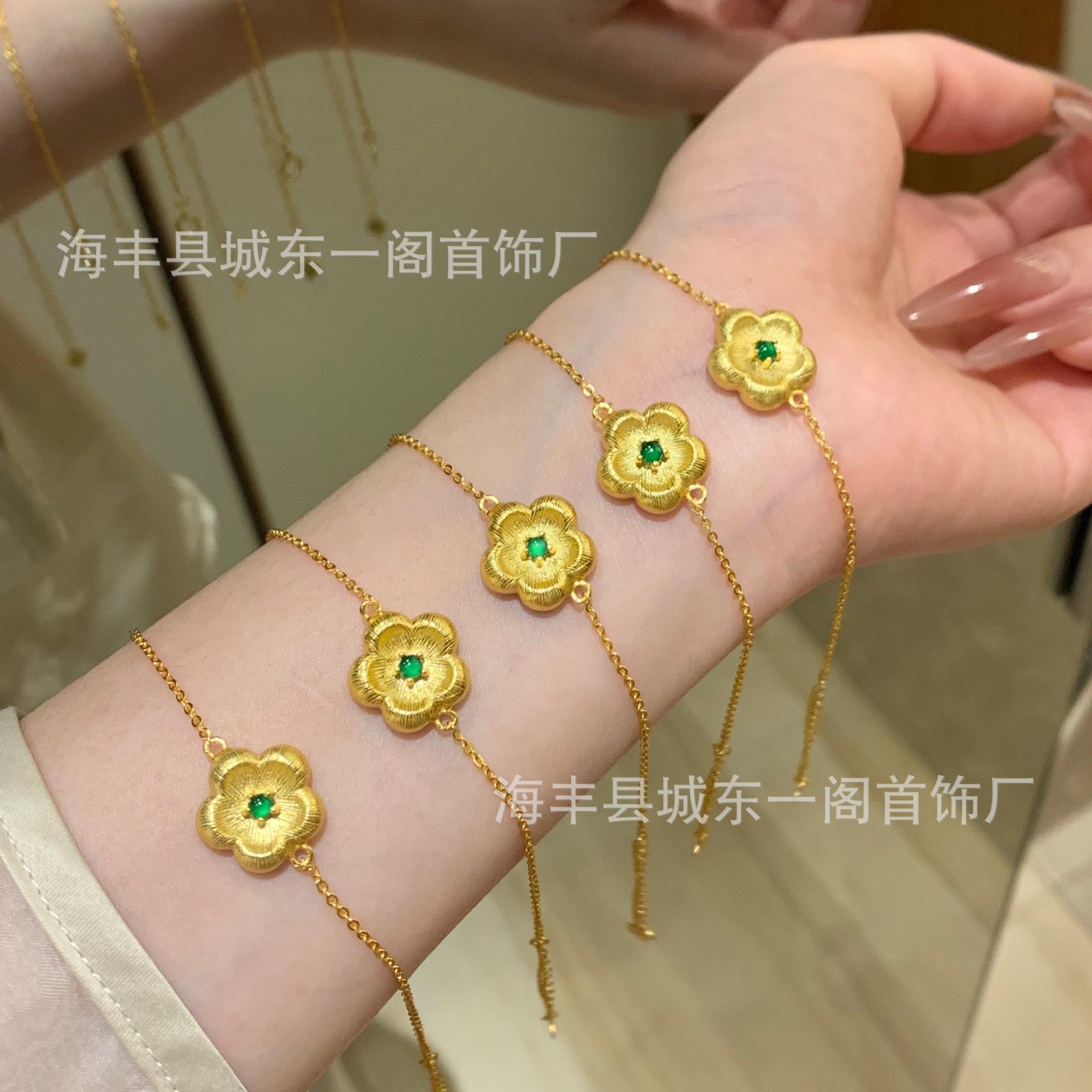 Venta al por mayor de fábrica material peligroso collar de flor de jade verde Yang proceso de dibujo plata S925 incrustada pequeño departamento rojo con pulsera