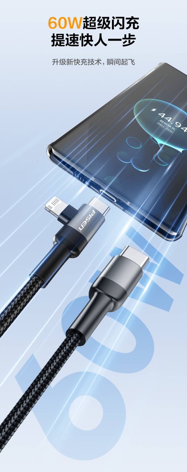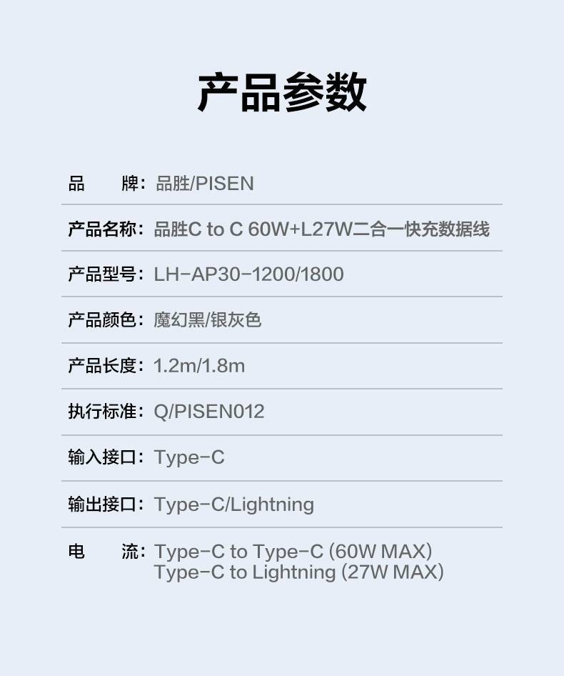 C to c 60w+l27w two-in-one fast charging data cable 1.2m (lh-ap30 magic black), C to c 60w+l27w two-in-one fas...