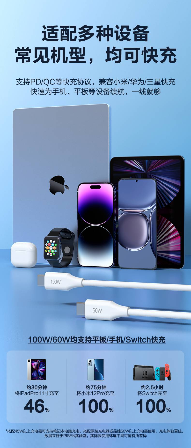 60W double head type-c data line White (1 m), 60W double head type-c data line White (2 m), 100W double head t...