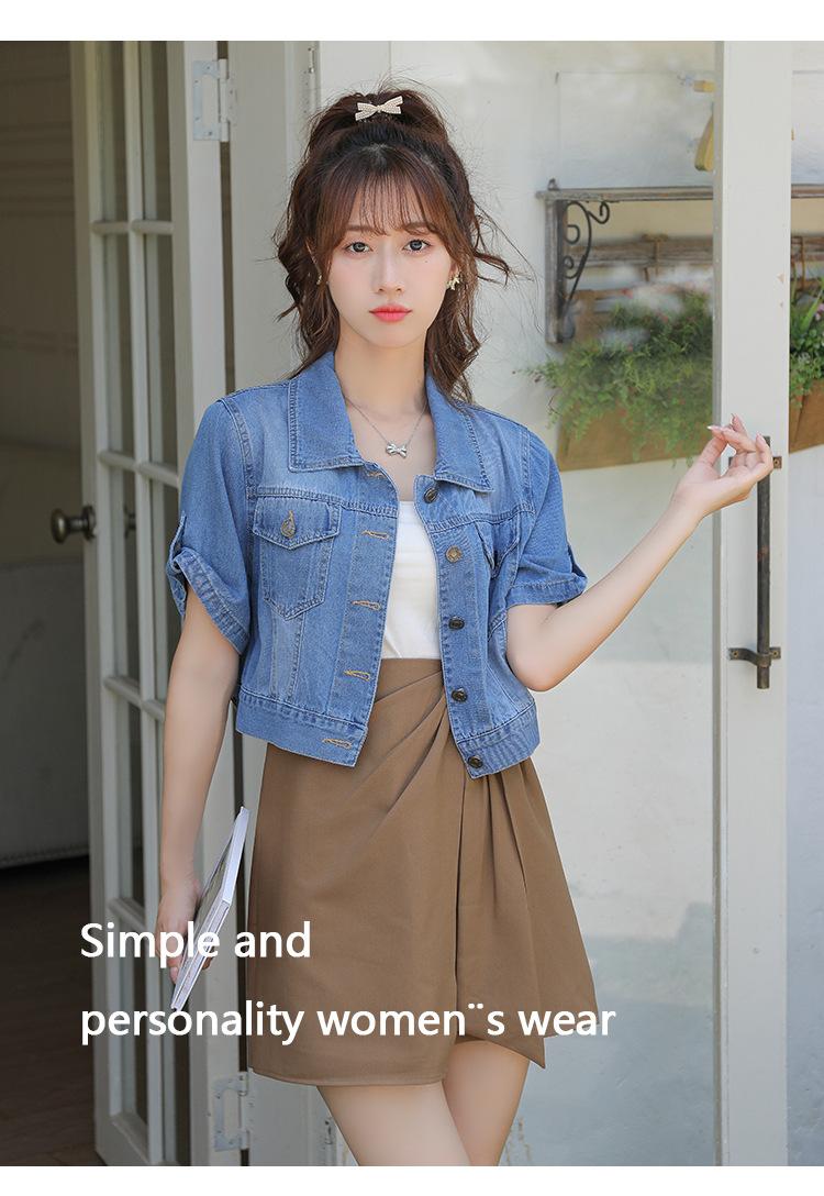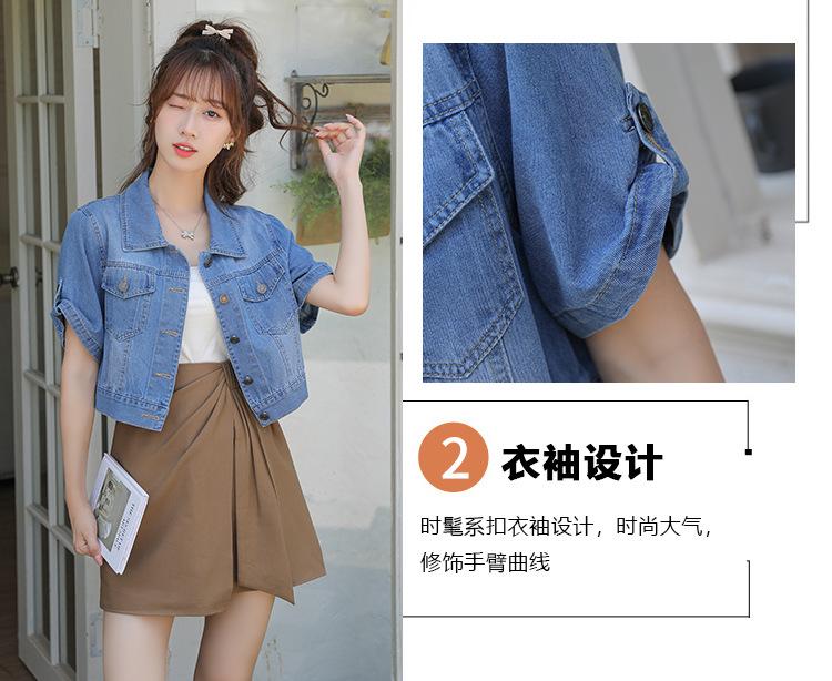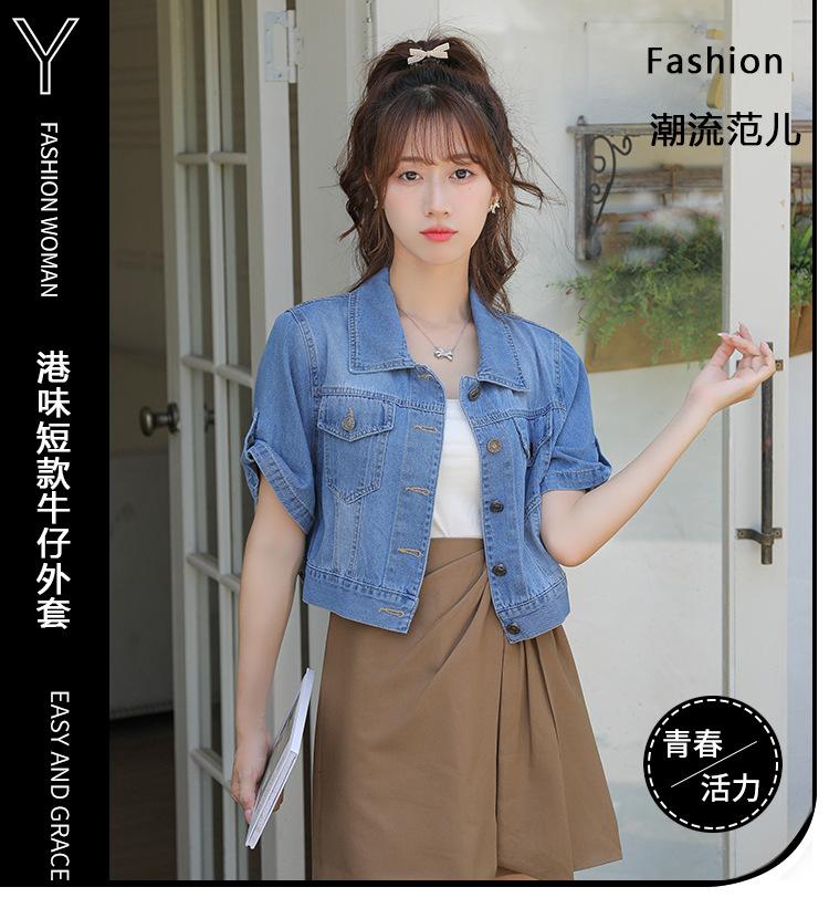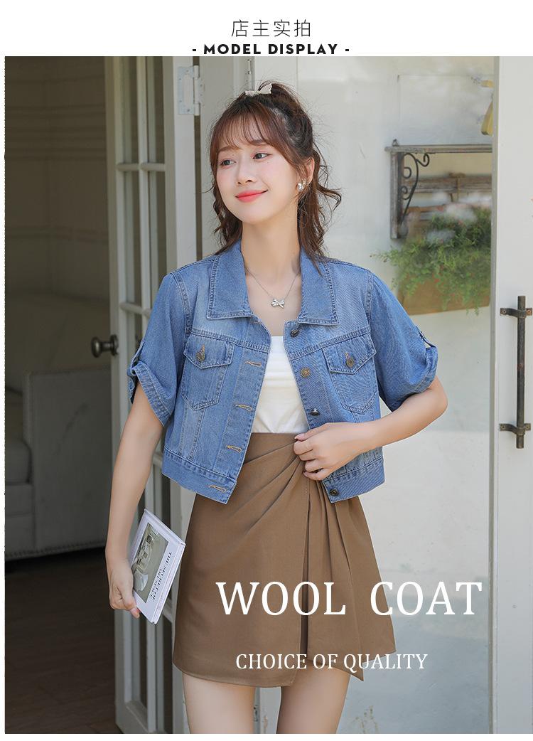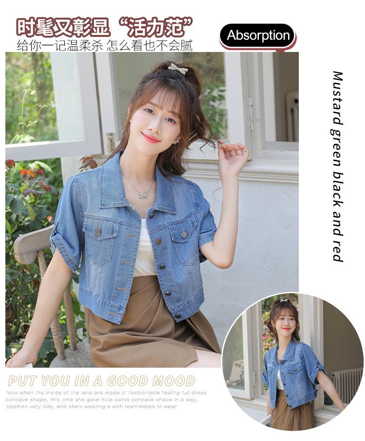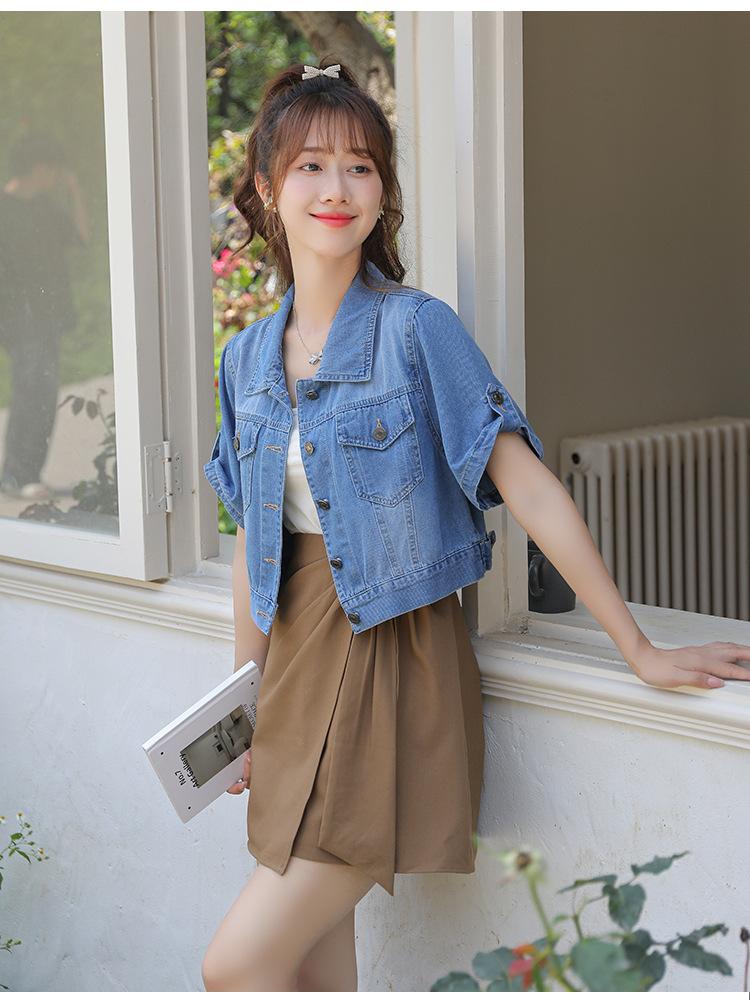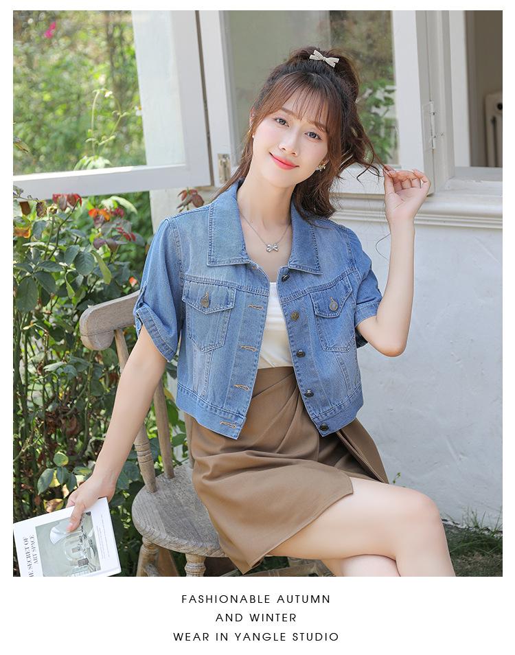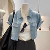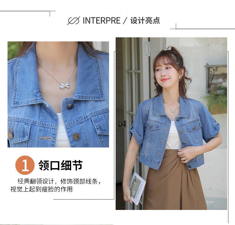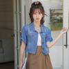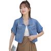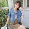 Chaqueta de mezclilla delgada de primavera/verano para mujer, corta, azul, de manga corta, adelgazante, tipo cárdigan pequeño, ropa exterior, algodón europeo y americano