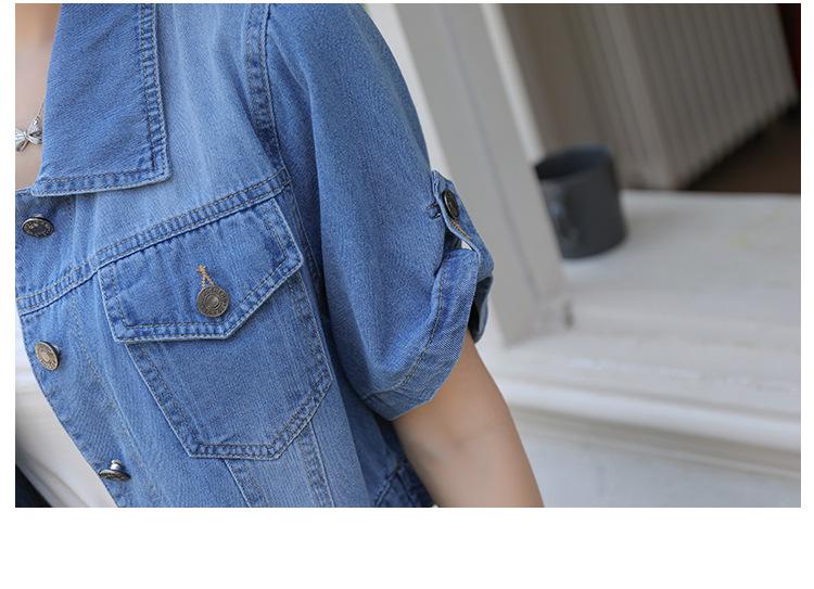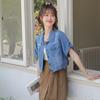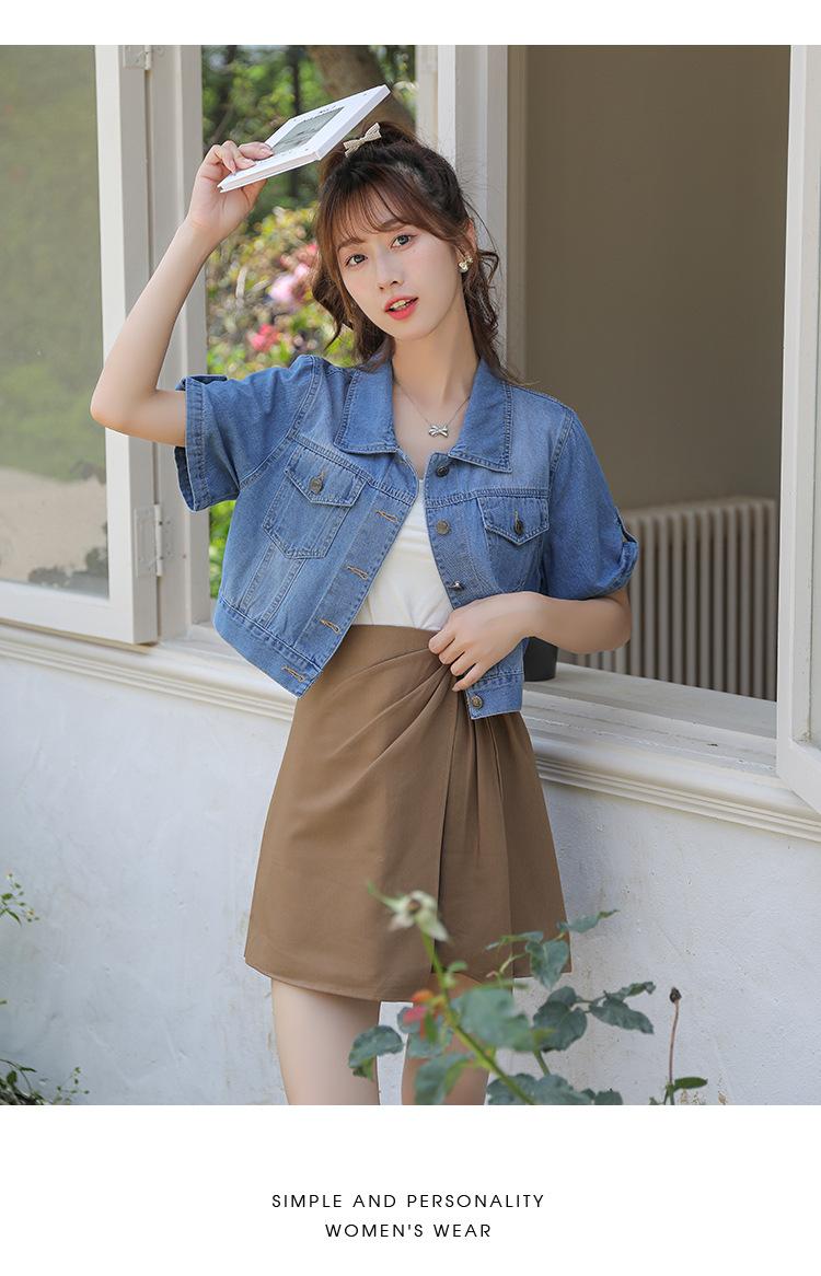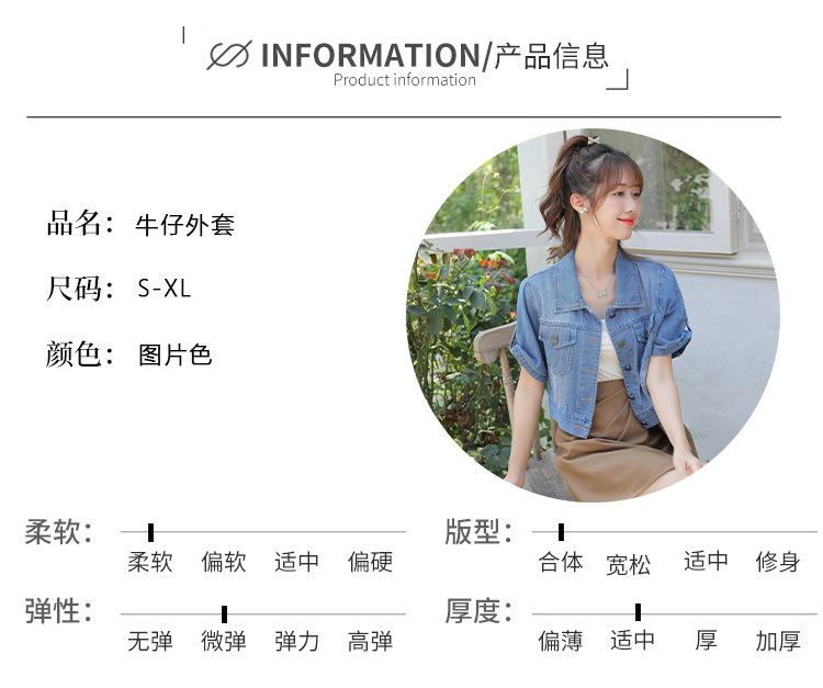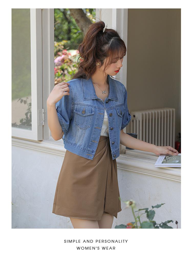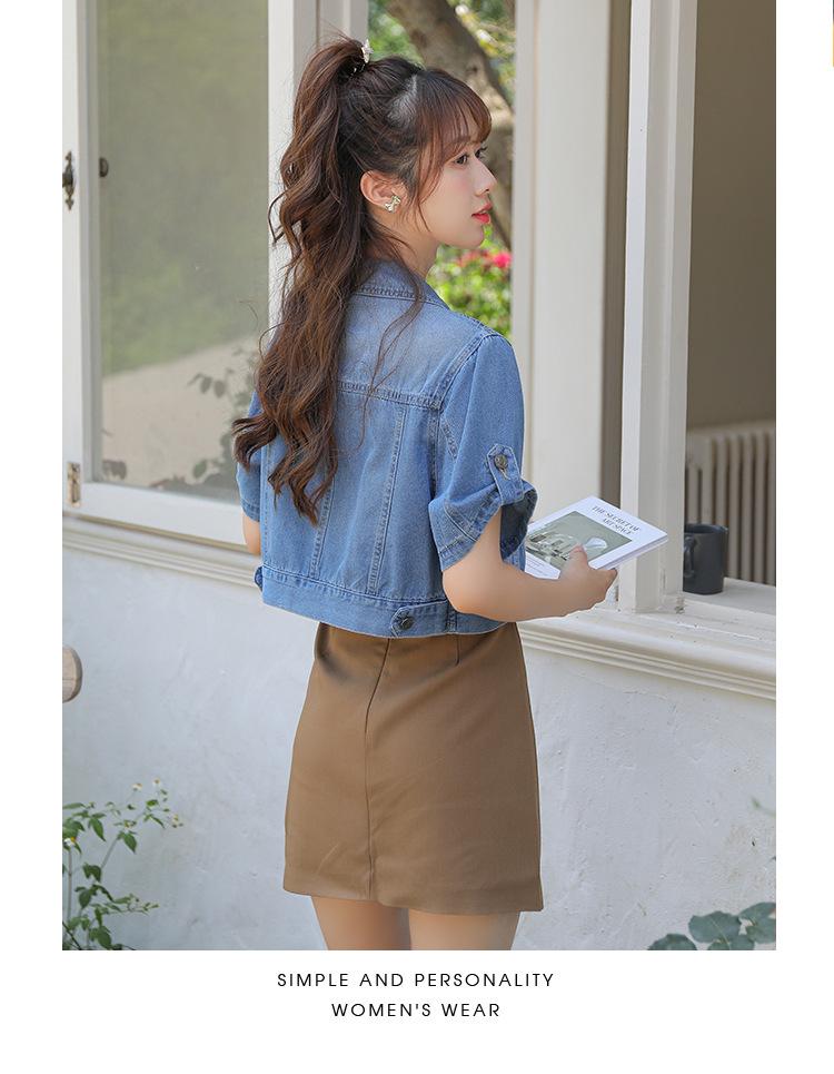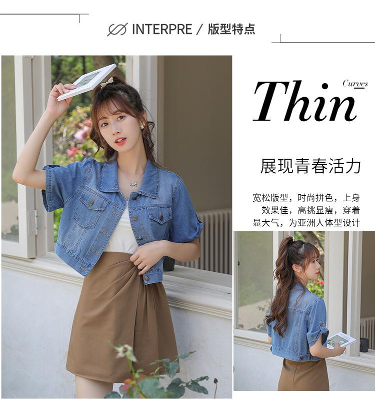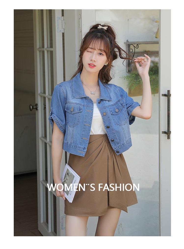 Chaqueta de mezclilla delgada de primavera/verano para mujer, corta, azul, de manga corta, adelgazante, tipo cárdigan pequeño, ropa exterior, algodón europeo y americano