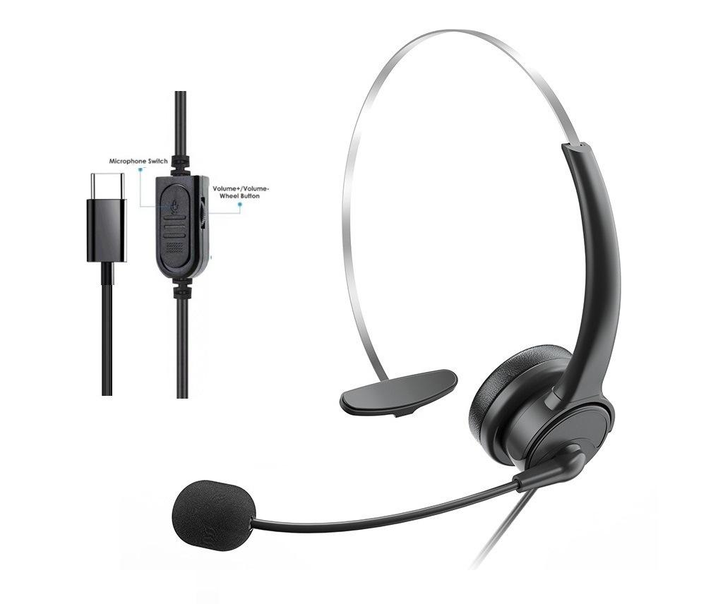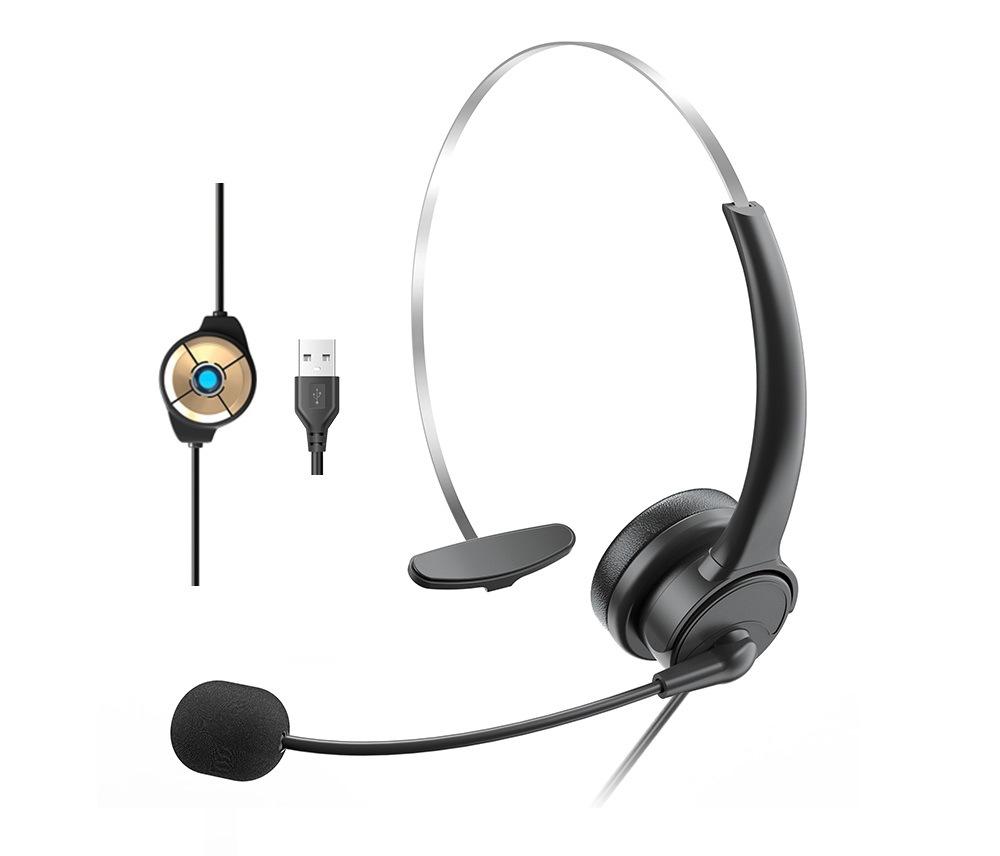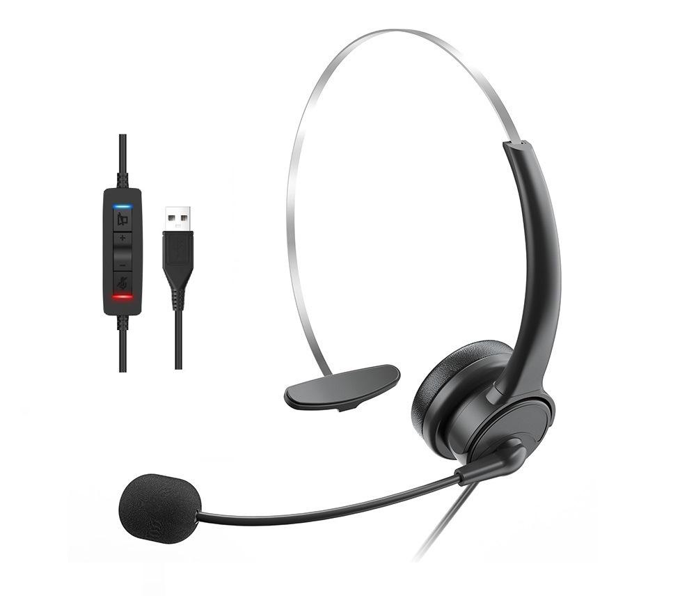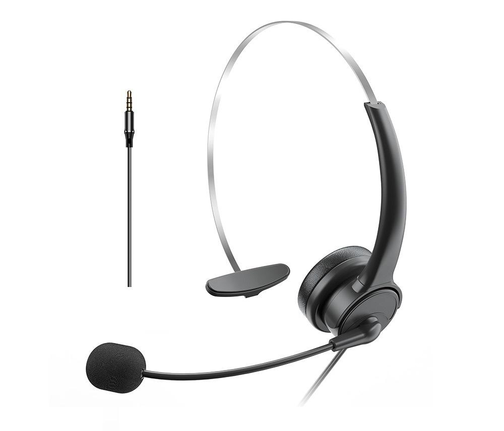Auricular de Tráfico de Servicio al Cliente de un Solo Oído Micrófono con Reducción de Ruido Auricular con Control de Audio de 3.5 Auricular en Línea para Computadora ENC