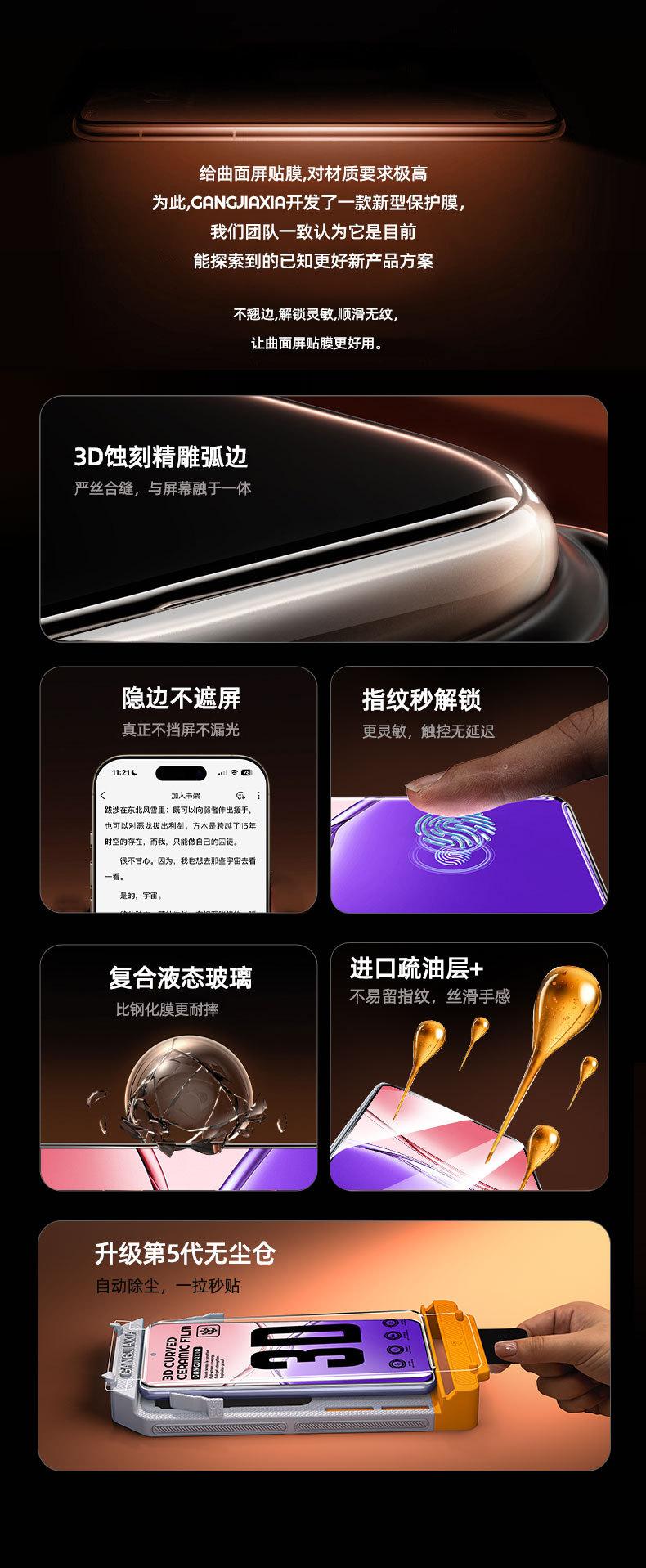 HD, Explosion proof, Anti-fingerprint, Anti-fall, full screen, Automatic repair, Second sticker box