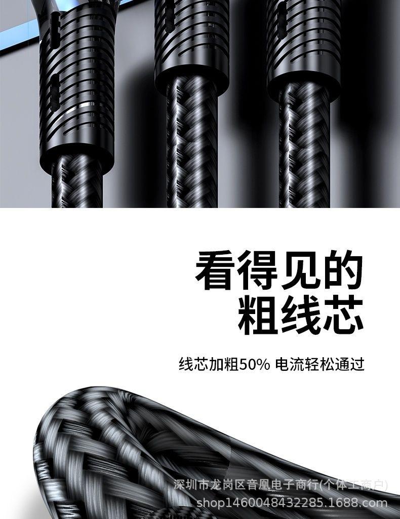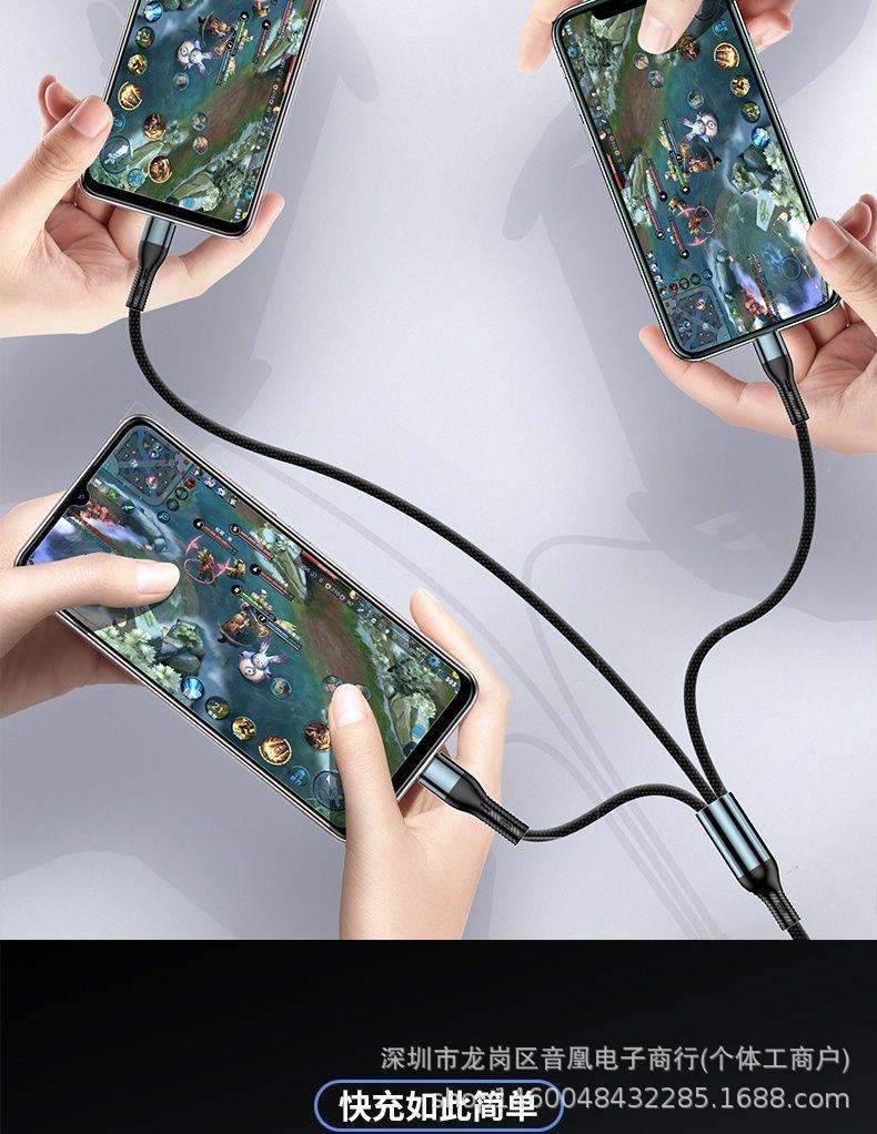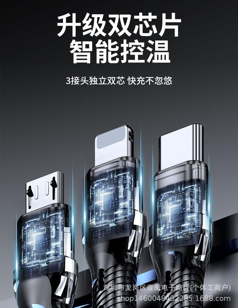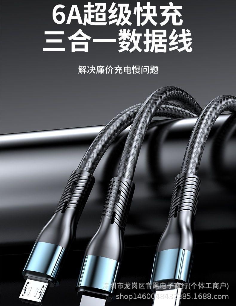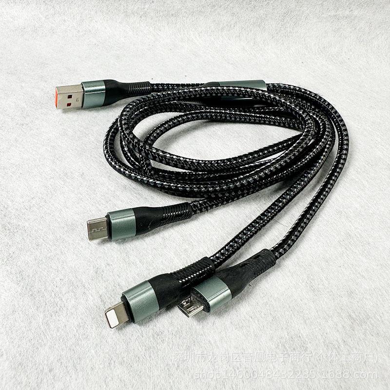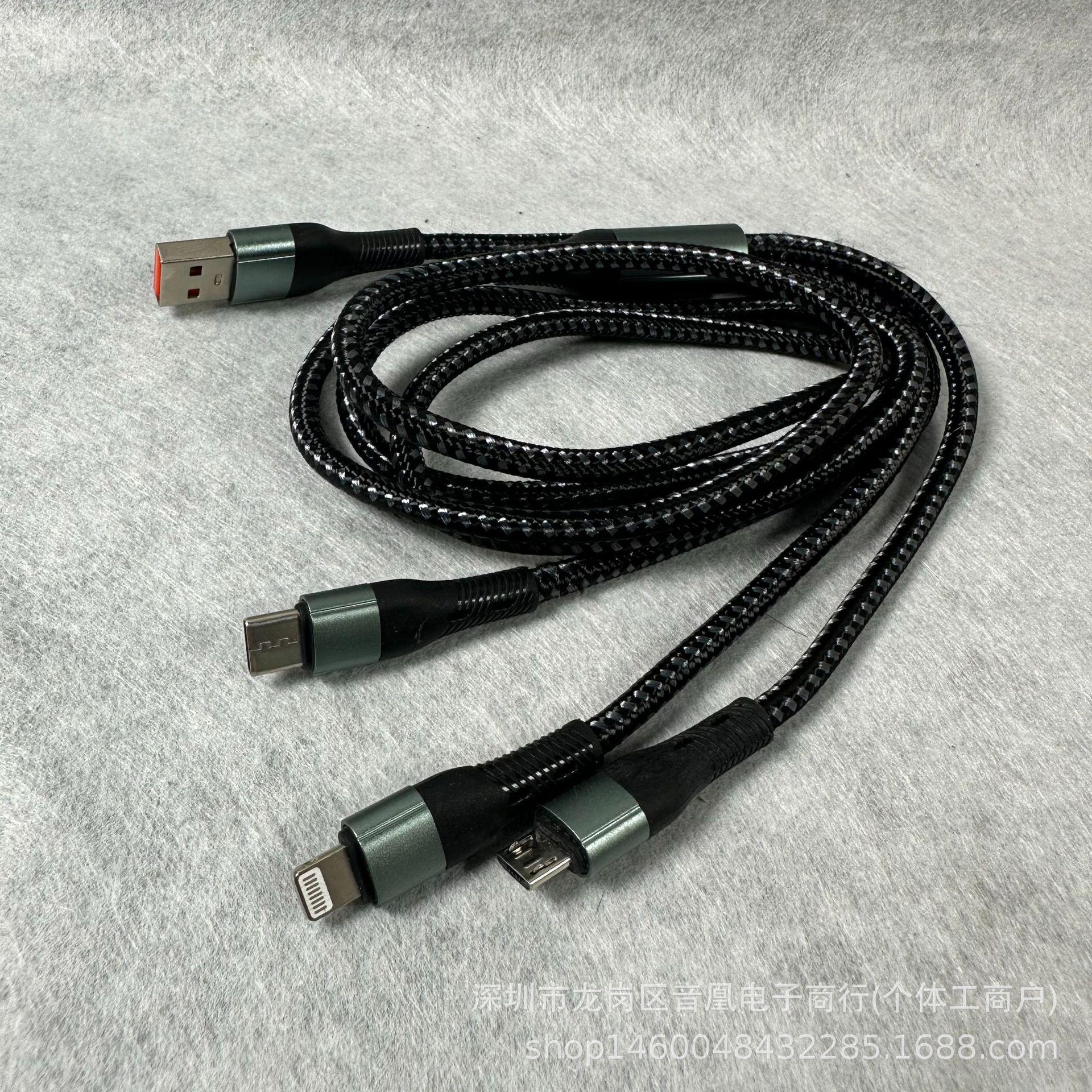 Cable de Datos de Carga Súper Rápida de 120W Tres en Uno Cable de Carga Rápida Uno a Tres USB Universal para Teléfono Móvil Multi-Cabezal