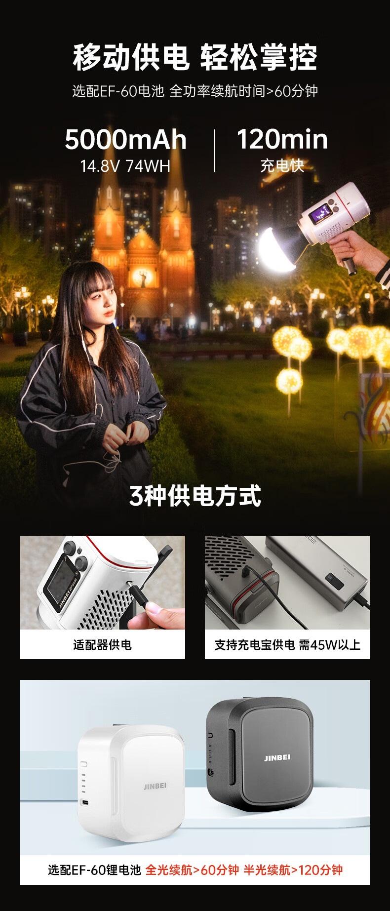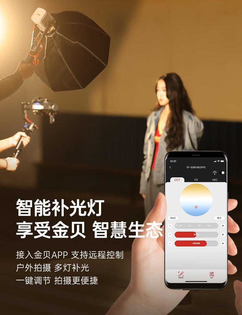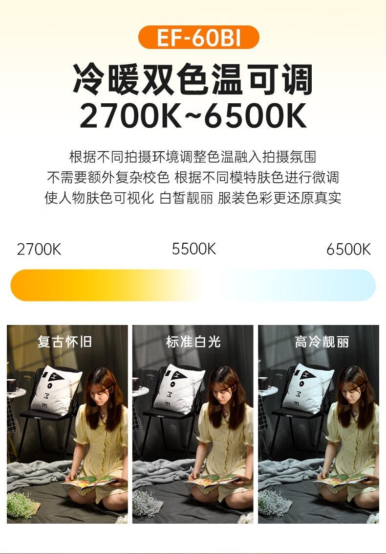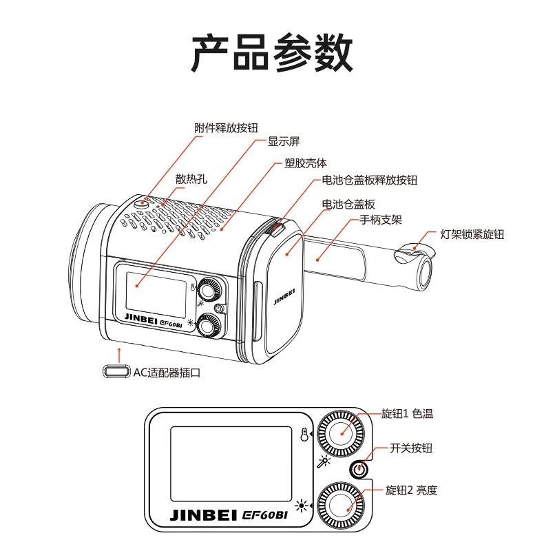 Jinbei Ef-60Bi Temperatura de Color Dual 60W Luz de Relleno para Fotografía Cámara de Video de Mano Iluminación para Grabación en Exteriores