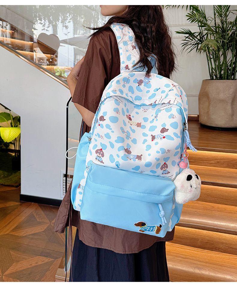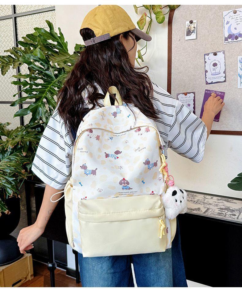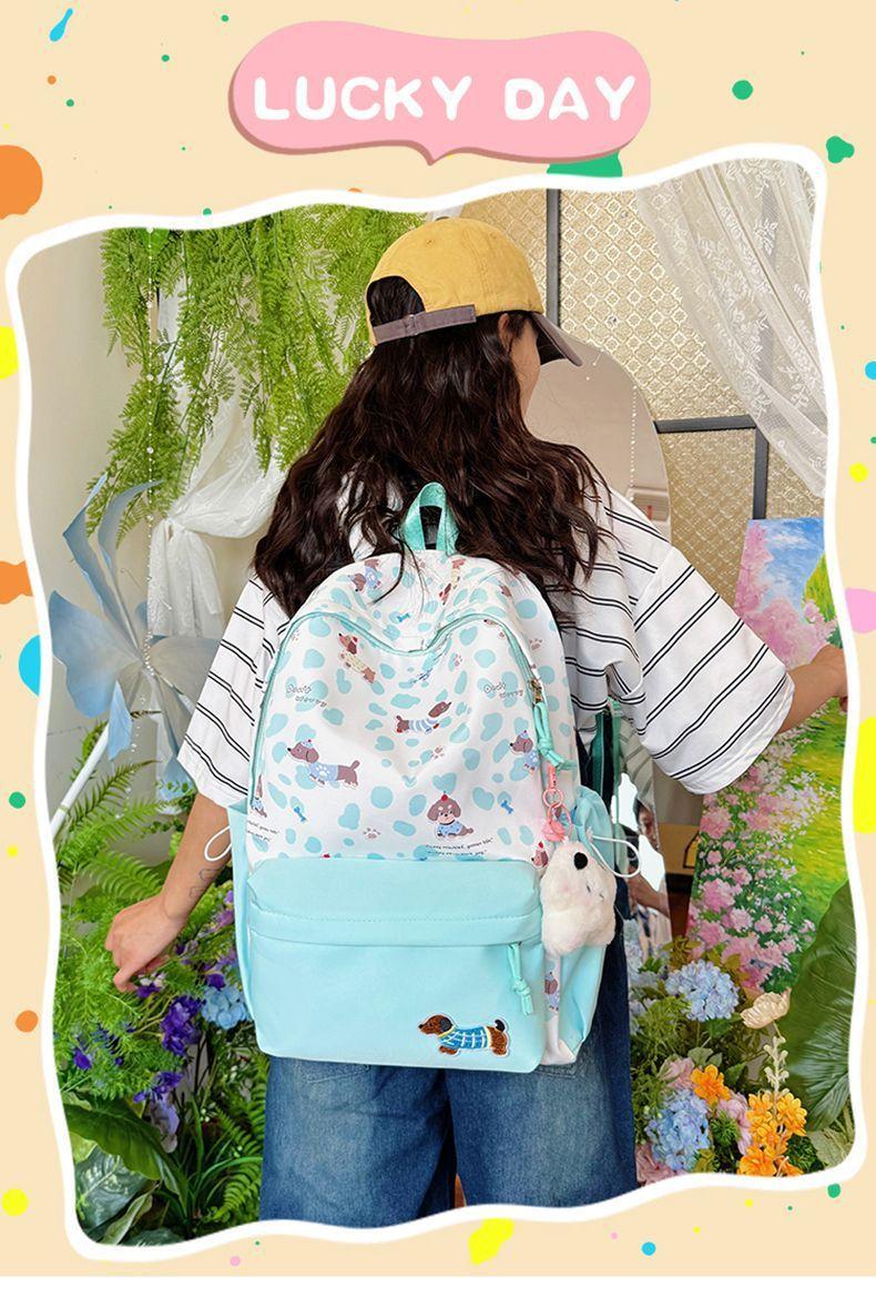 Mochila Estilo Universitario Estampado Lindo Bloque de Color Estudiante de Secundaria Mochila de Gran Capacidad Estudiante de Preparatoria Mochila para Clase